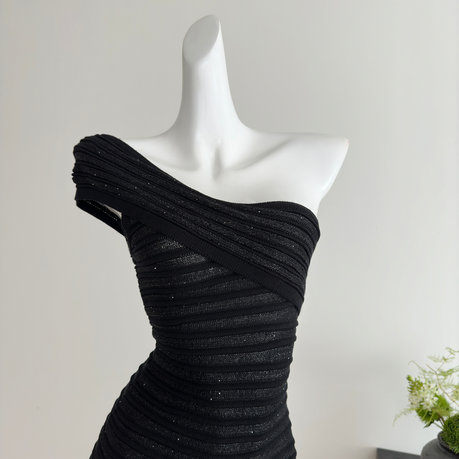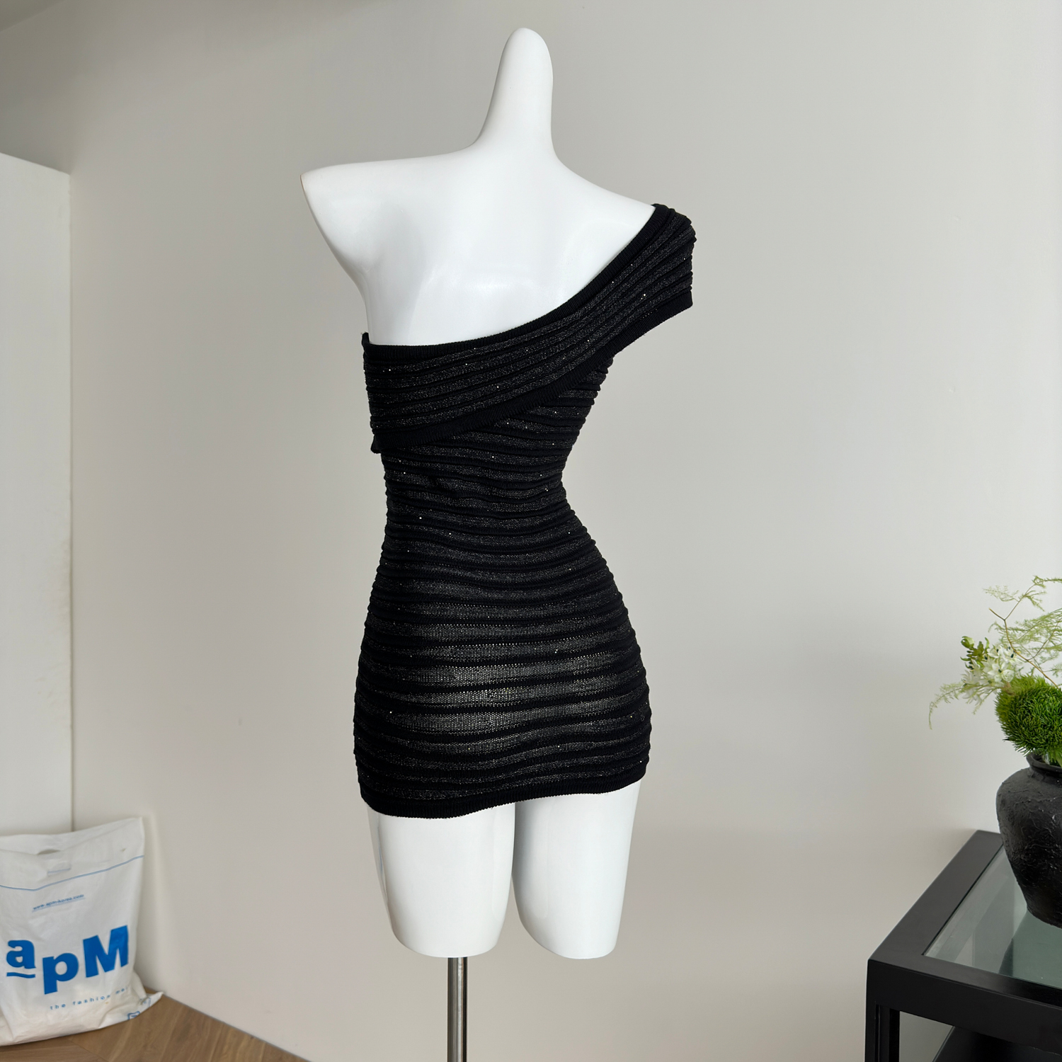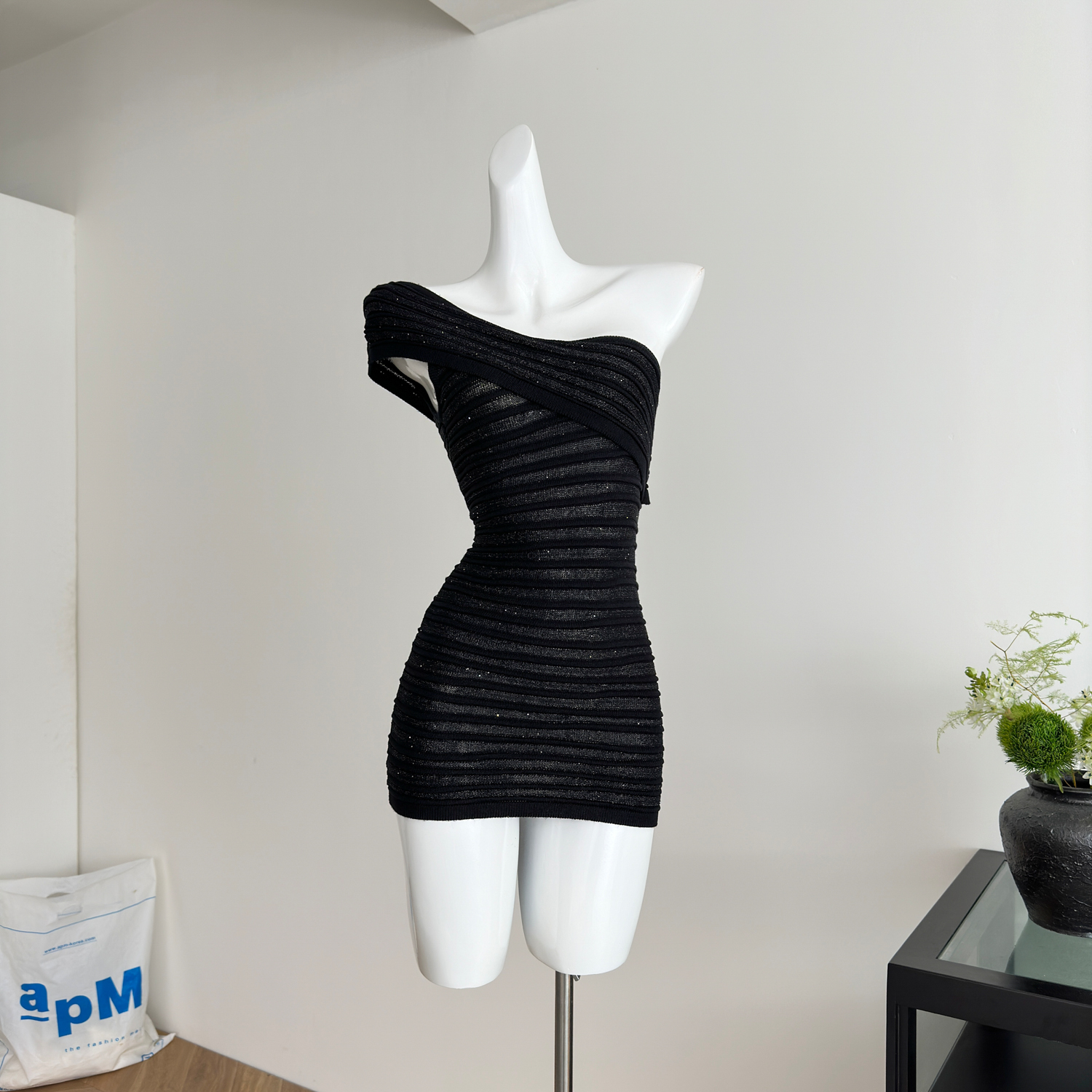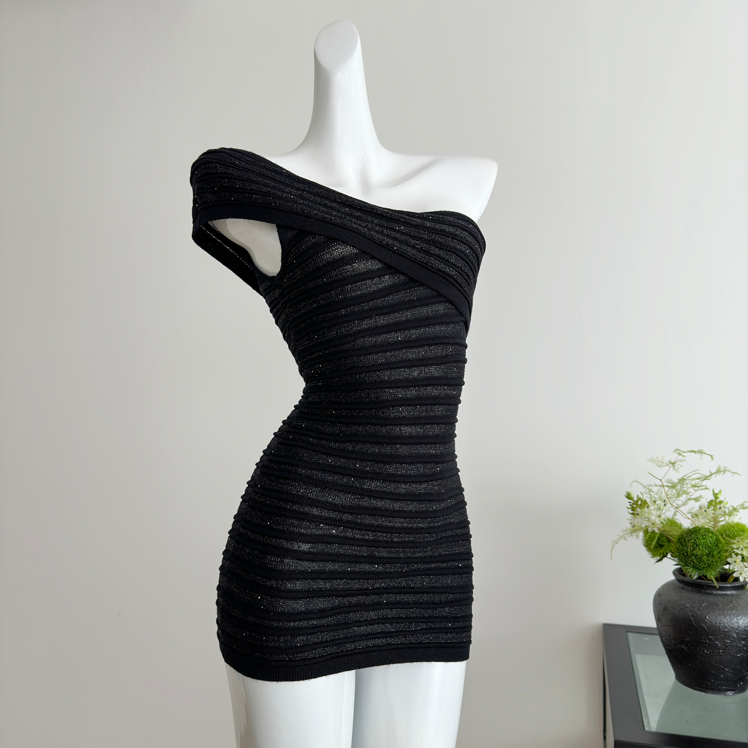 Youni LAOSHU Midnight Flight Luxurious Style Sexy Shiny Silk One-Shoulder Short Skirt Knitted Bodycon Skirt Slim Fit