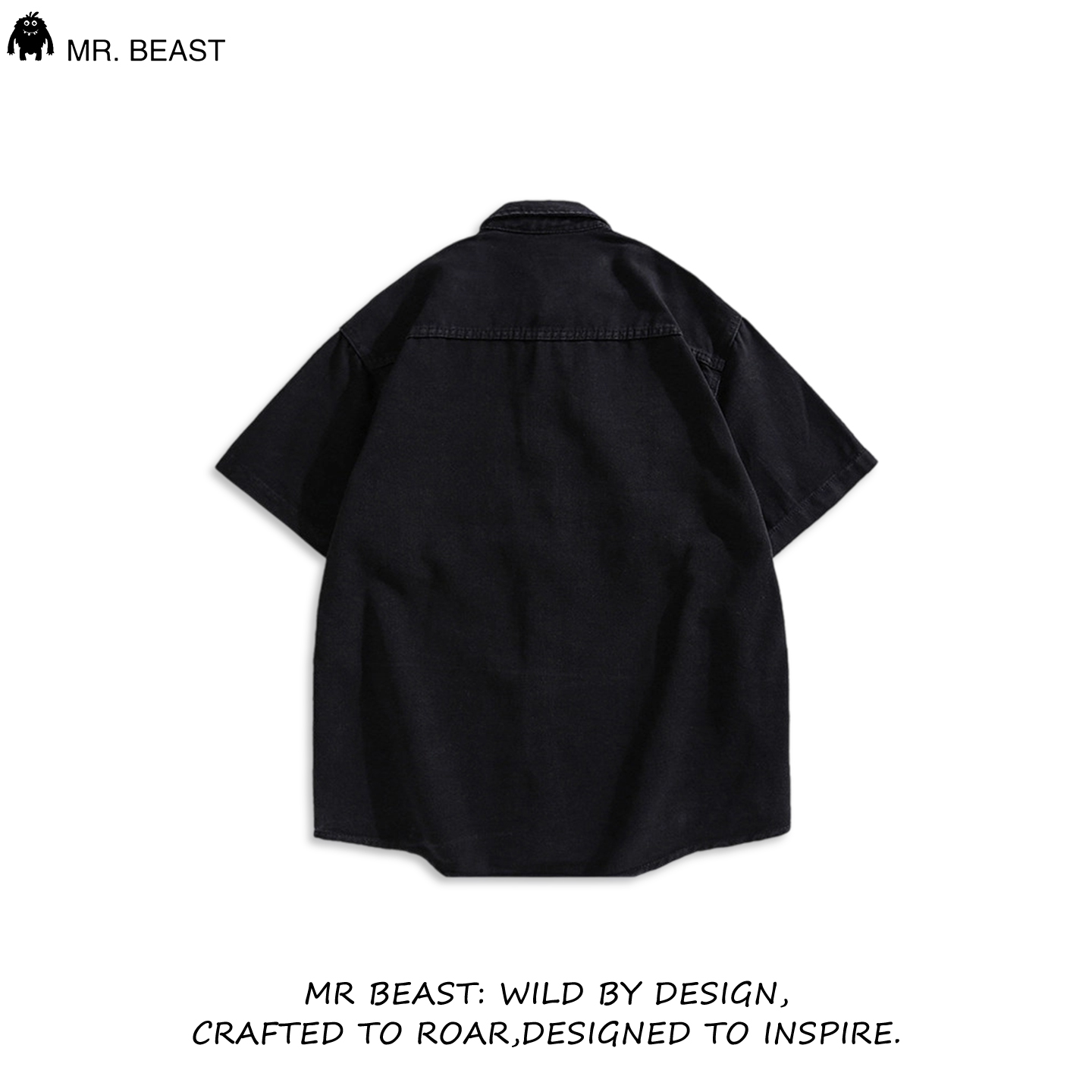 American Retro Gradient Washed Denim Short-Sleeved Shirt for Men, Summer Trendy Brand Workwear Distressed Shirt and Jeans Set