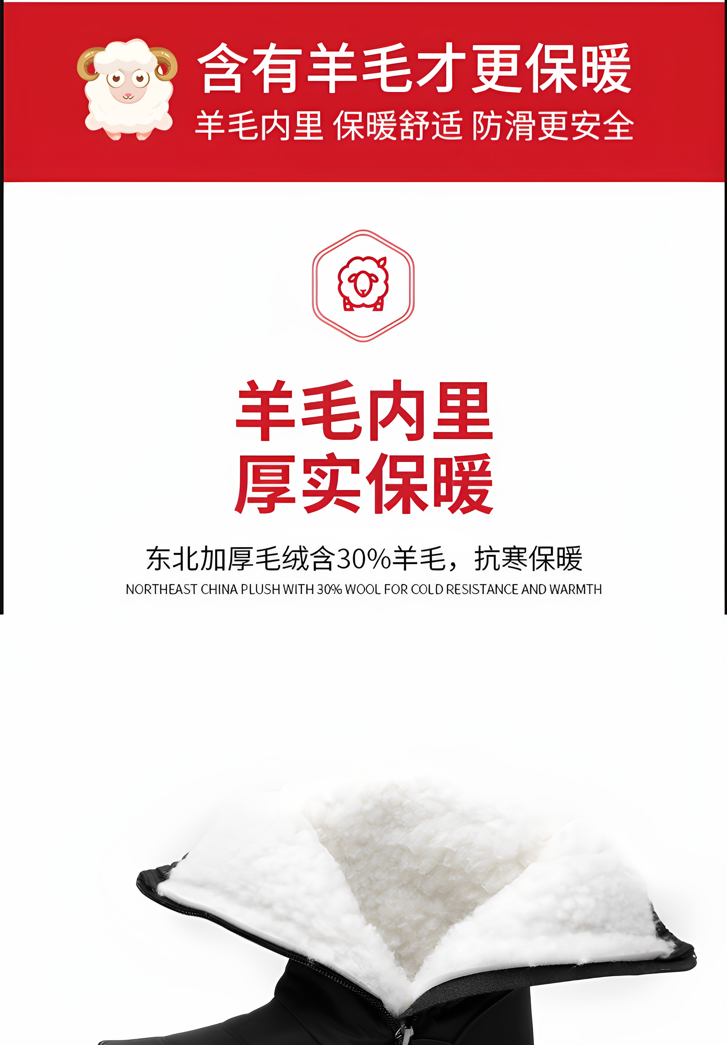 New Northeast Snow Boots for Couples, Large Cotton Shoes for Men and Women, Ultra-Light and Warm, Winter Fleece-Lined and Thickened Outdoor High-Top Cotton Boots