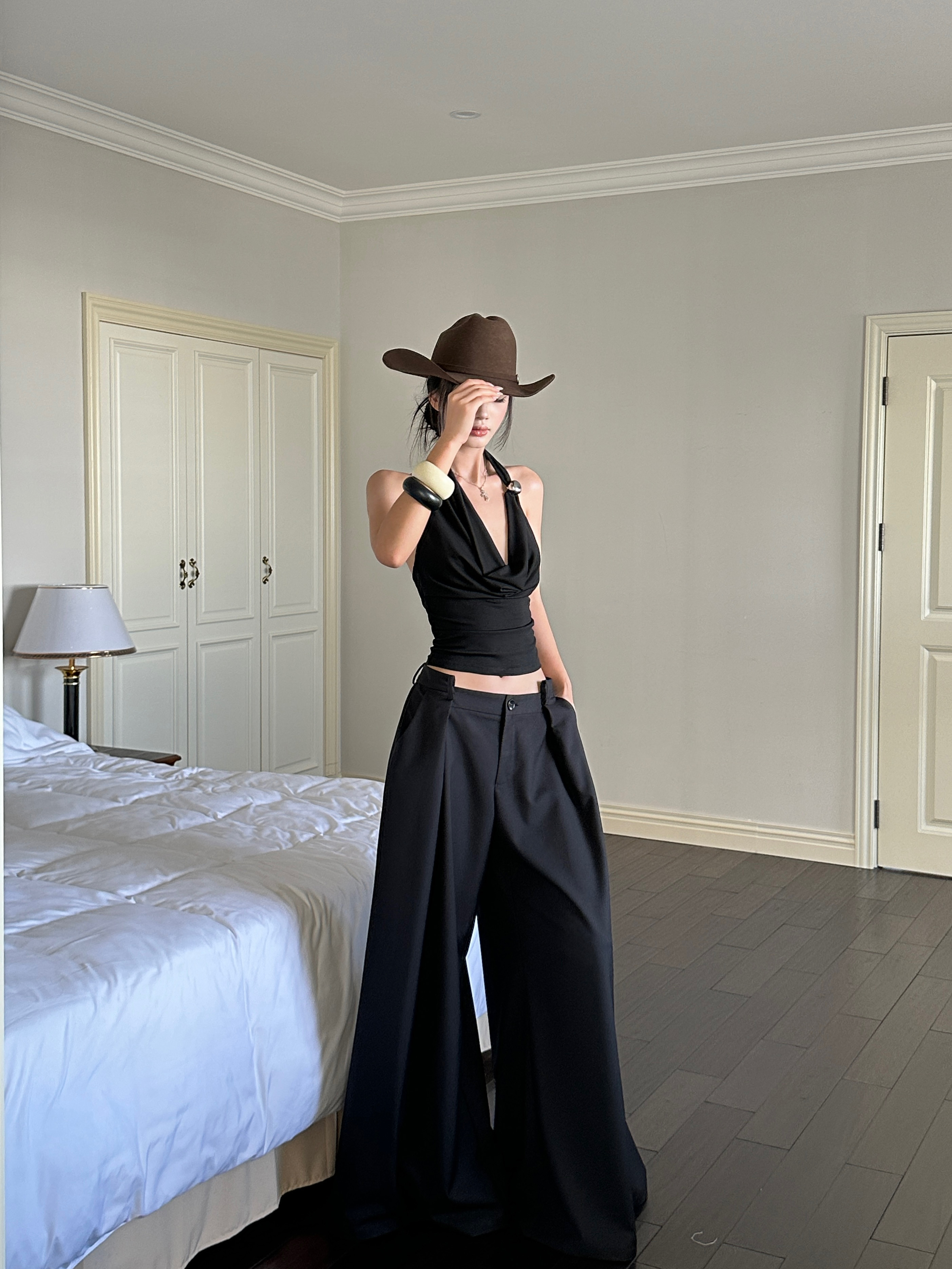 Venuie Casual Wide-Leg Trousers with Unique Design, Loose Fit, Slimming, Floor-Length Pants for Women