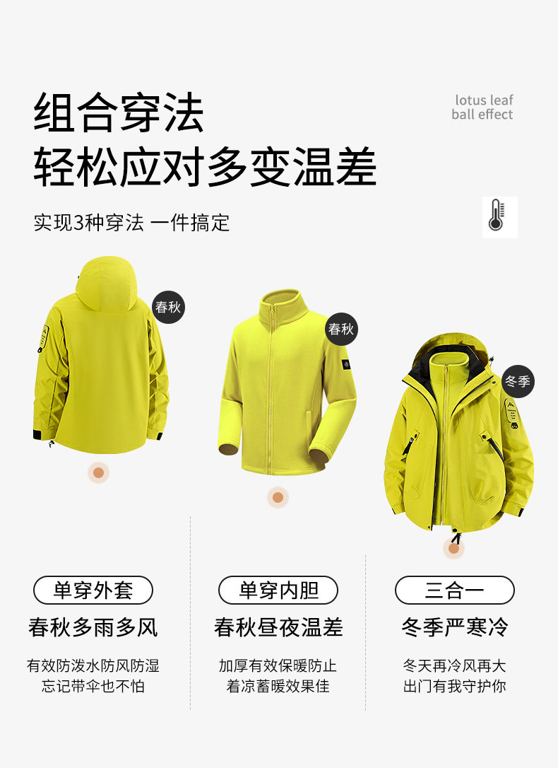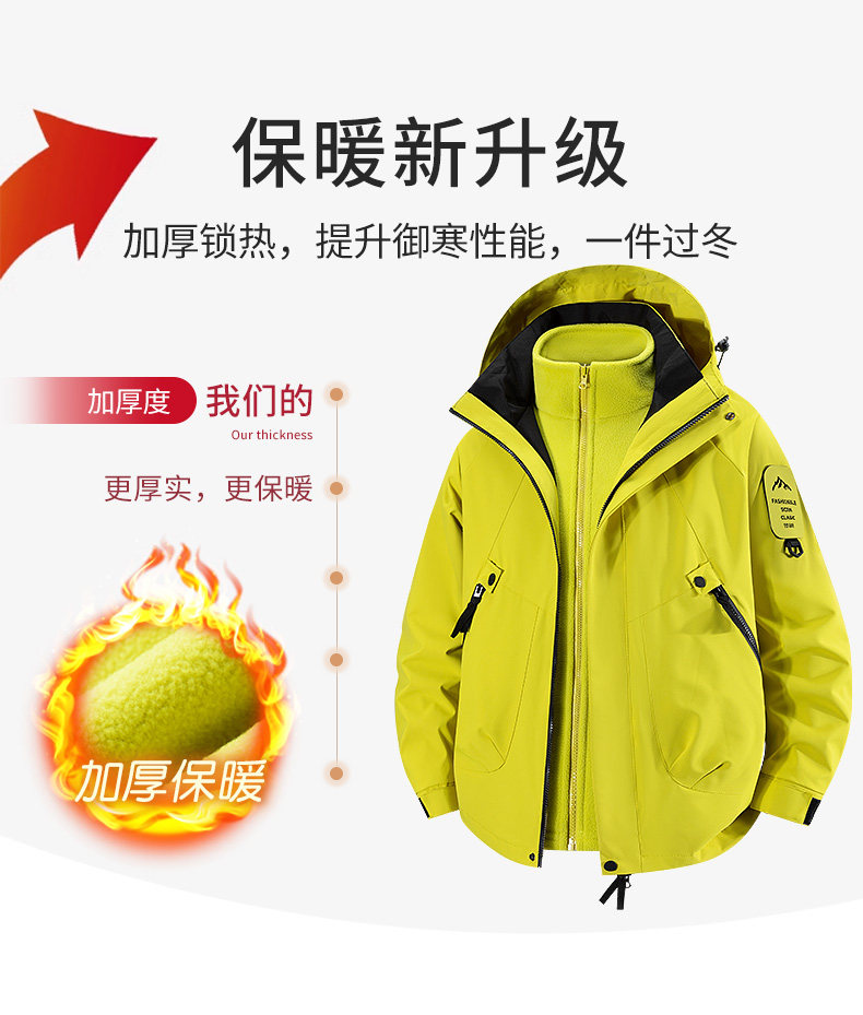Outdoor Softshell Jacket for Men and Women, Autumn and Winter Windproof and Waterproof Jacket, Three-In-One Graphene Heating Liner, Detachable