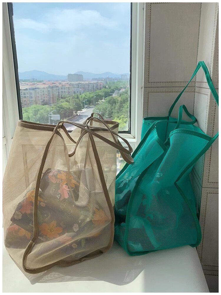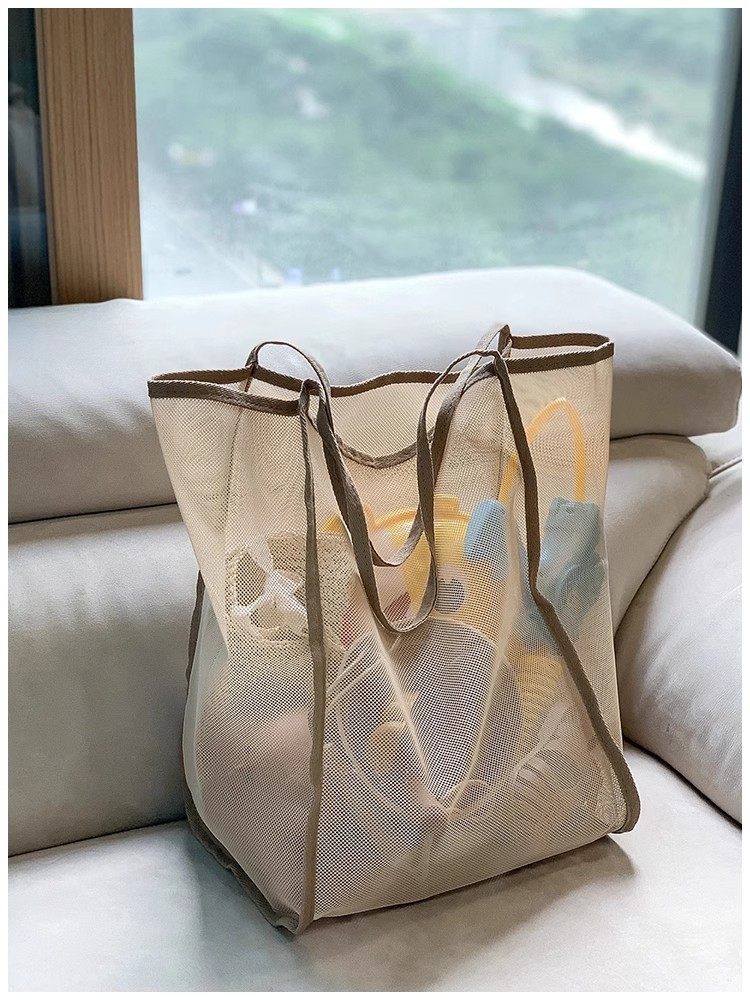 2025 New Style ins Wind Transparent Mesh Shoulder Bag, Fashionable, Lightweight, Large Capacity, Versatile Shopping Bag, Beach Bag