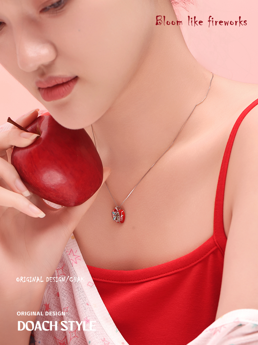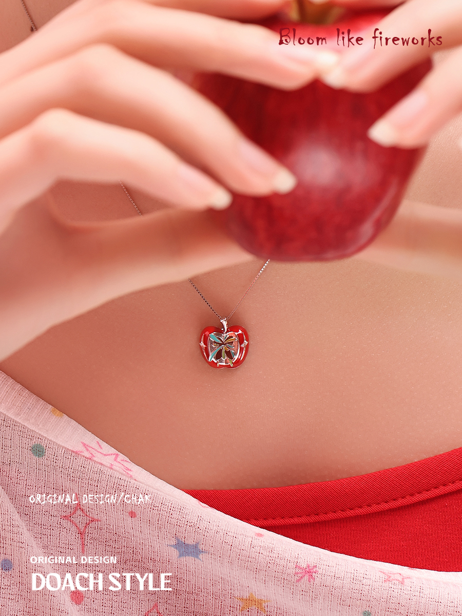 Fireworks Butterfly Apple Pendant Necklace for Women S925 Sterling Silver Original Design High-End Sweet Cool Dopamine Fireworks Choker