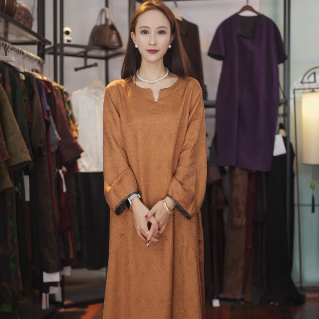 Tourmaline Brocade Dress: New Chinese Style Versatile Elegant Fashion Dress for Summer 62-621 Tourmaline Brocade Dress