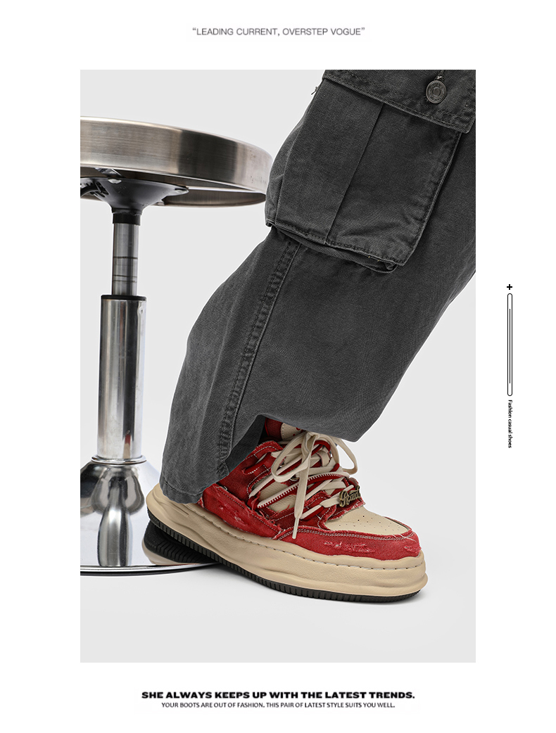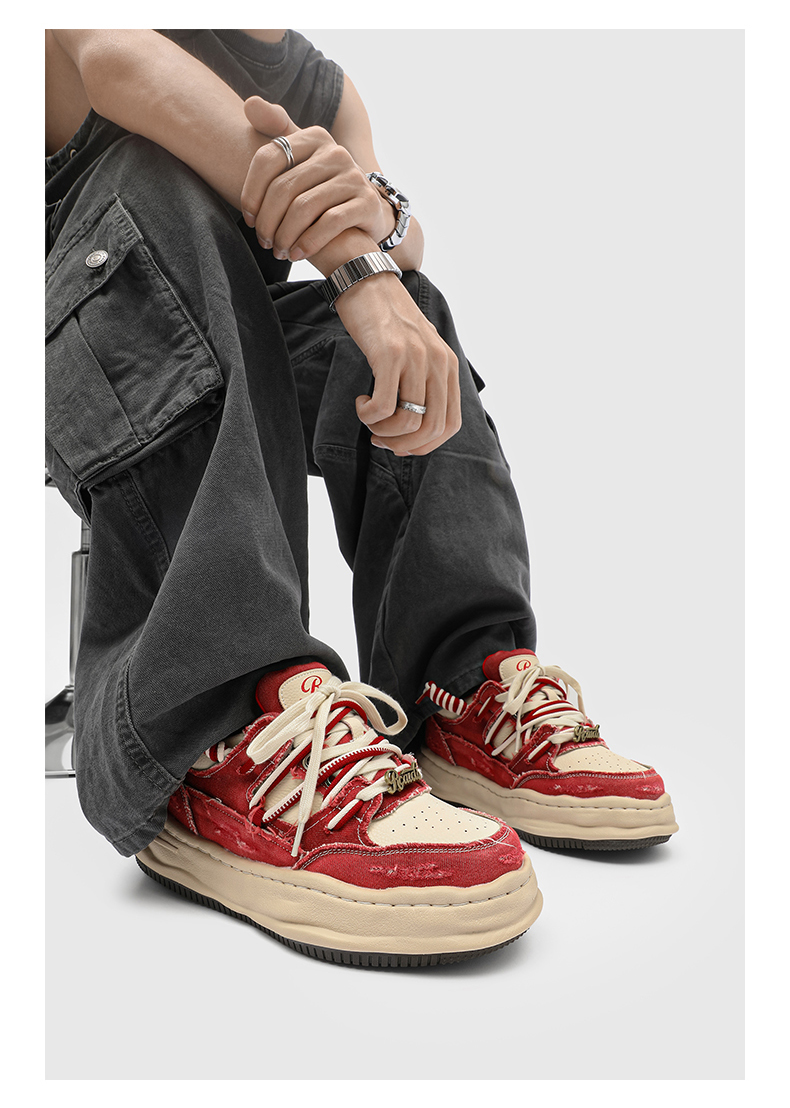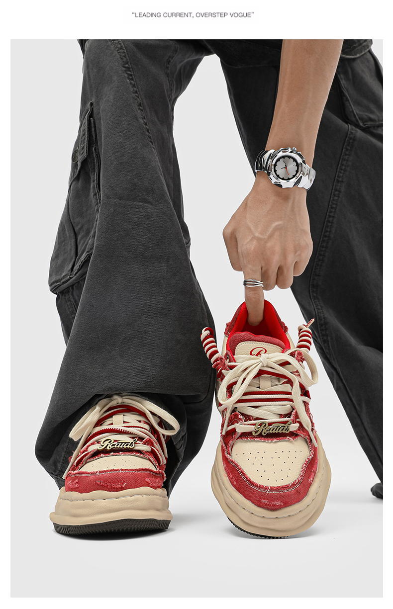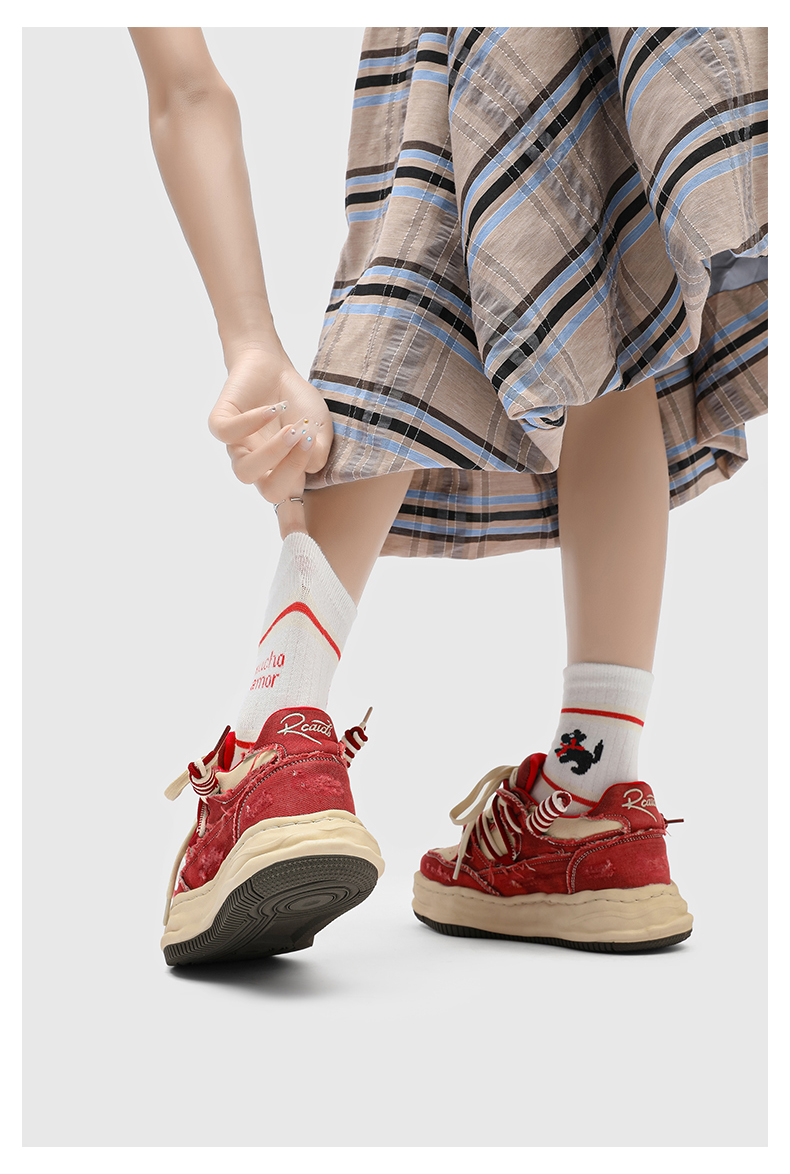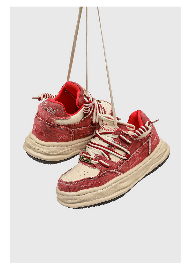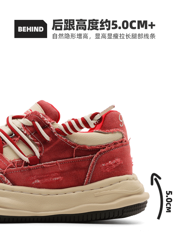 Okko Invisible Height-Increasing 7cm Retro Dissolving Shoes Men's Autumn Trendy Brand Sneakers Red Washed Canvas Shoes Women