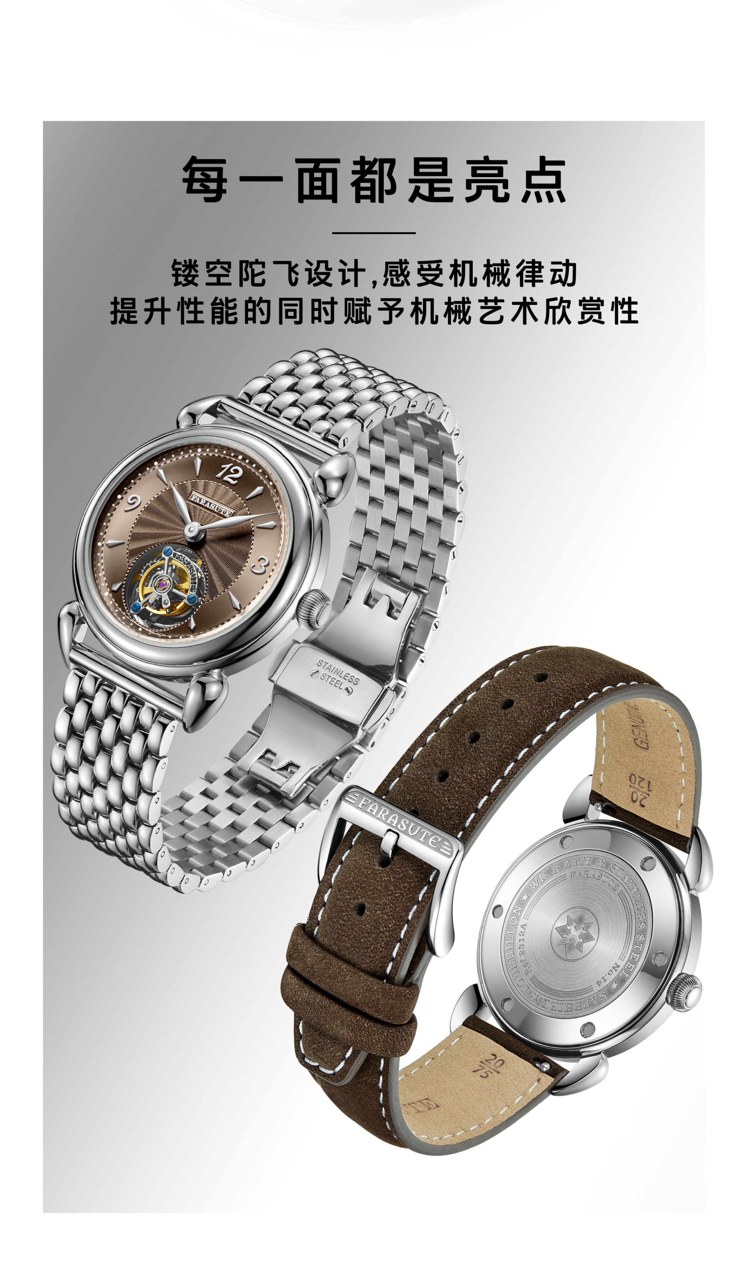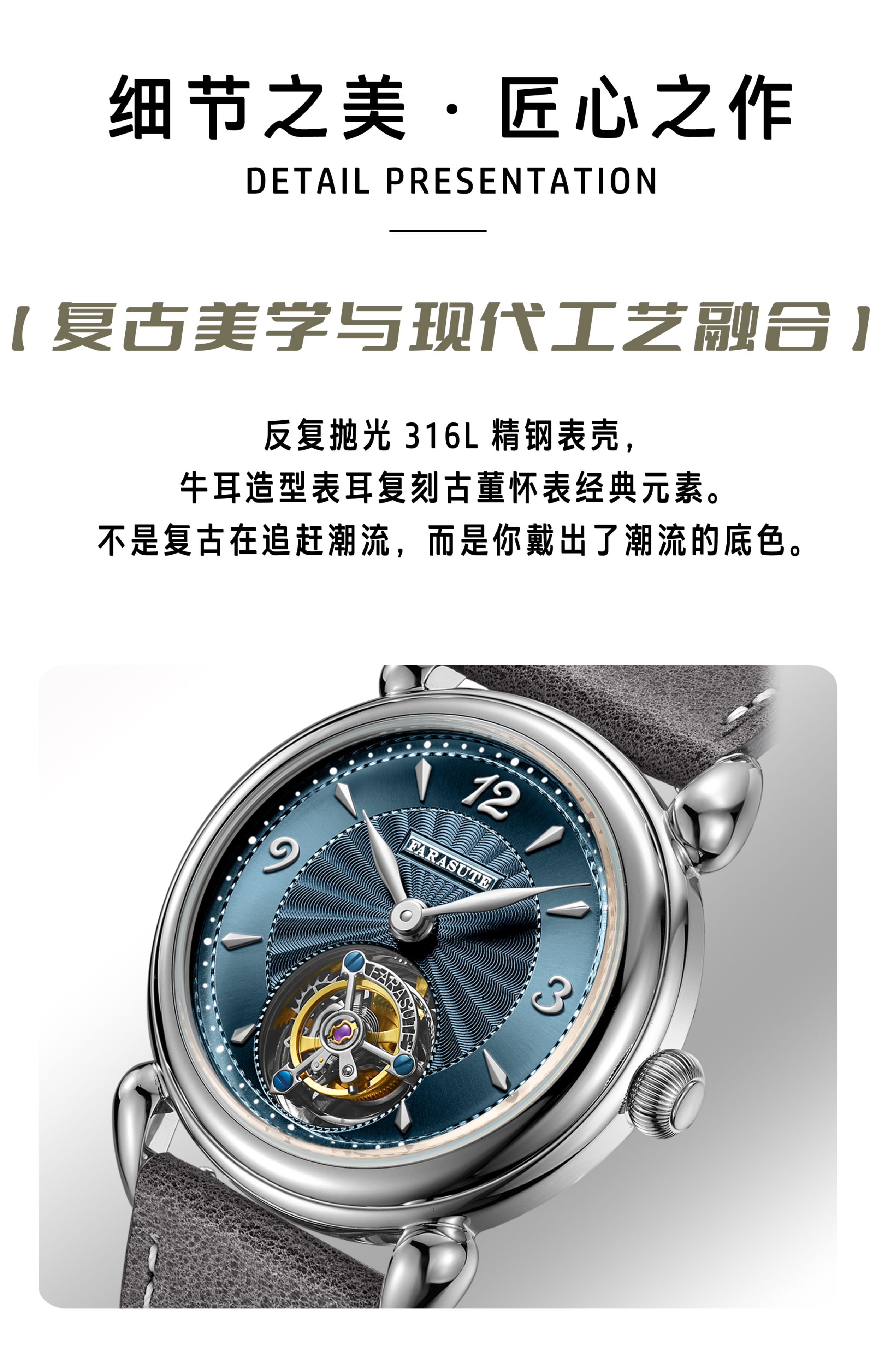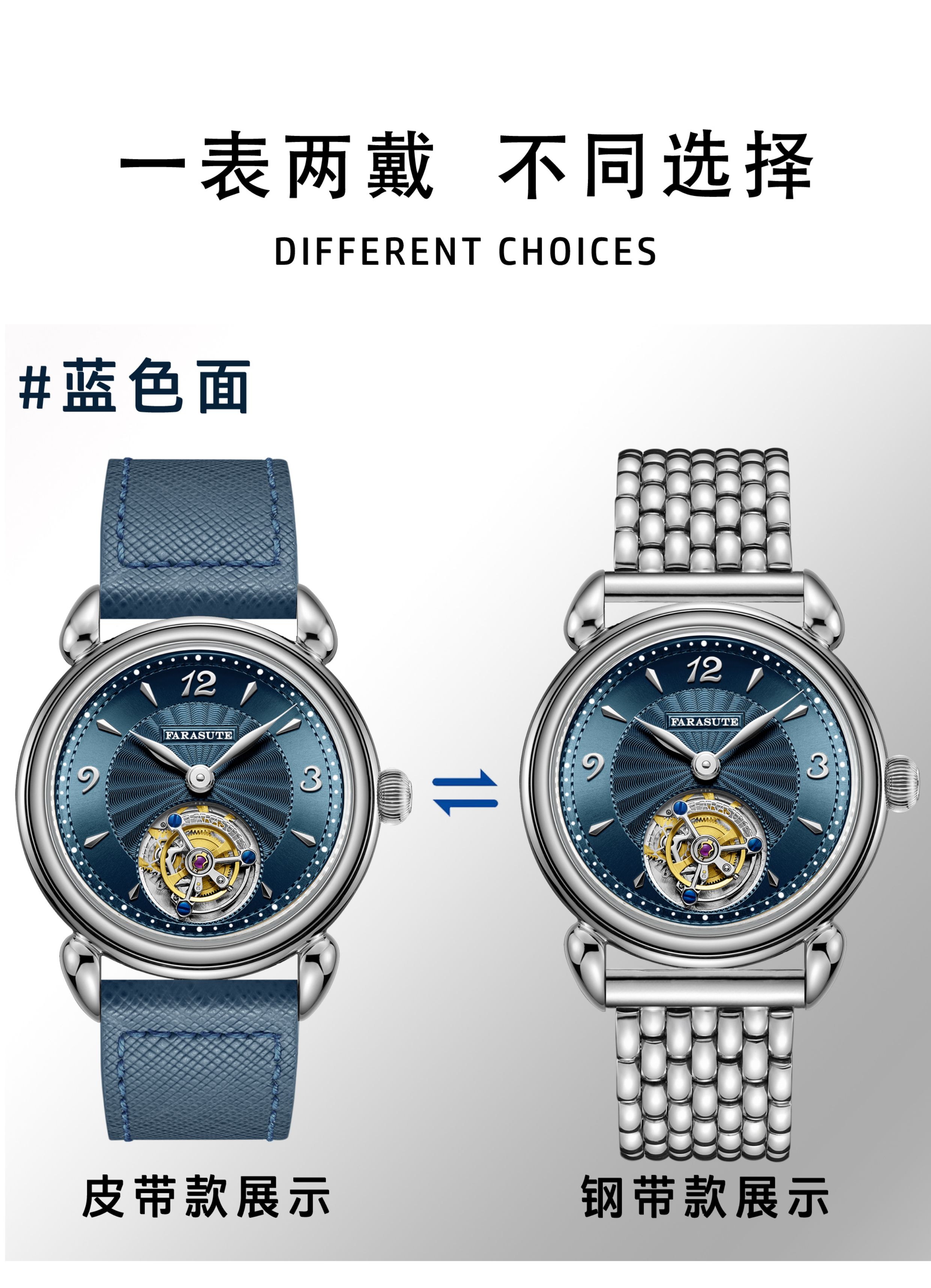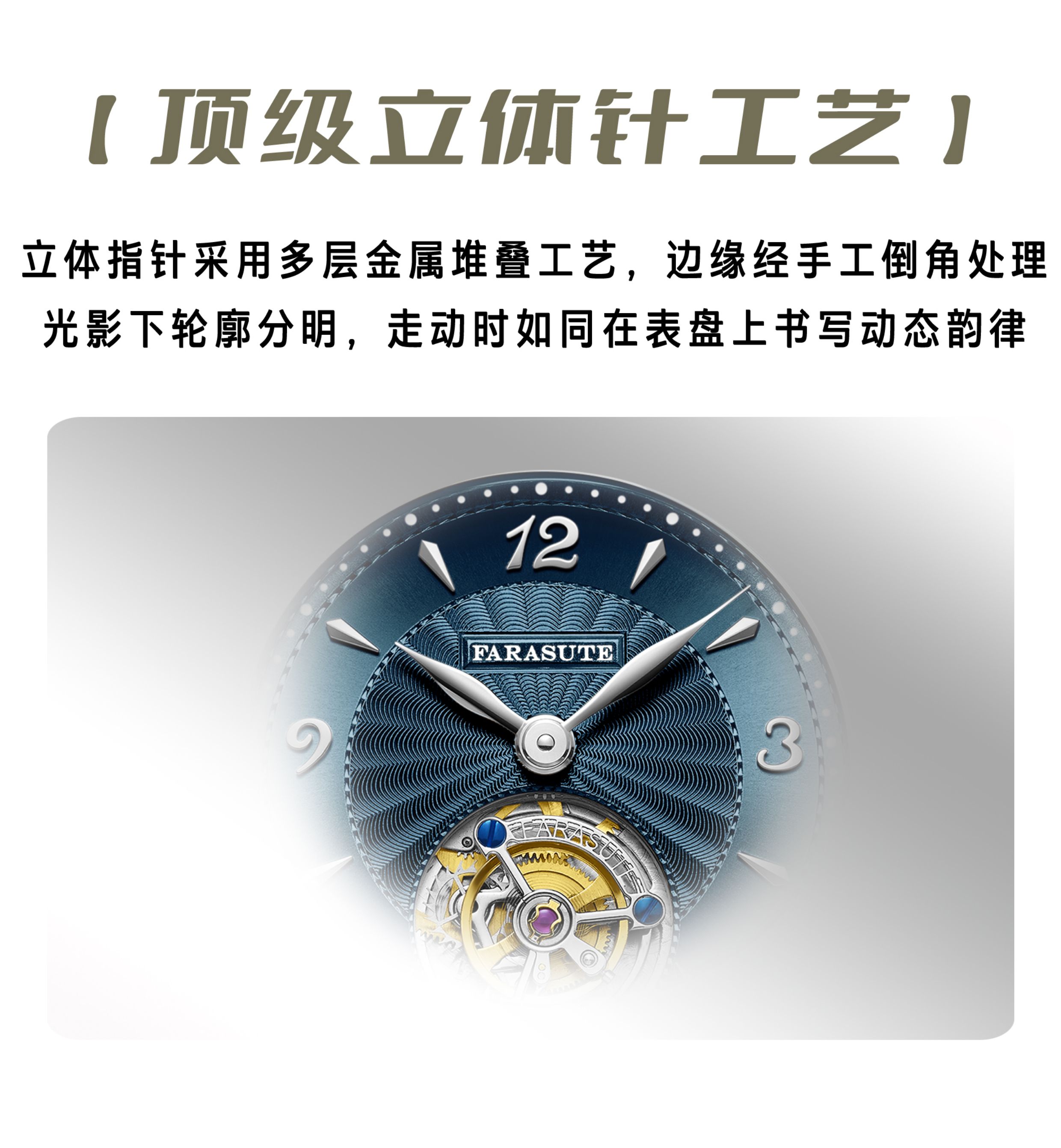 Farasuti's New Tourbillon Compact and Exquisite Watch, Stainless Steel Three-Dimensional Pointer Tourbillon Automatic Mechanical Watch