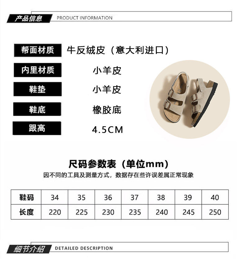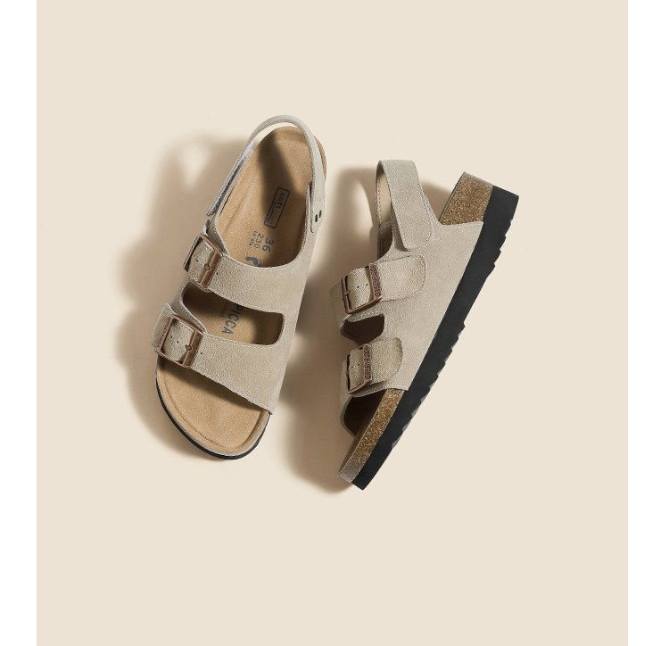 Hong Kong Thick-Soled Open-Toe Birkenstock Sandals for Women, Spring and Summer Genuine Leather, Fashionable, Casual, Comfortable, Versatile Roman Sandals