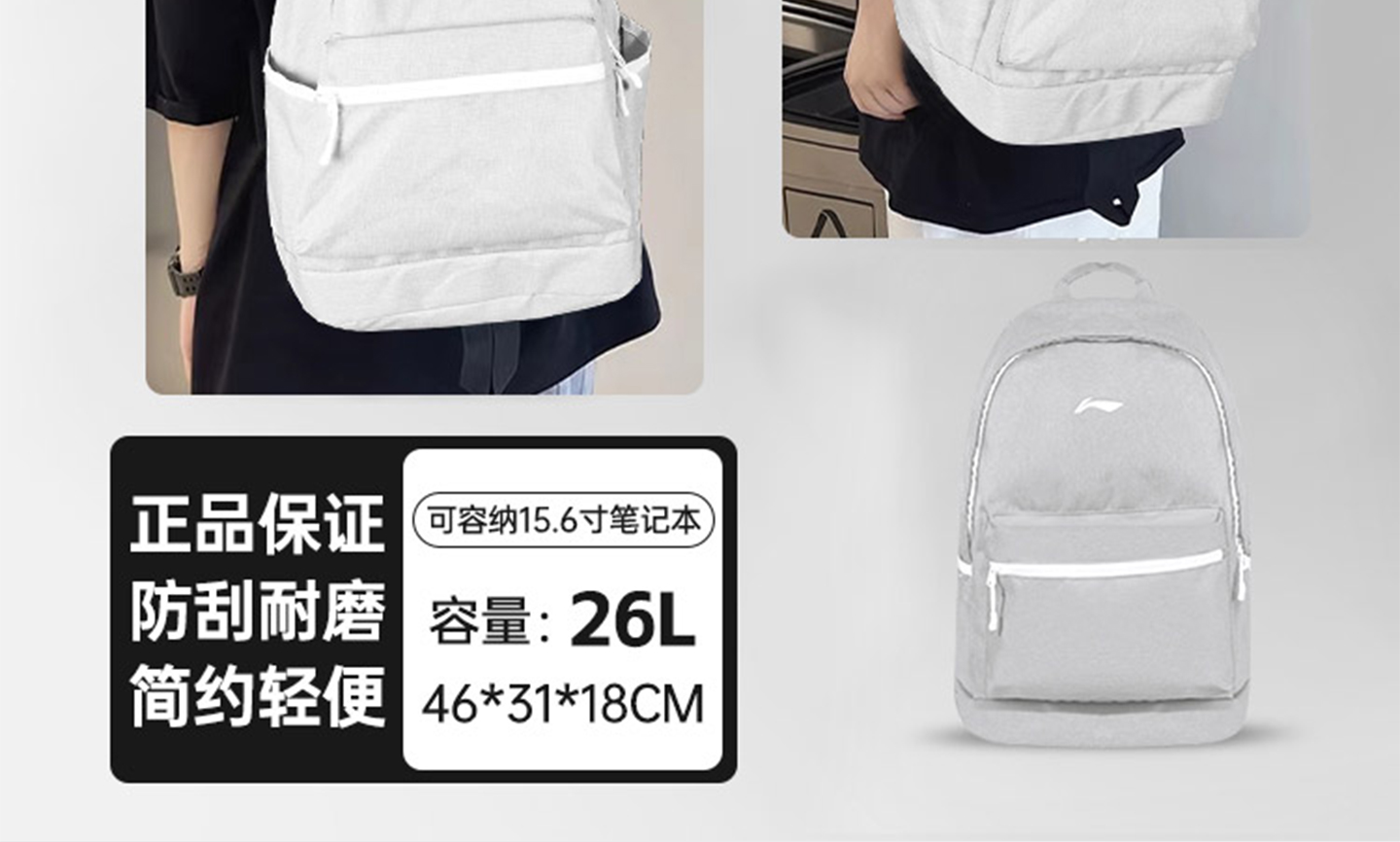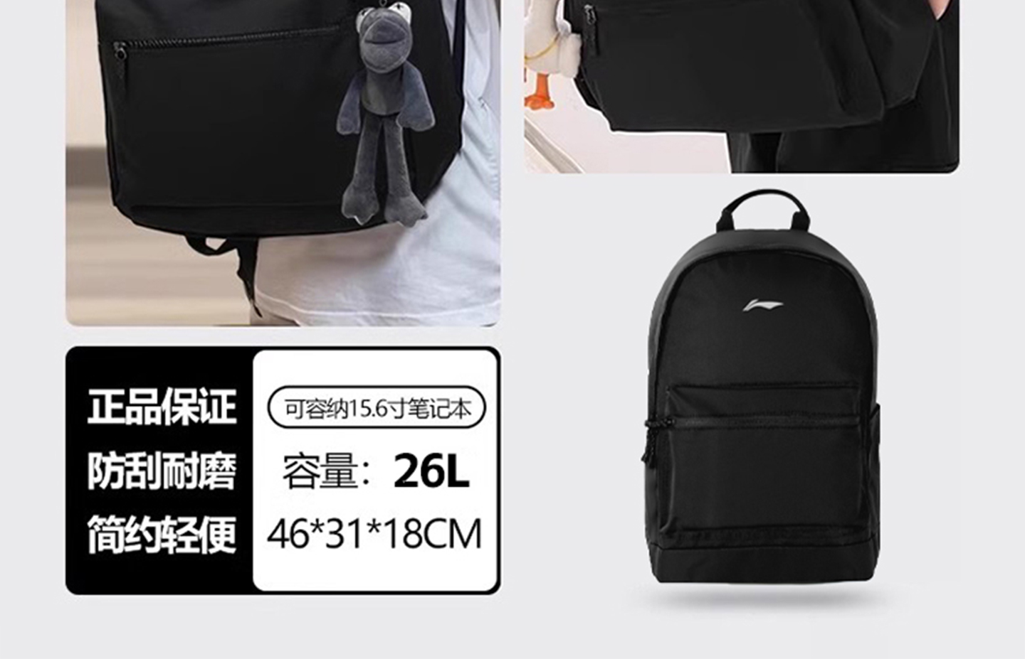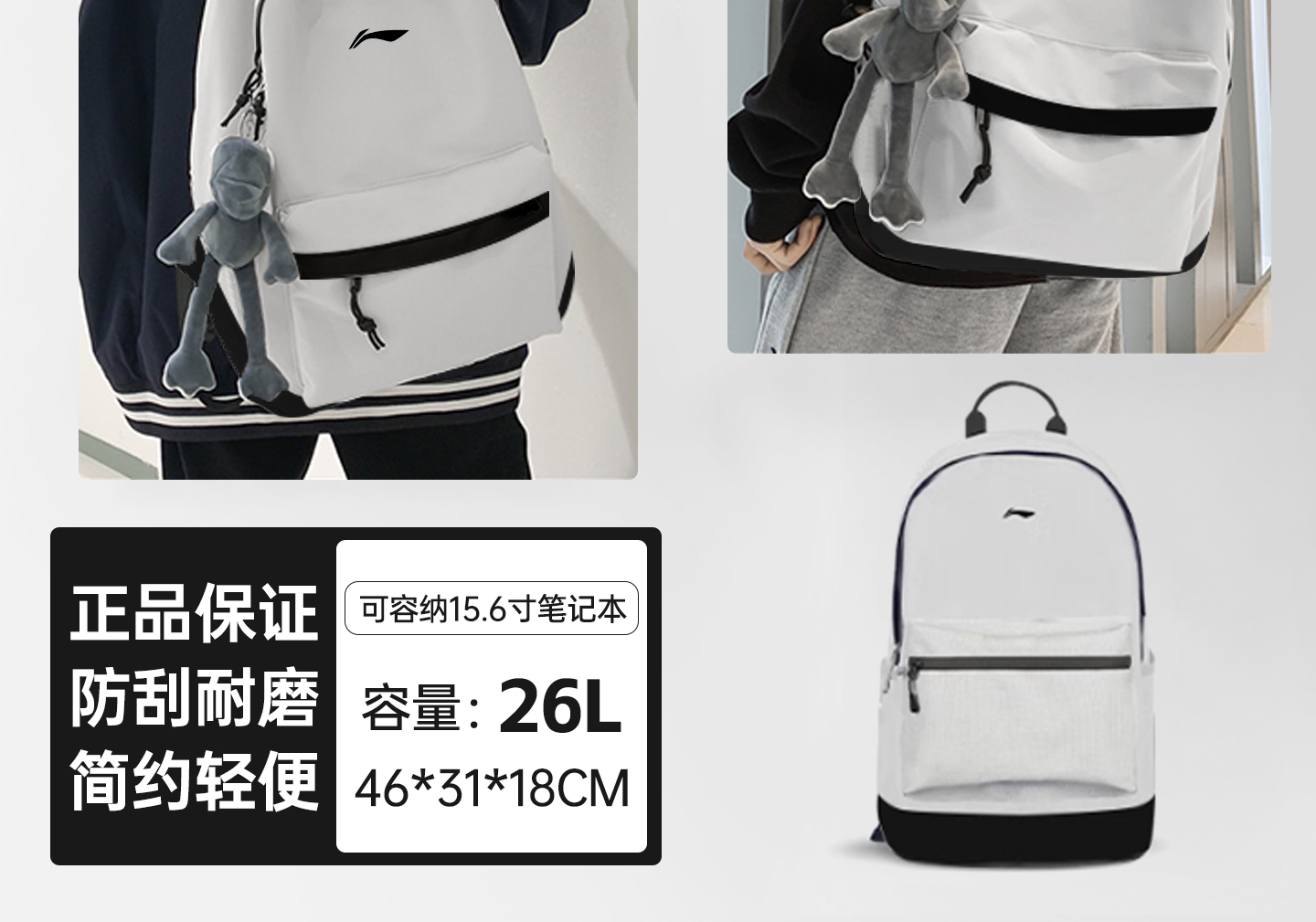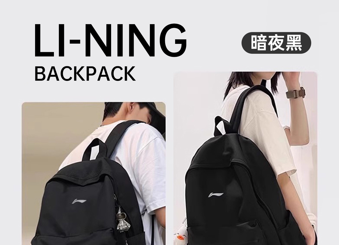 Li Ning Backpack Men's Lightweight Large Capacity Junior High School Student Schoolbag New arrival College Student Female Travel Bag Computer Backpack