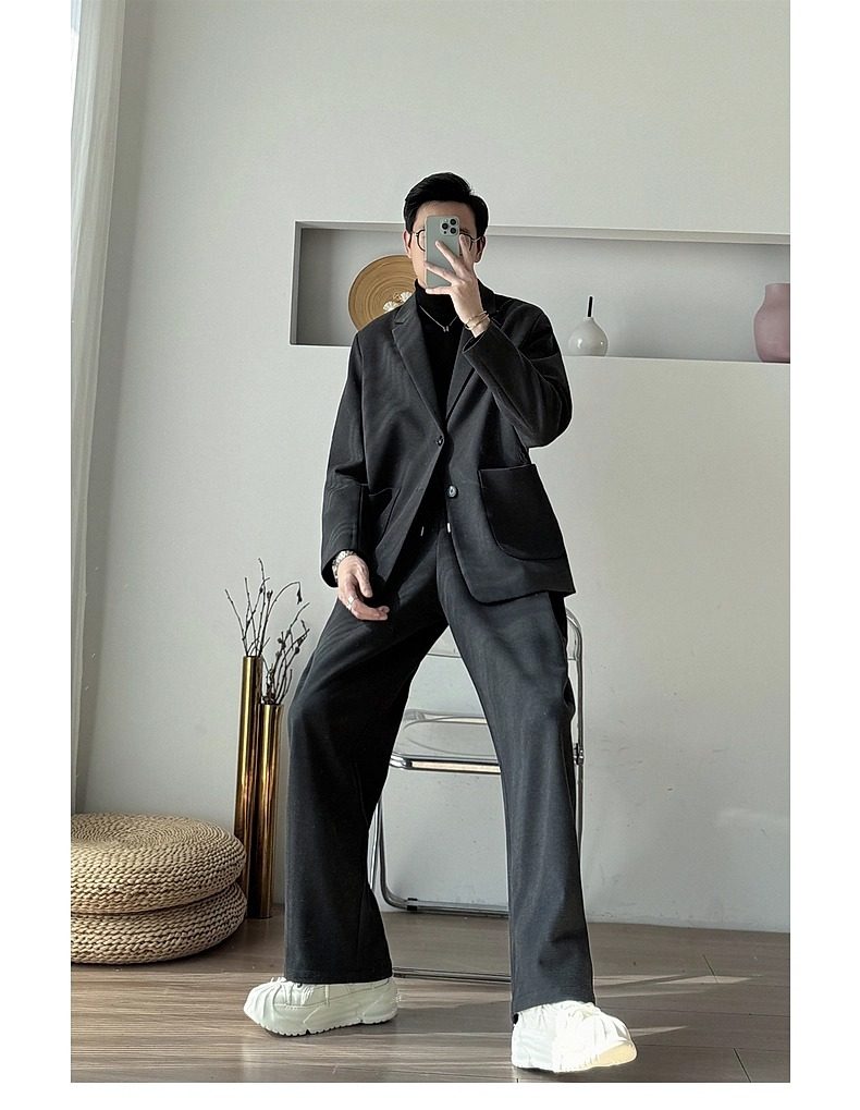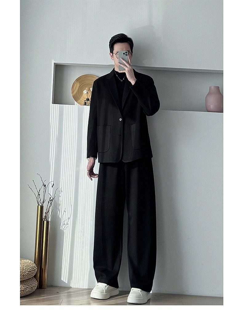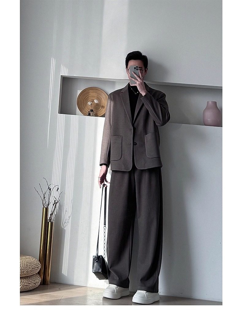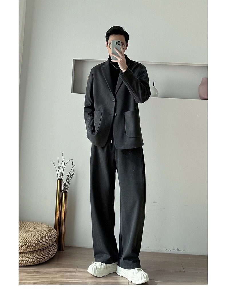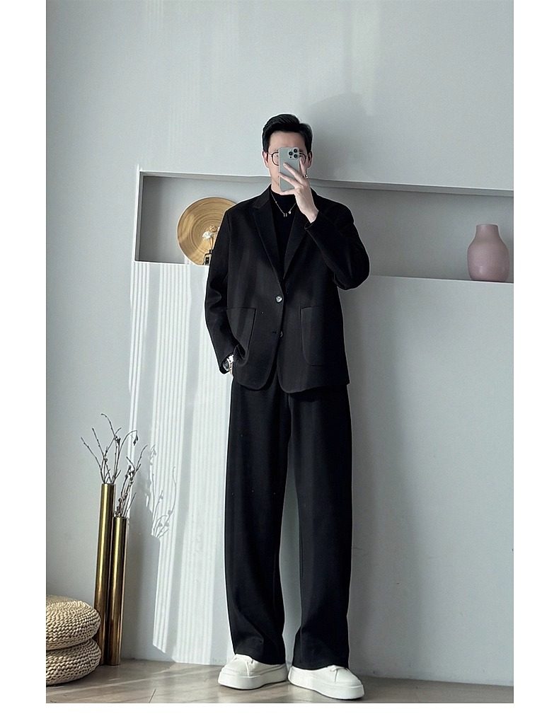 Korean Uamtor Men's Suit Autumn and Winter Old Money Style Woolen Suit Men's Loose Korean Version Scimitar Straight-Leg Pants Suit