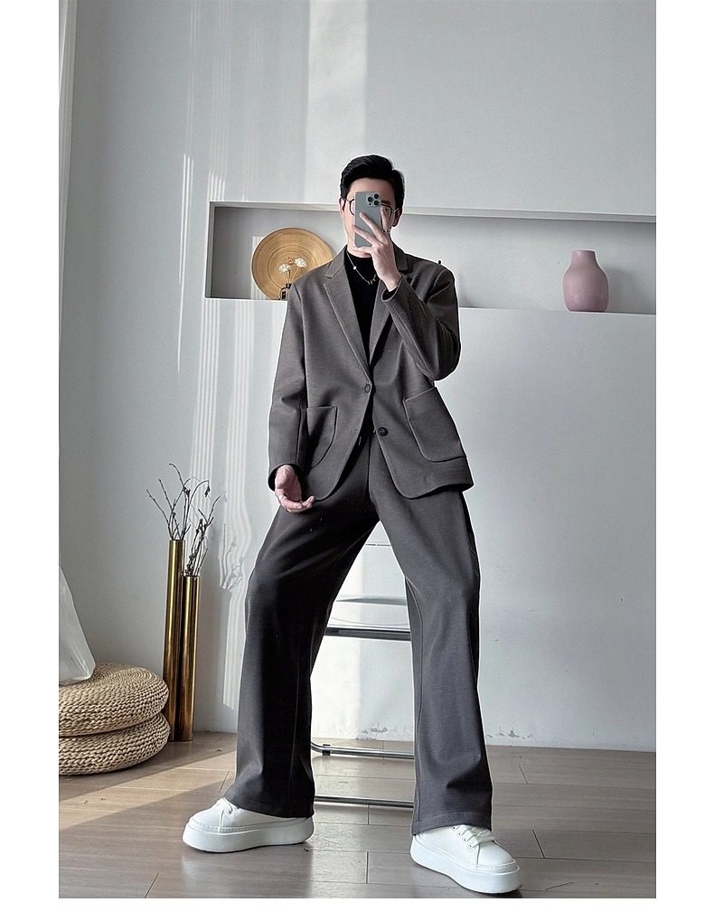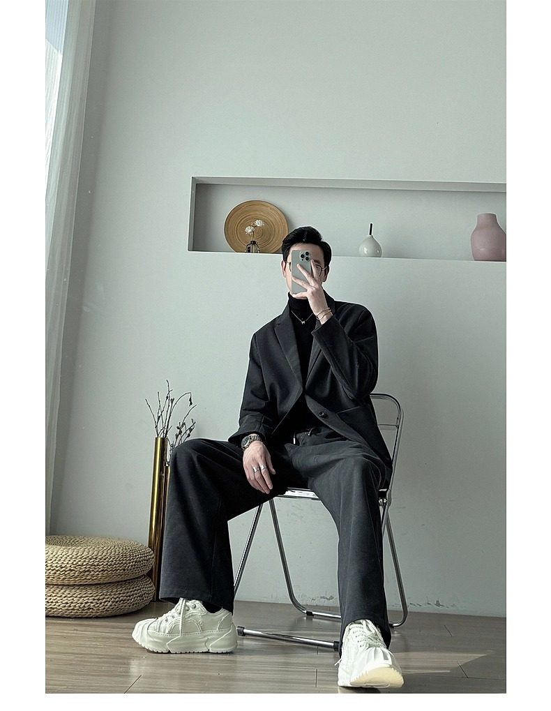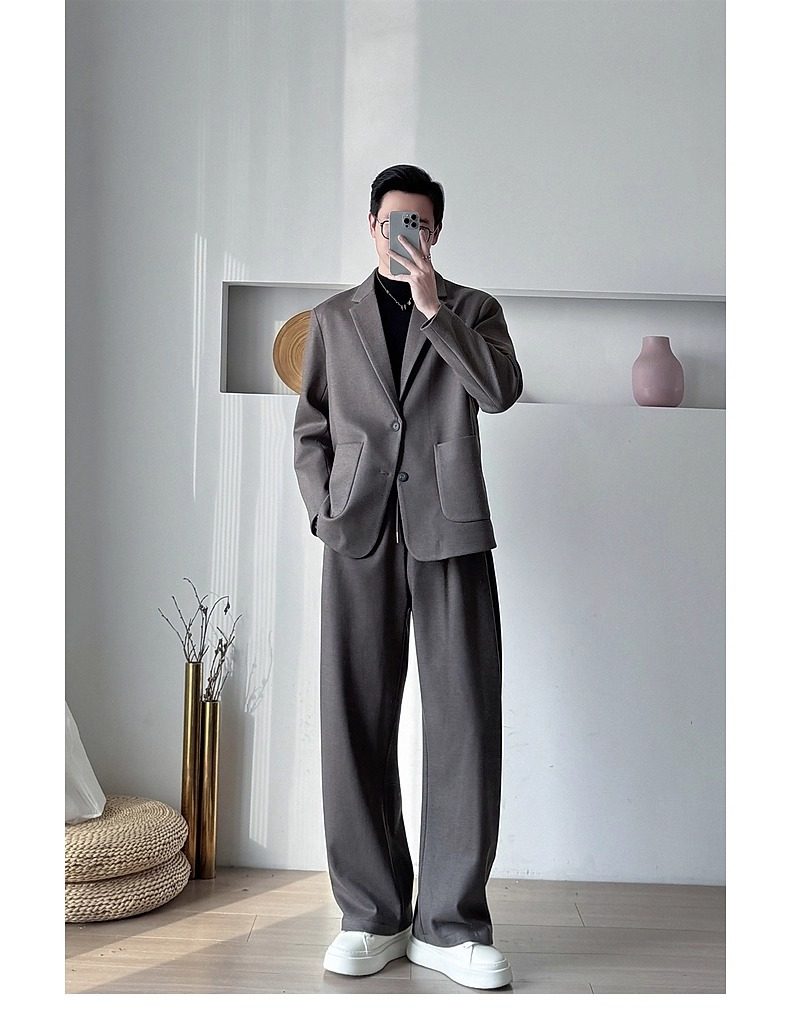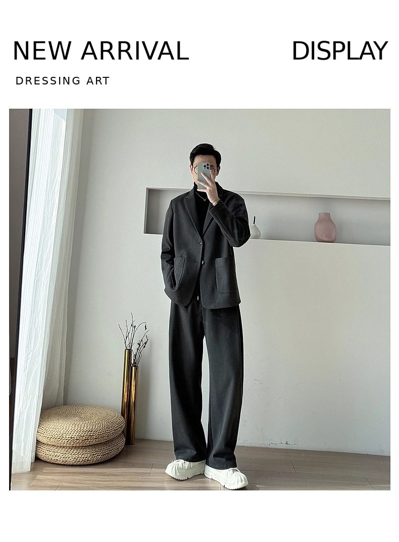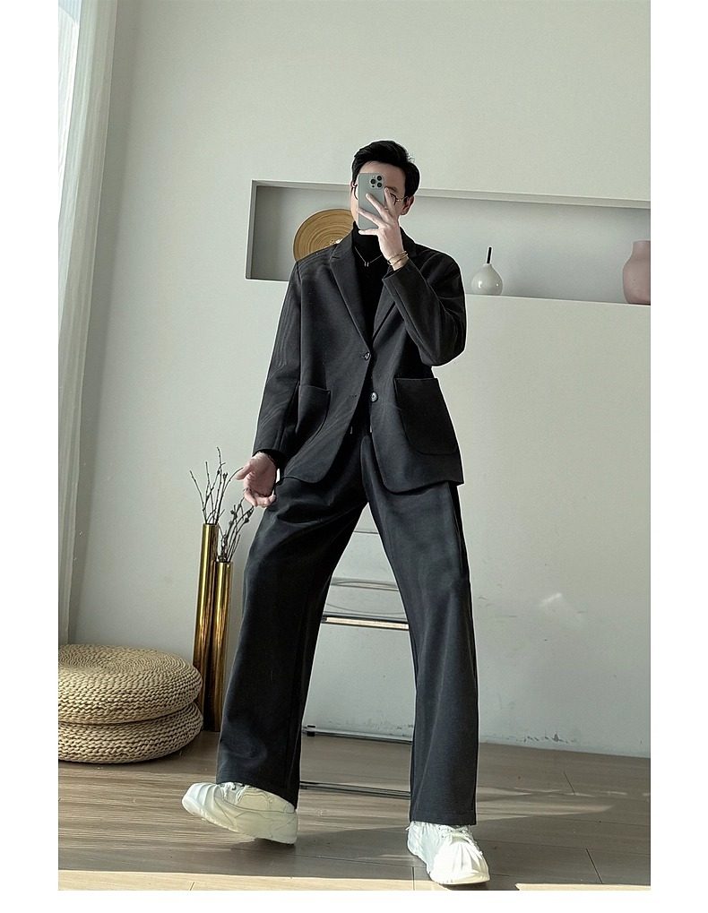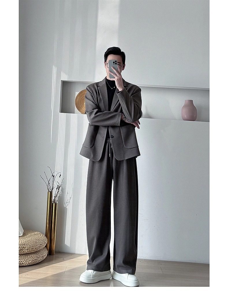 Korean Uamtor Men's Suit Autumn and Winter Old Money Style Woolen Suit Men's Loose Korean Version Scimitar Straight-Leg Pants Suit