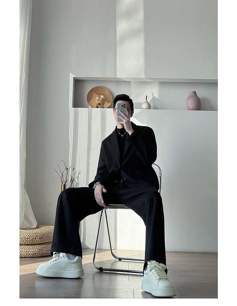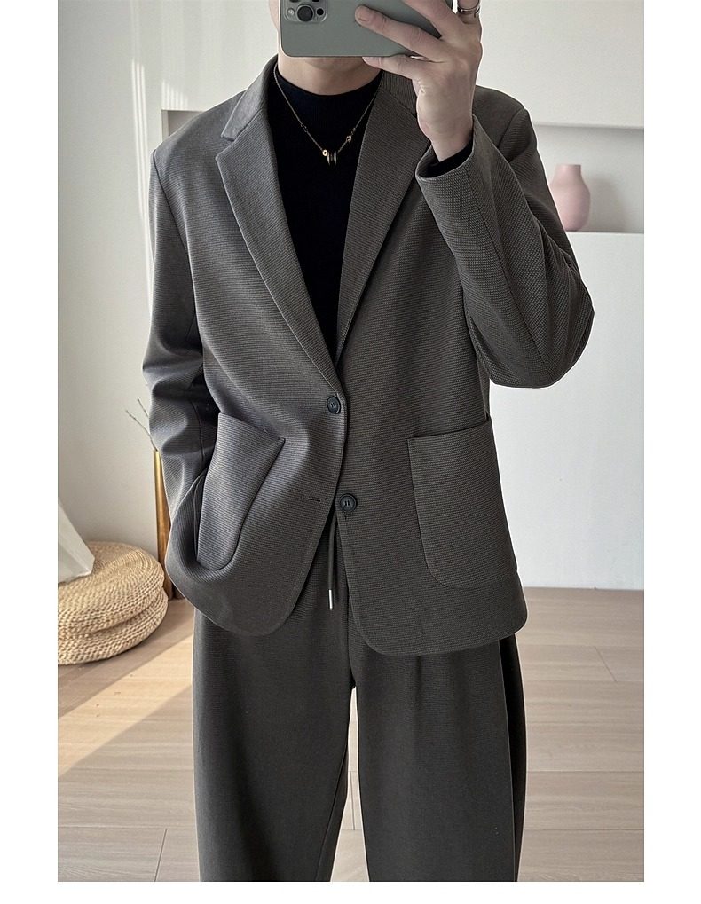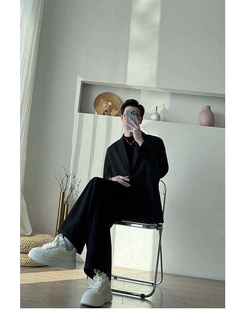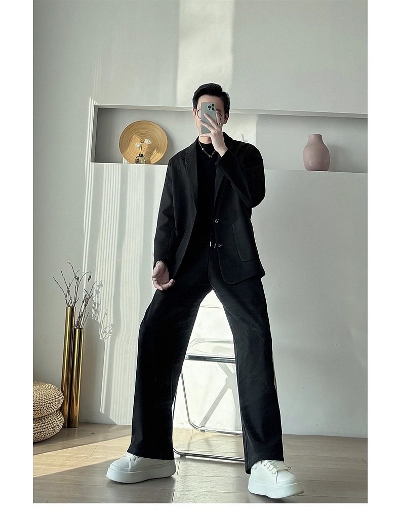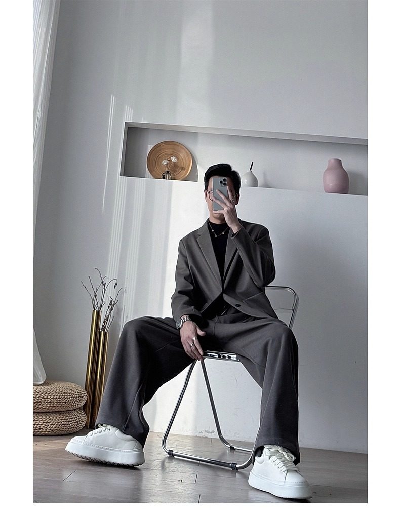 Korean Uamtor Men's Suit Autumn and Winter Old Money Style Woolen Suit Men's Loose Korean Version Scimitar Straight-Leg Pants Suit