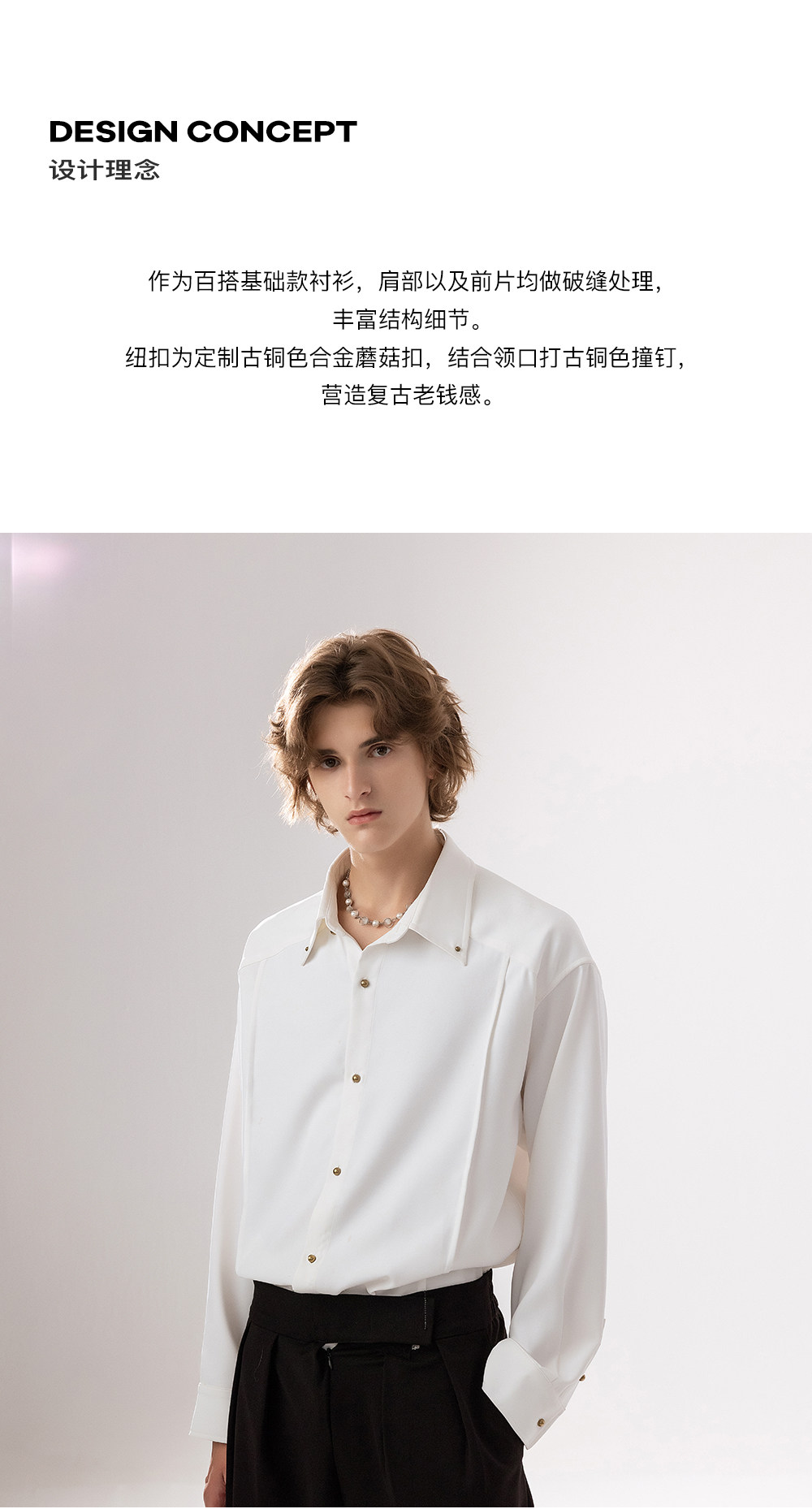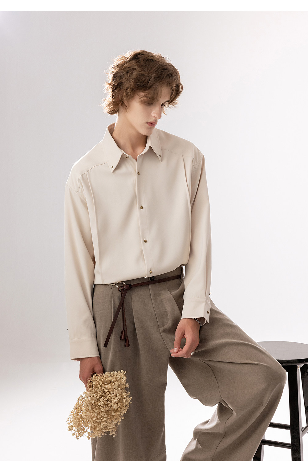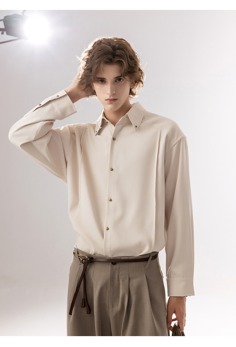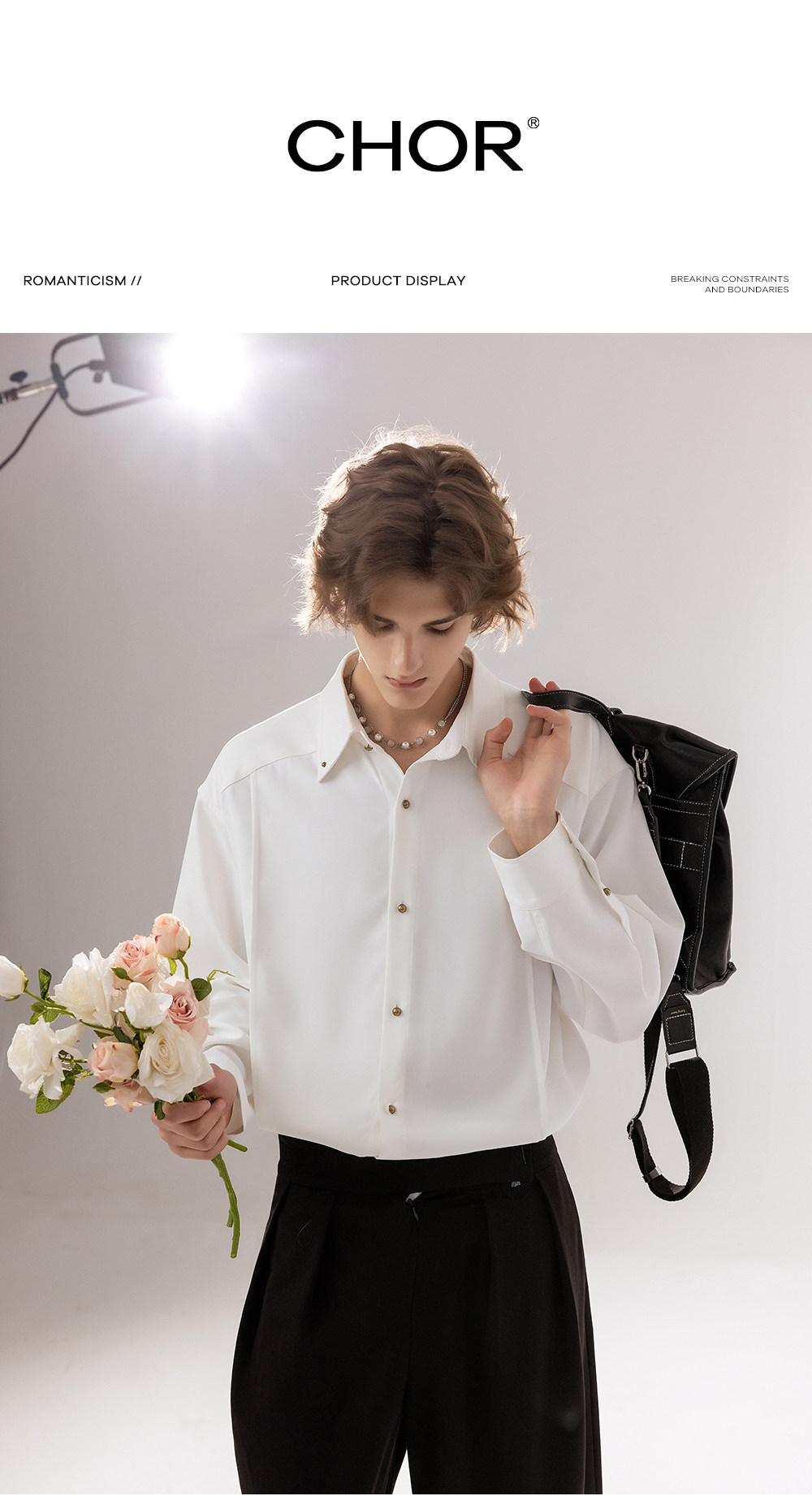 Chor Old Money Style Basic Mushroom Button Long Sleeve Shirt Top Men's Autumn New Vintage Casual Shirt