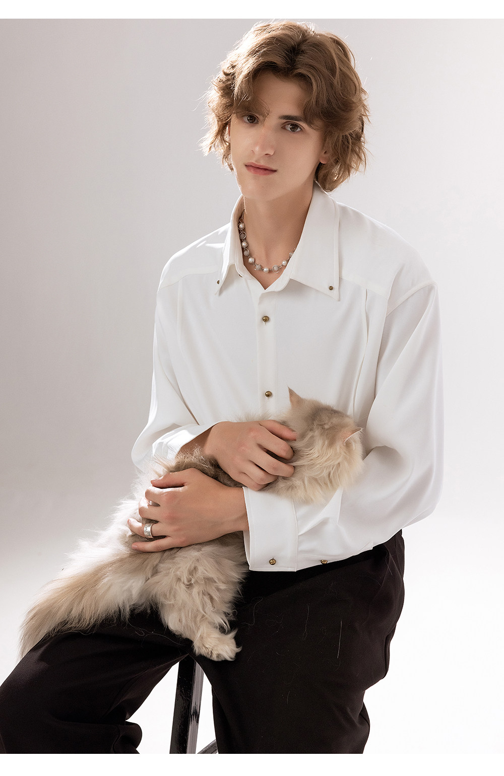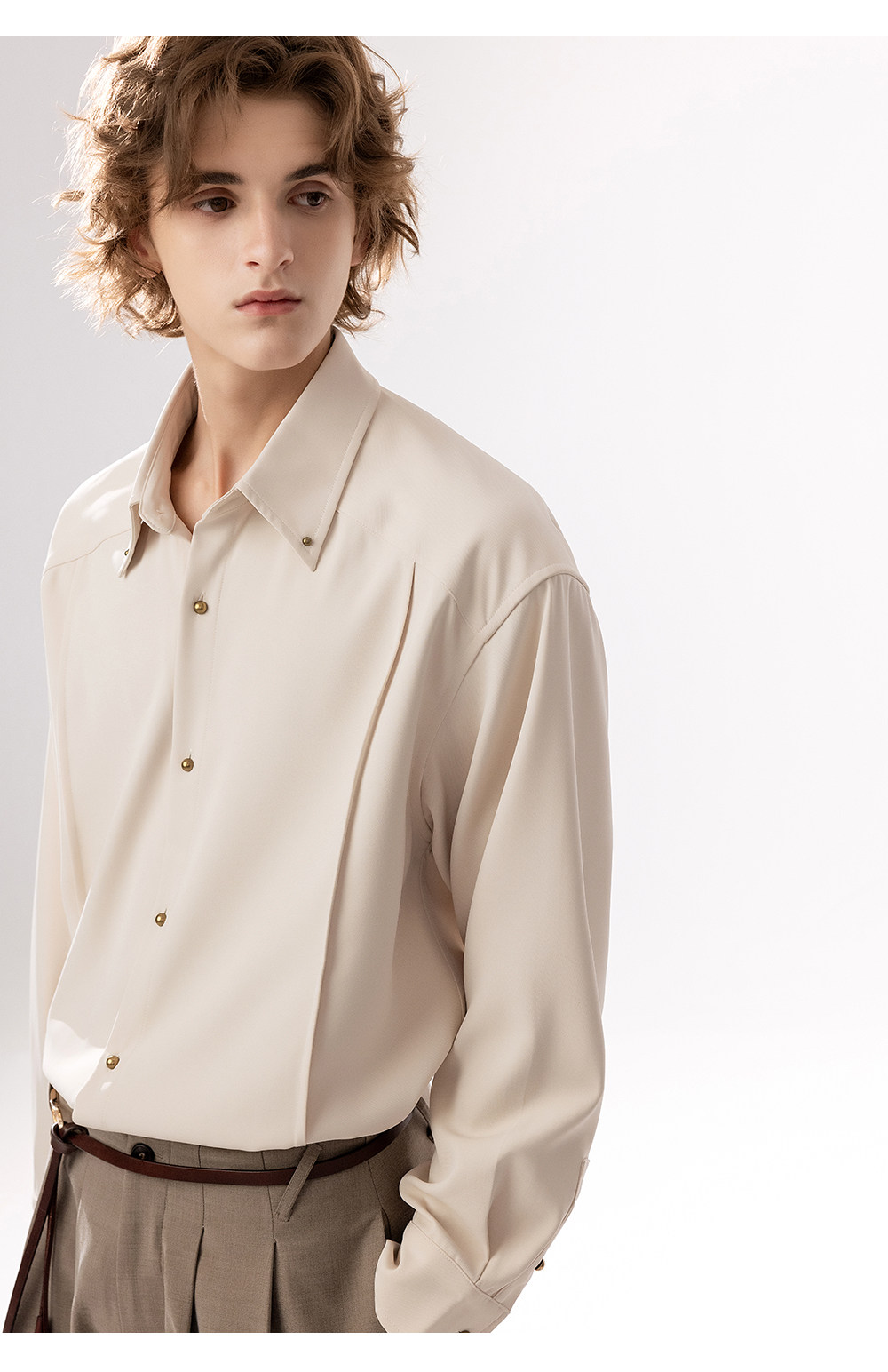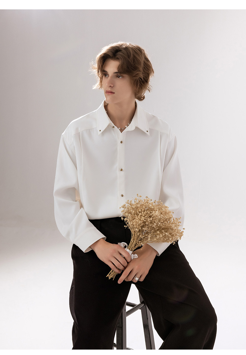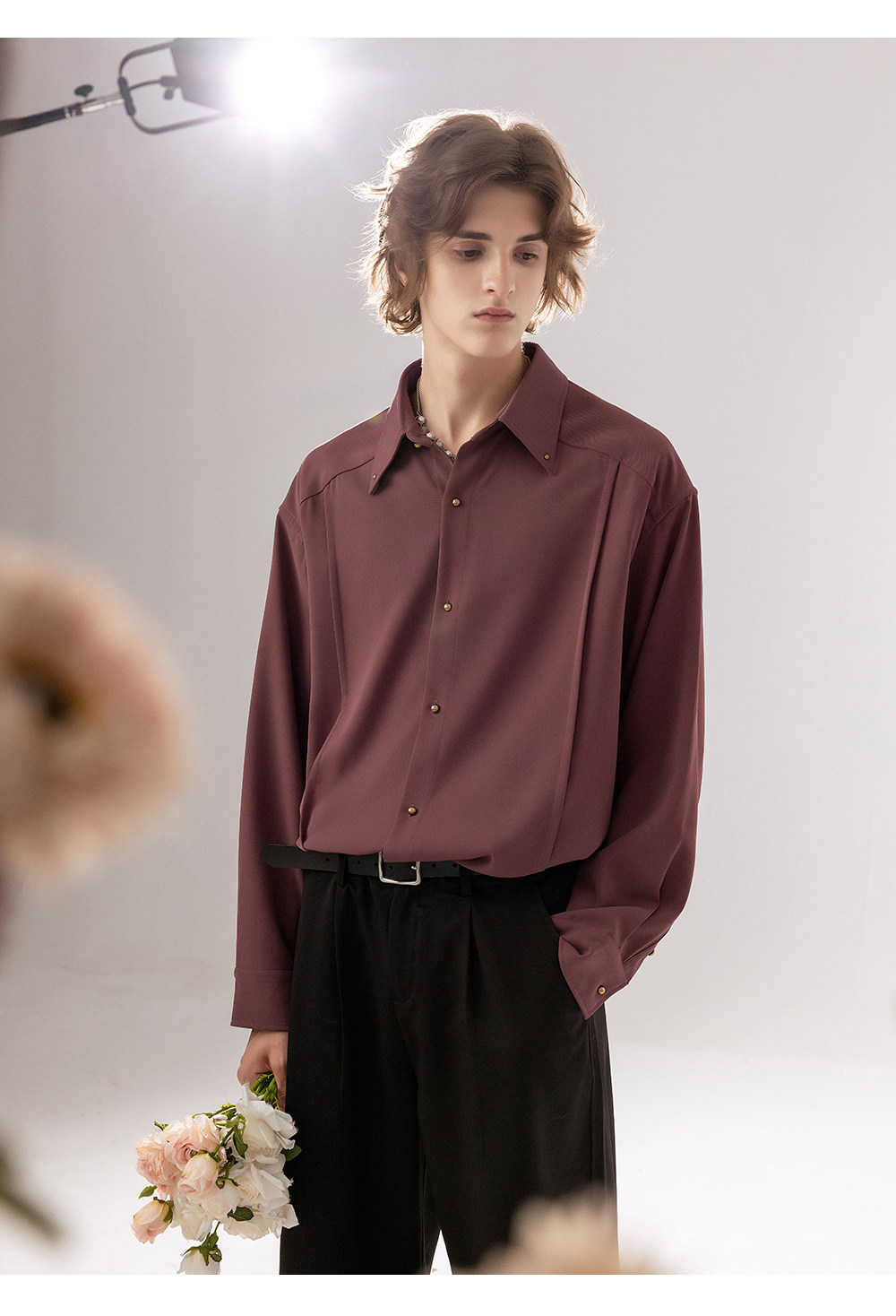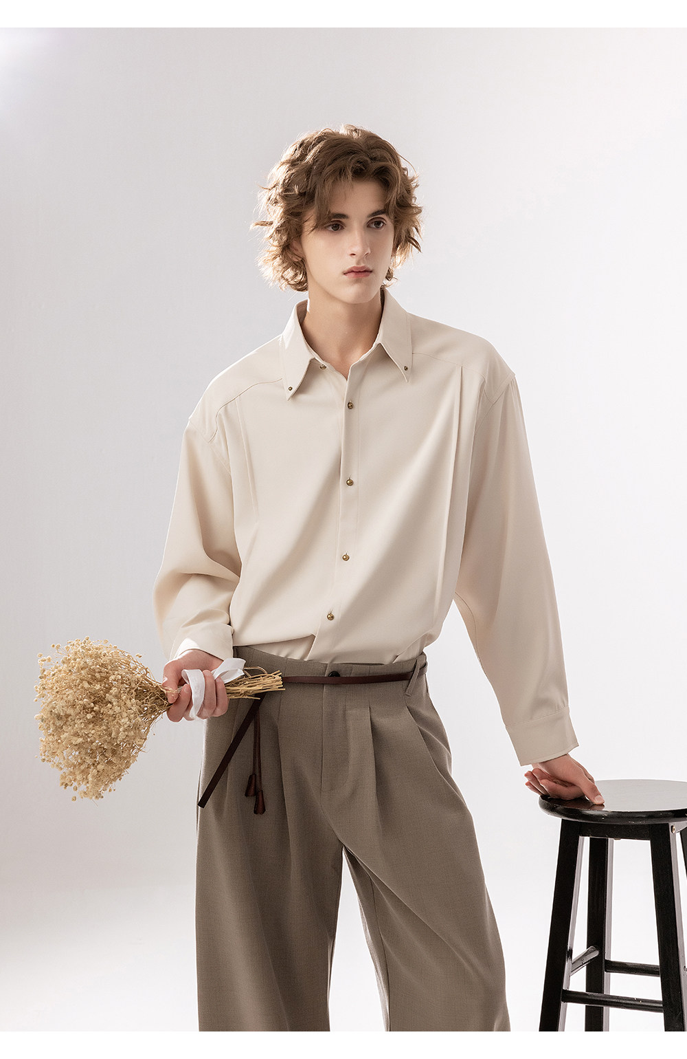 Chor Old Money Style Basic Mushroom Button Long Sleeve Shirt Top Men's Autumn New Vintage Casual Shirt