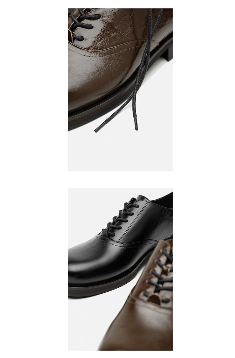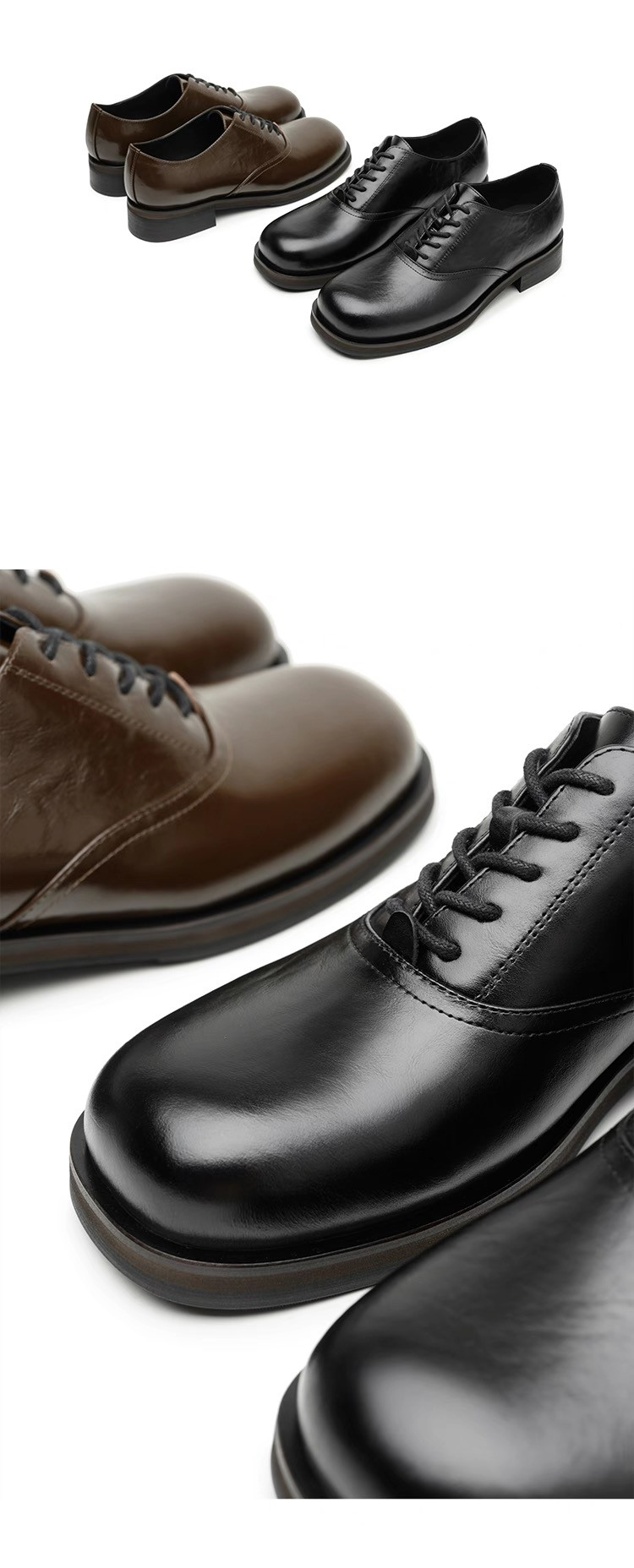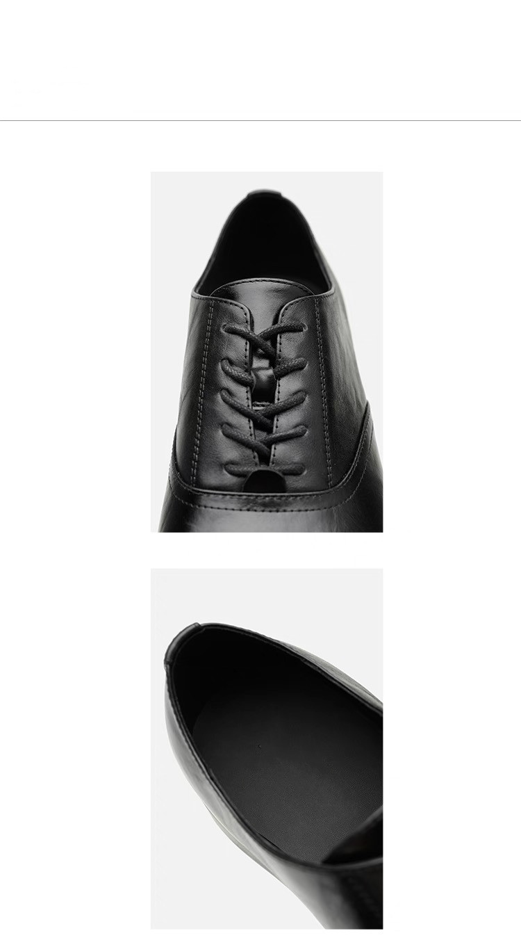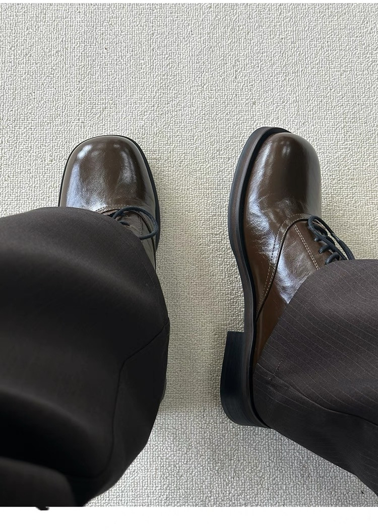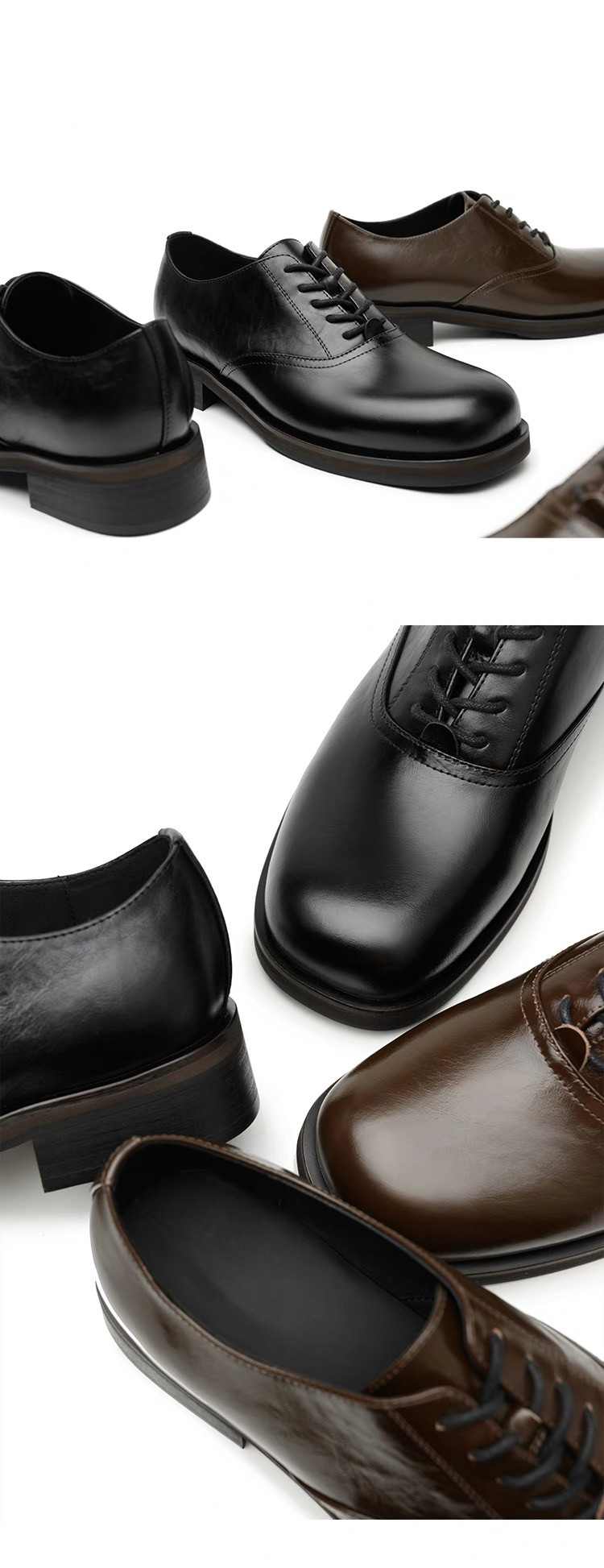Brown Leather Shoes for Men, 7cm Invisible Height-Increasing Shoes, Cos High-End Round-Toe Loafers, Commuter Square-Toe Derby Men's Shoes
