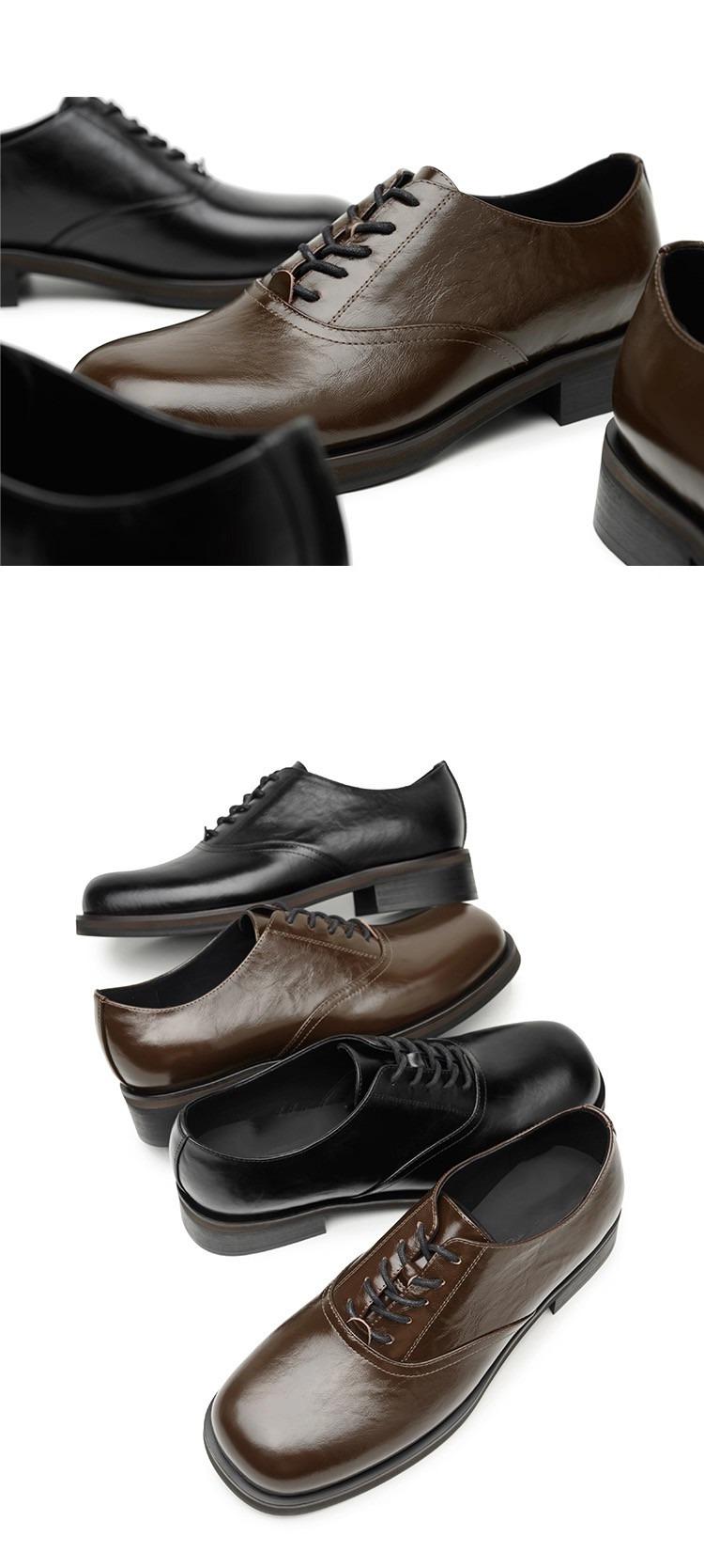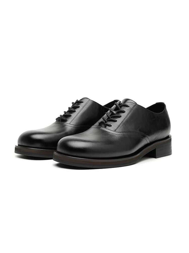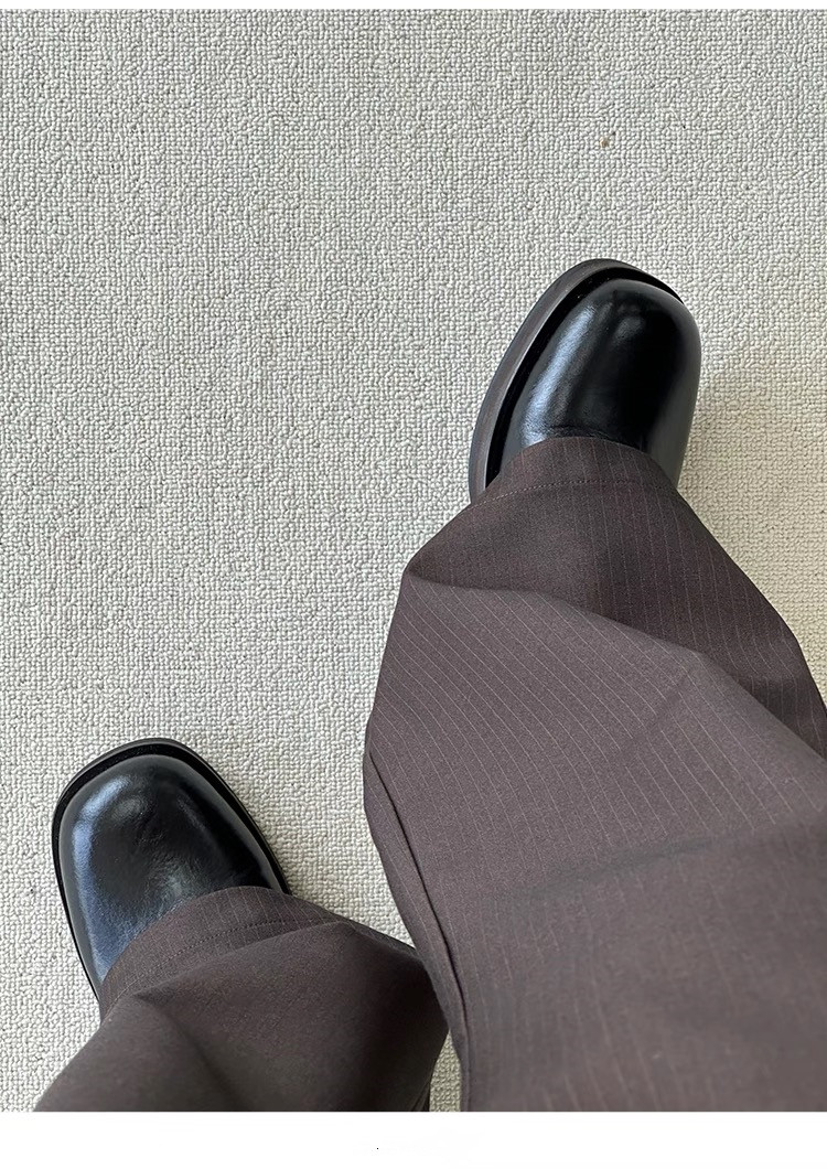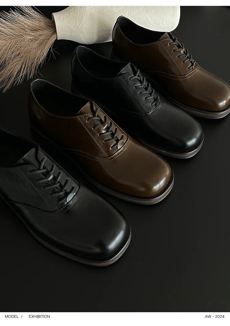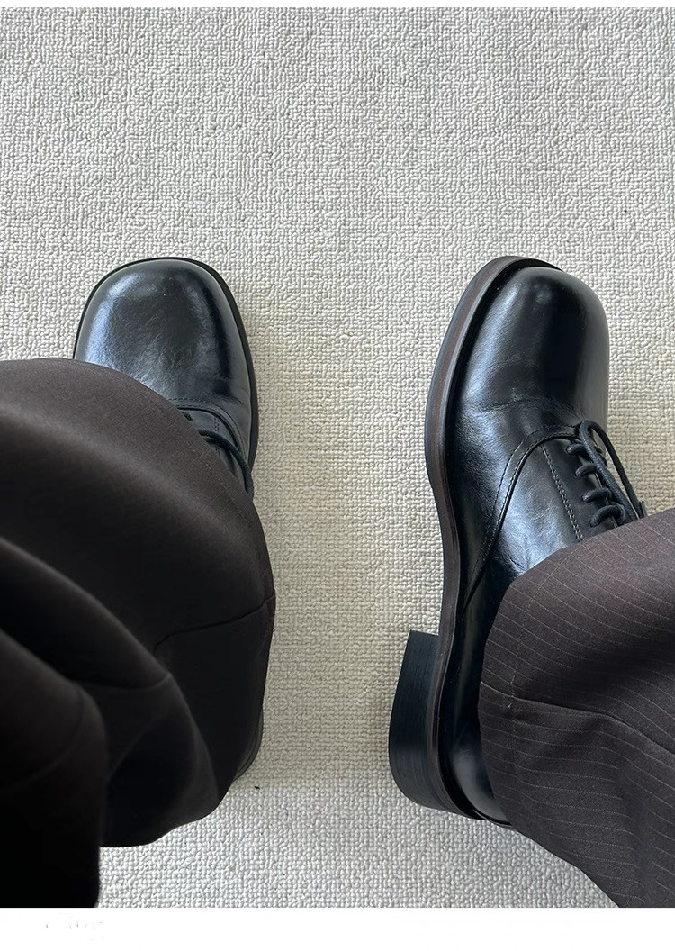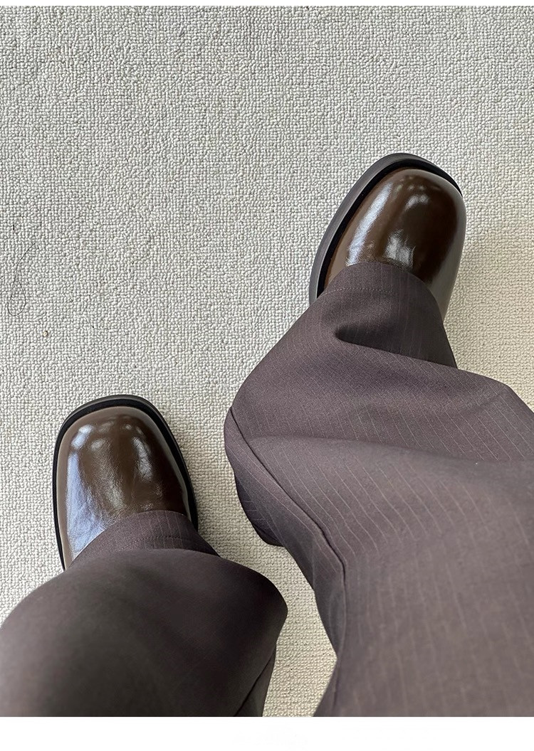 Brown Leather Shoes for Men, 7cm Invisible Height-Increasing Shoes, Cos High-End Round-Toe Loafers, Commuter Square-Toe Derby Men's Shoes