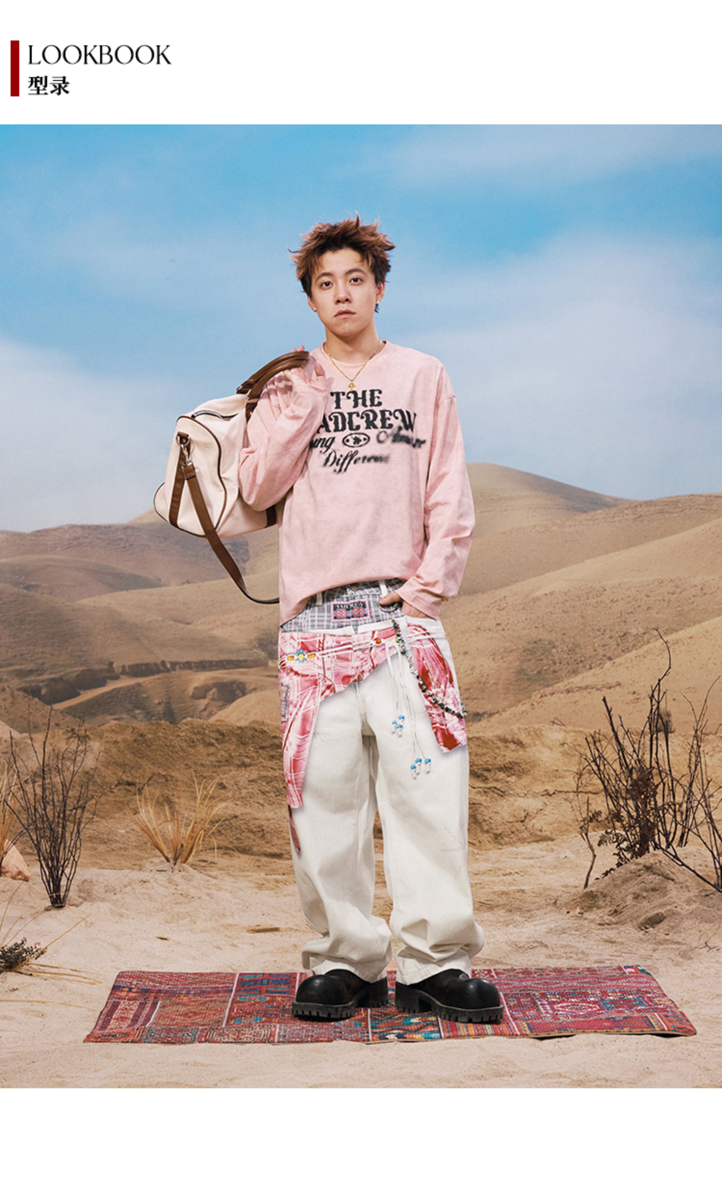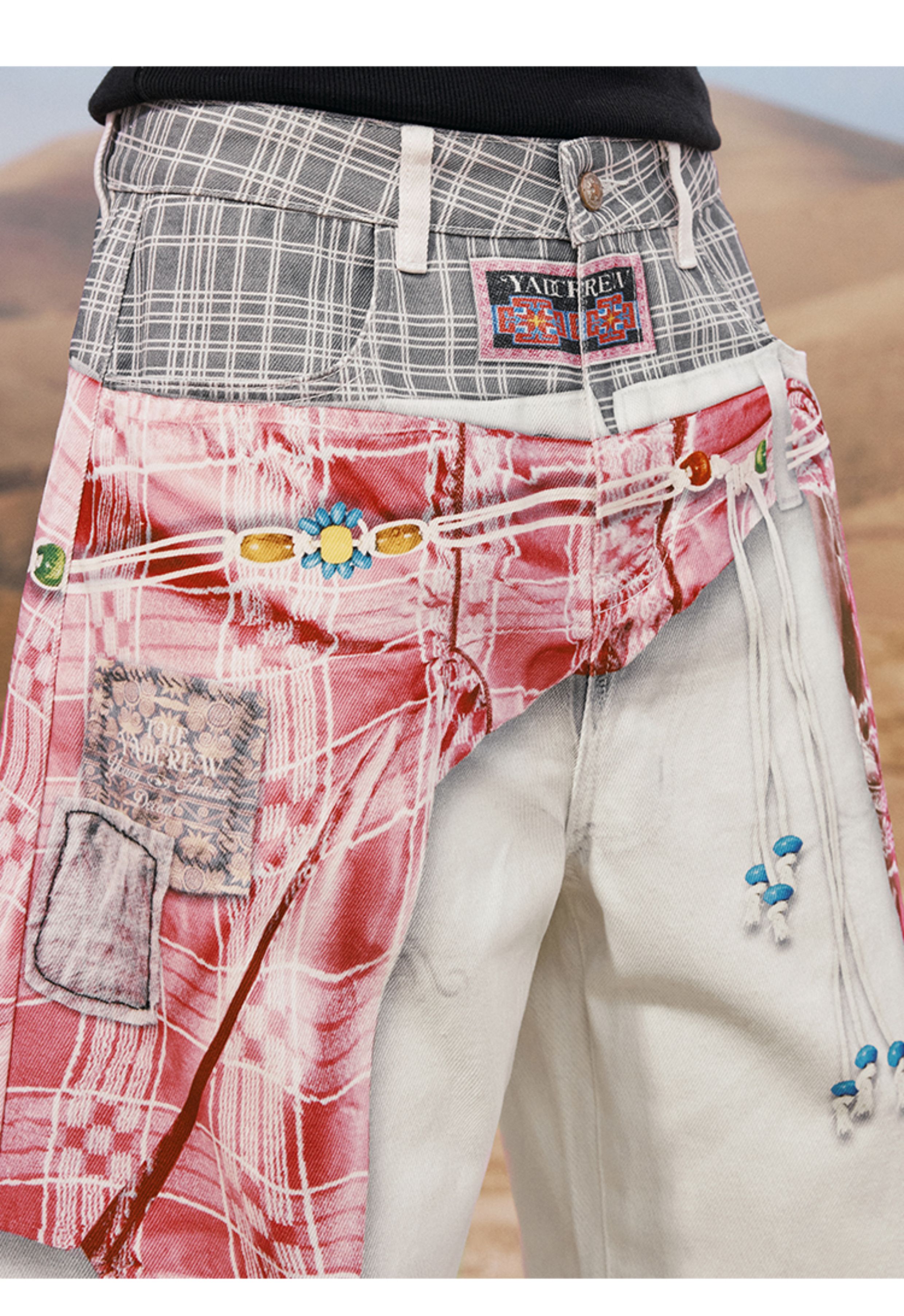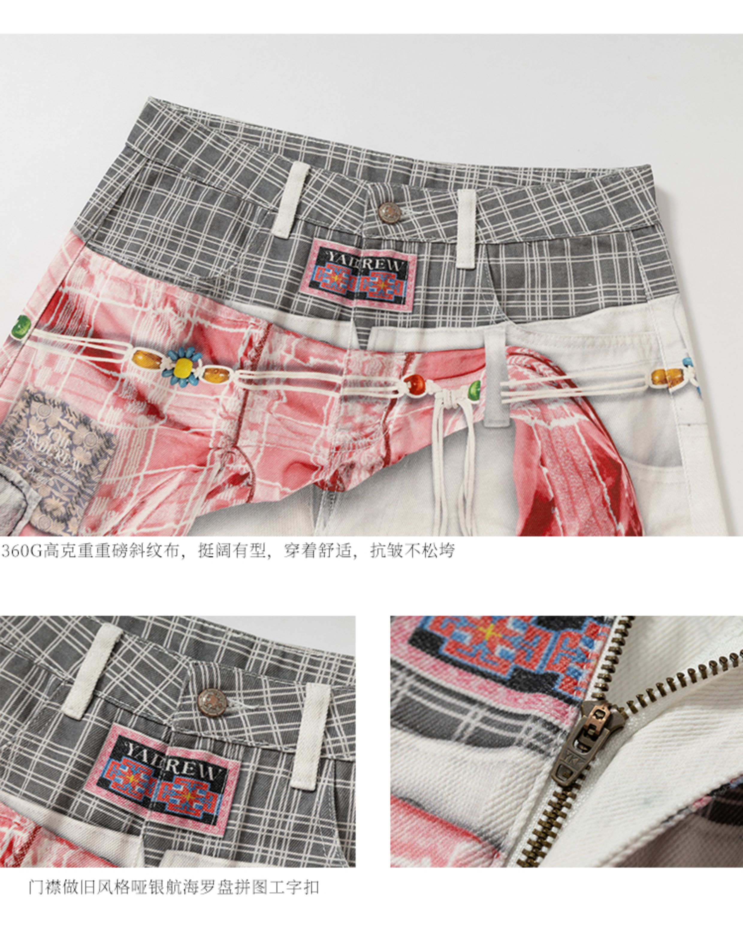 Guan Junchen X Fu Longfei Same Style】Yadcrew Ethnic Pattern Shirt Printed Denim Pants