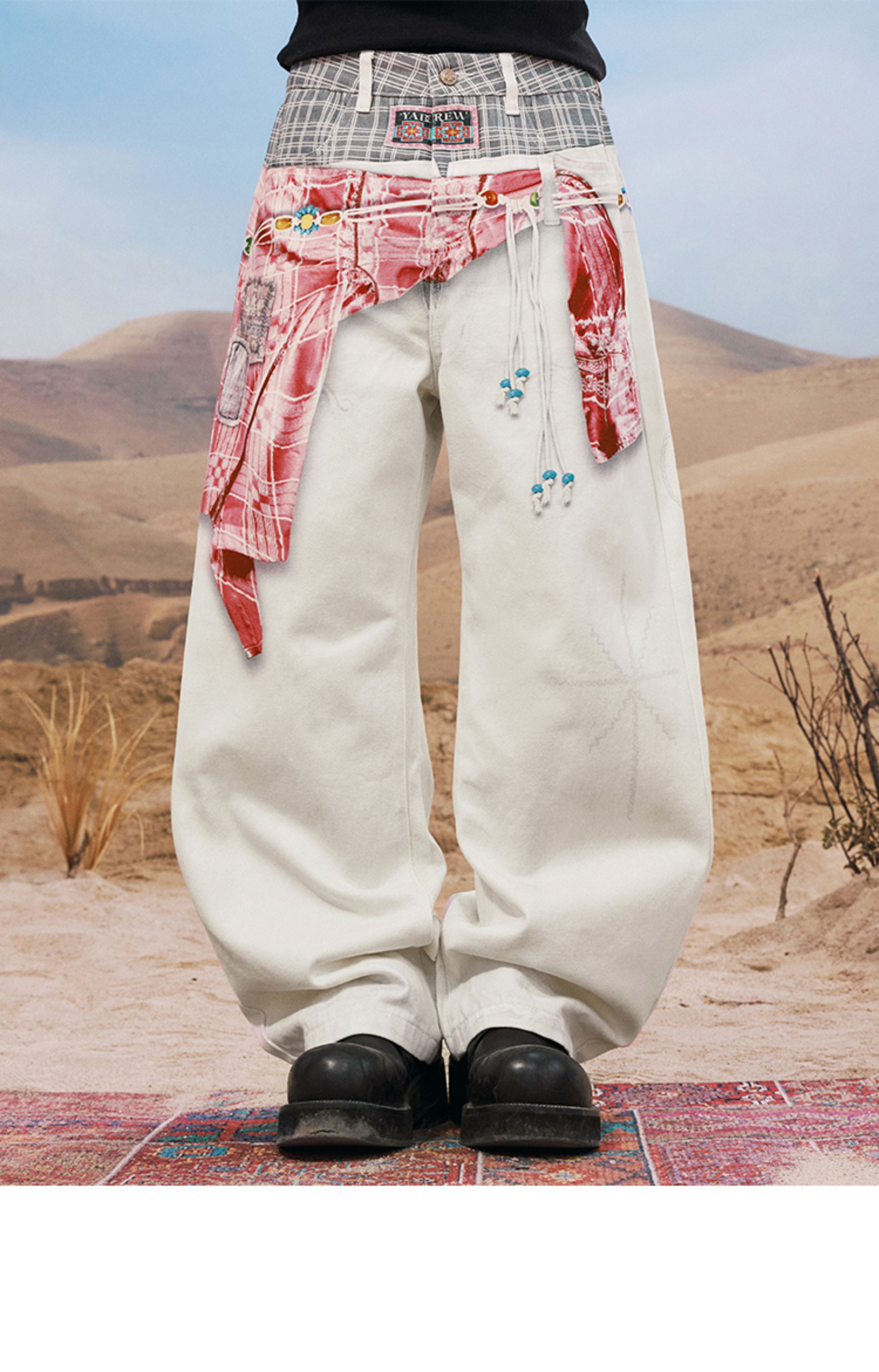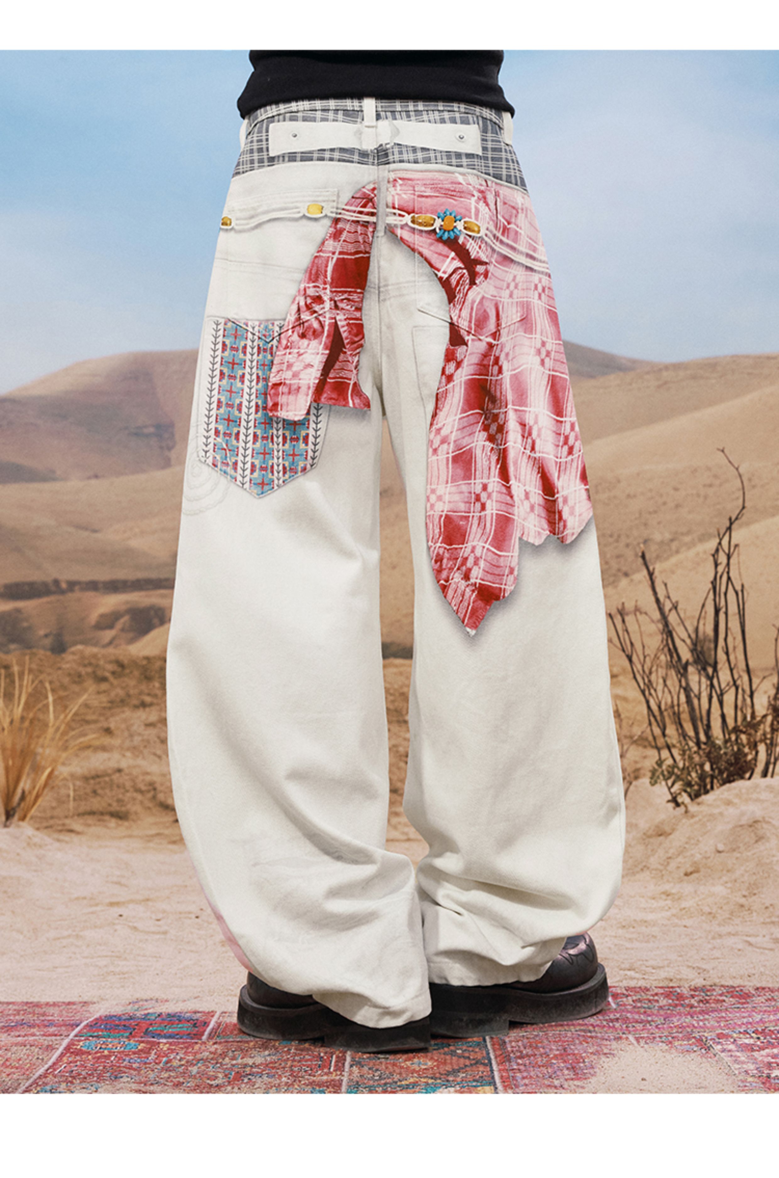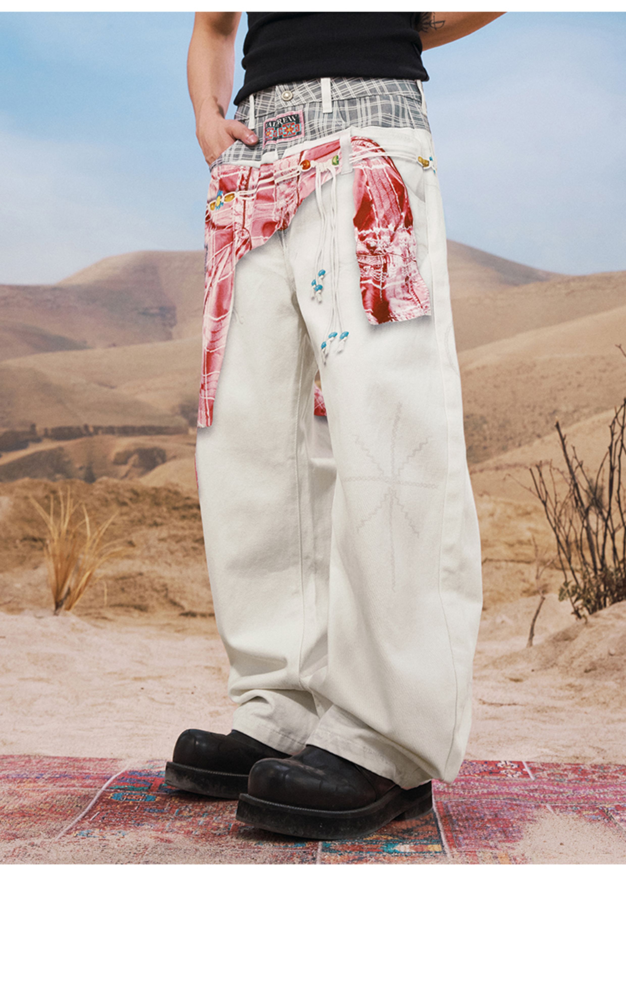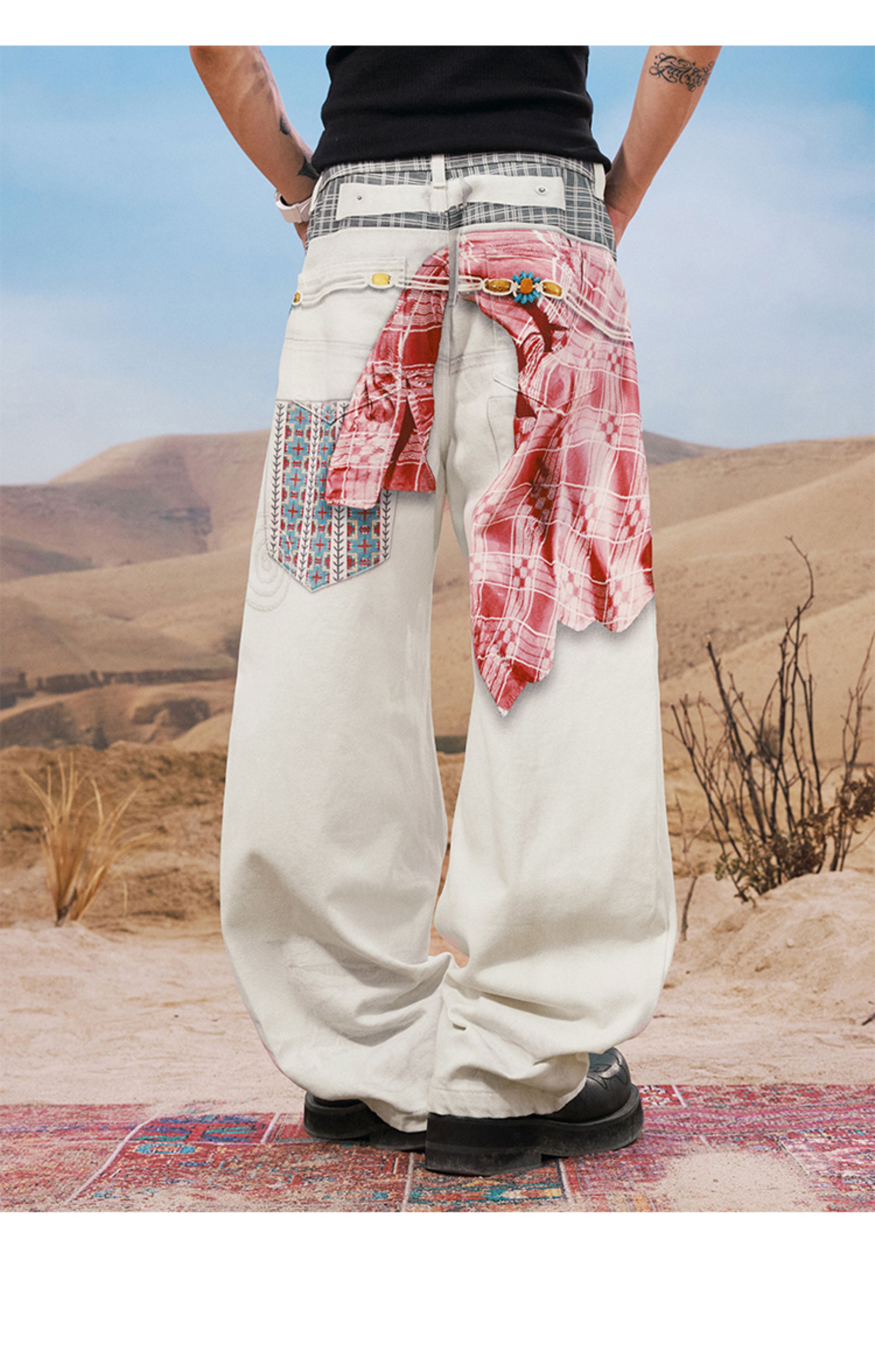 Guan Junchen X Fu Longfei Same Style】Yadcrew Ethnic Pattern Shirt Printed Denim Pants