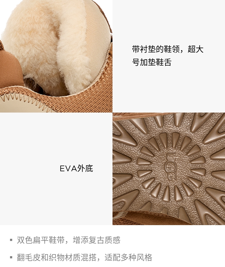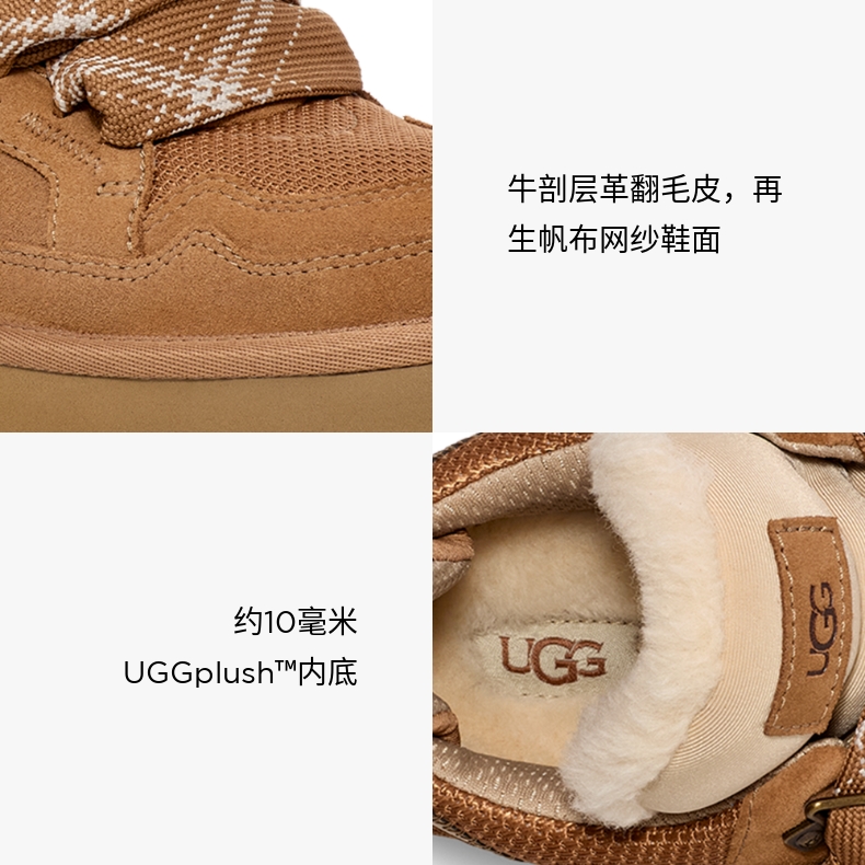 Ugg Autumn Women's Comfortable Flat Round-Toe Two-Tone Lace-Up Fashion Low-Cut Casual Shoes Celebrity Style 1144032