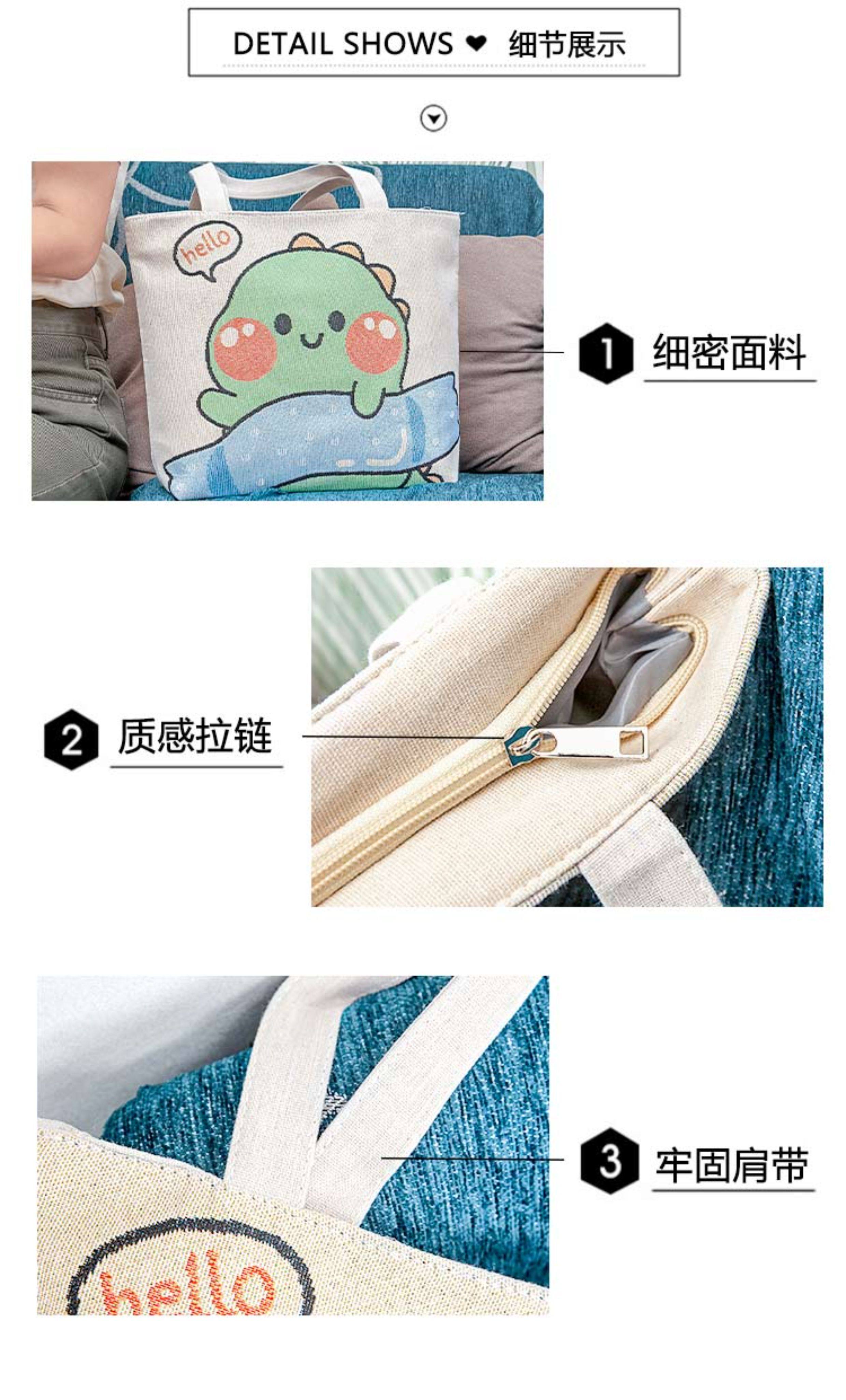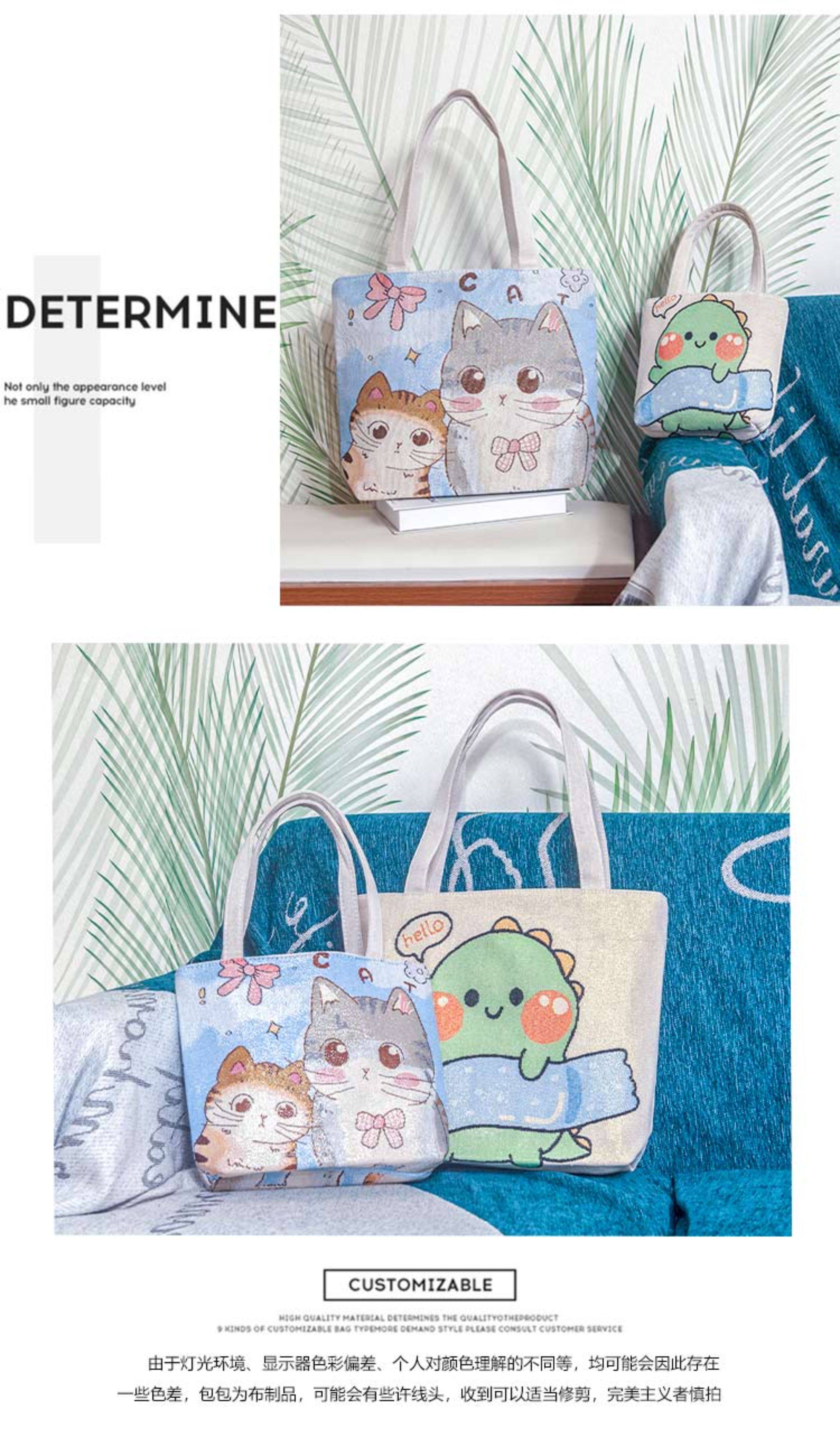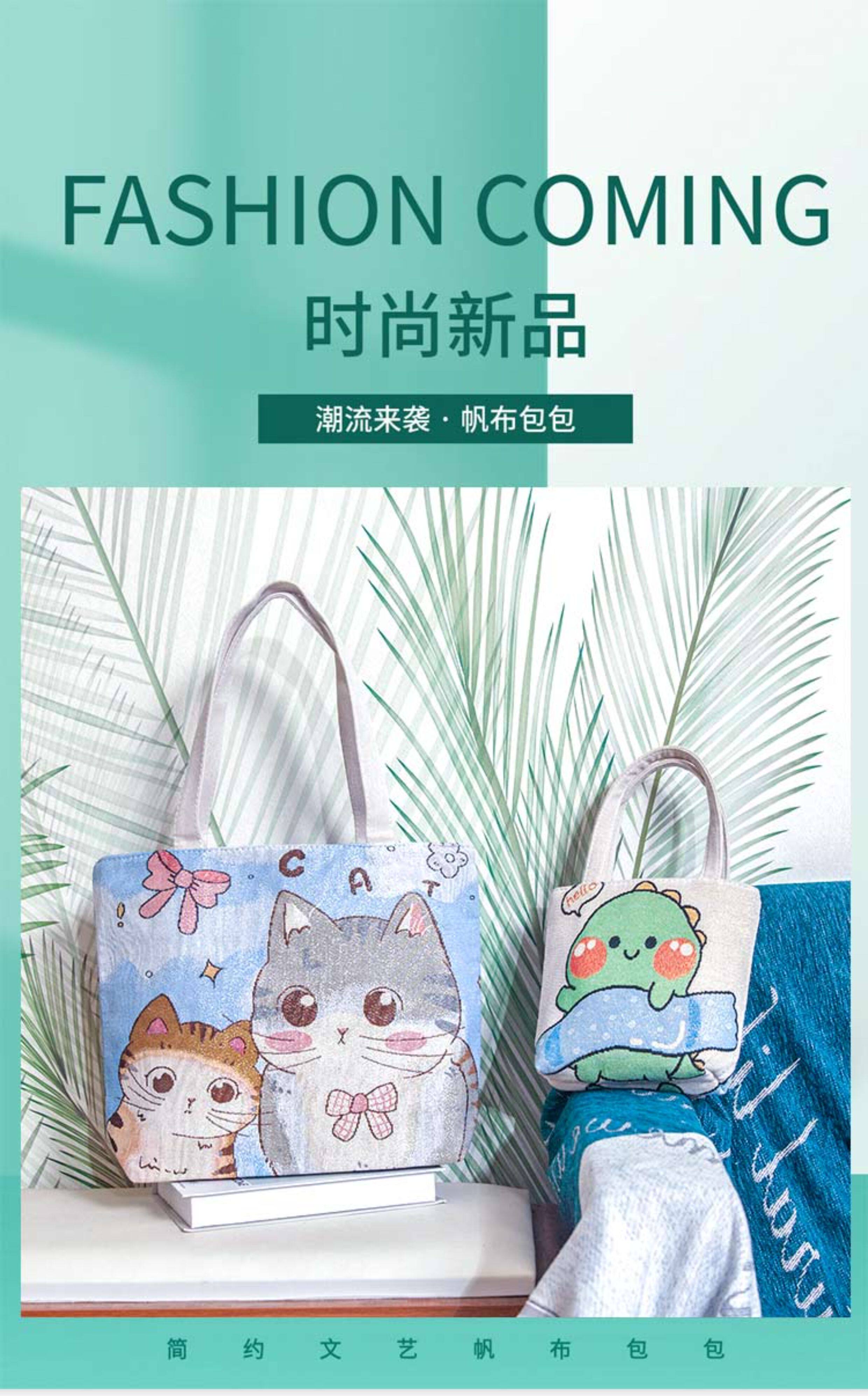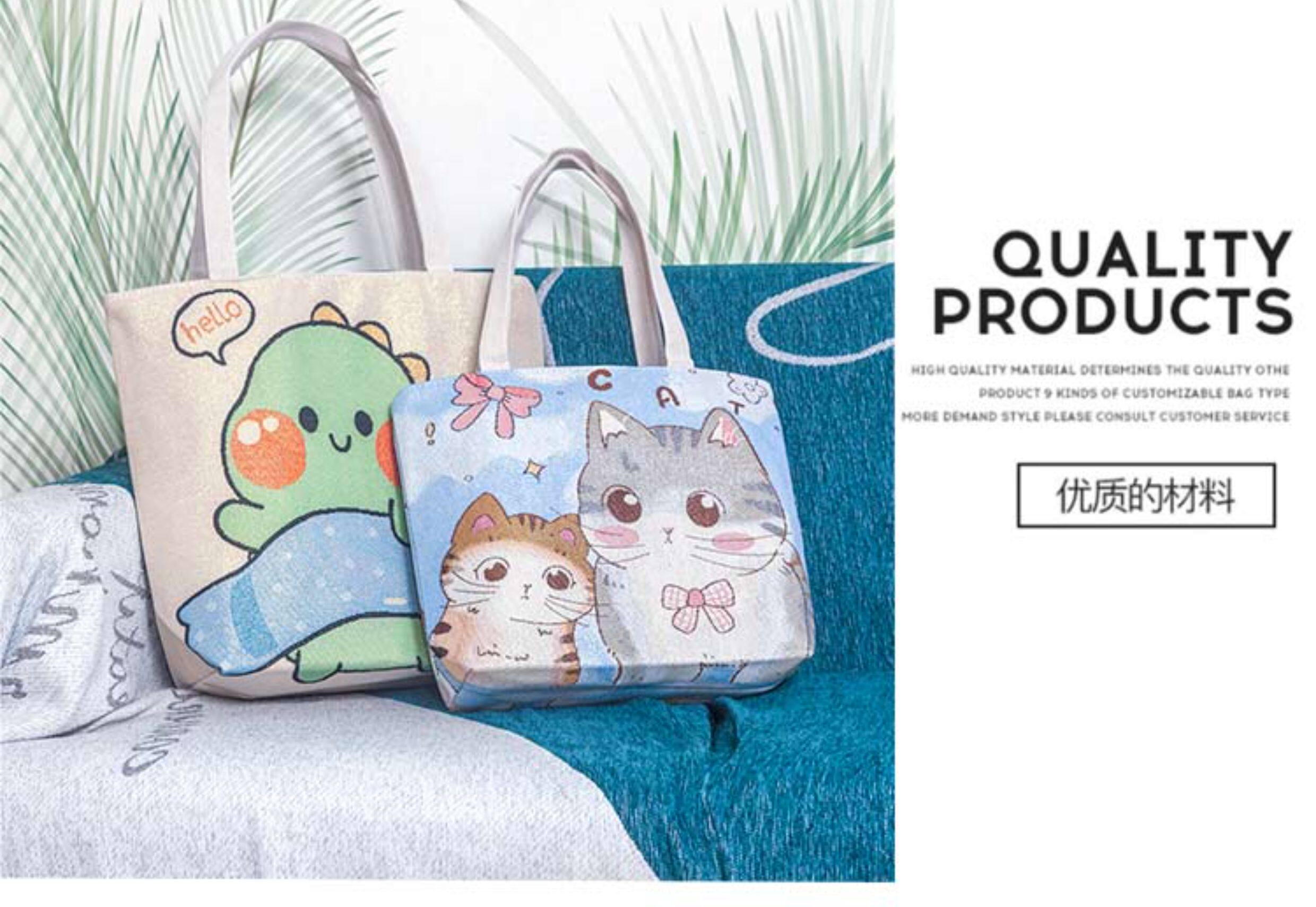 New Large-Capacity Canvas Handbag, Casual Shoulder Bag, Mommy Bag, Commuter Computer Bag, Cartoon Student Tutoring Bag