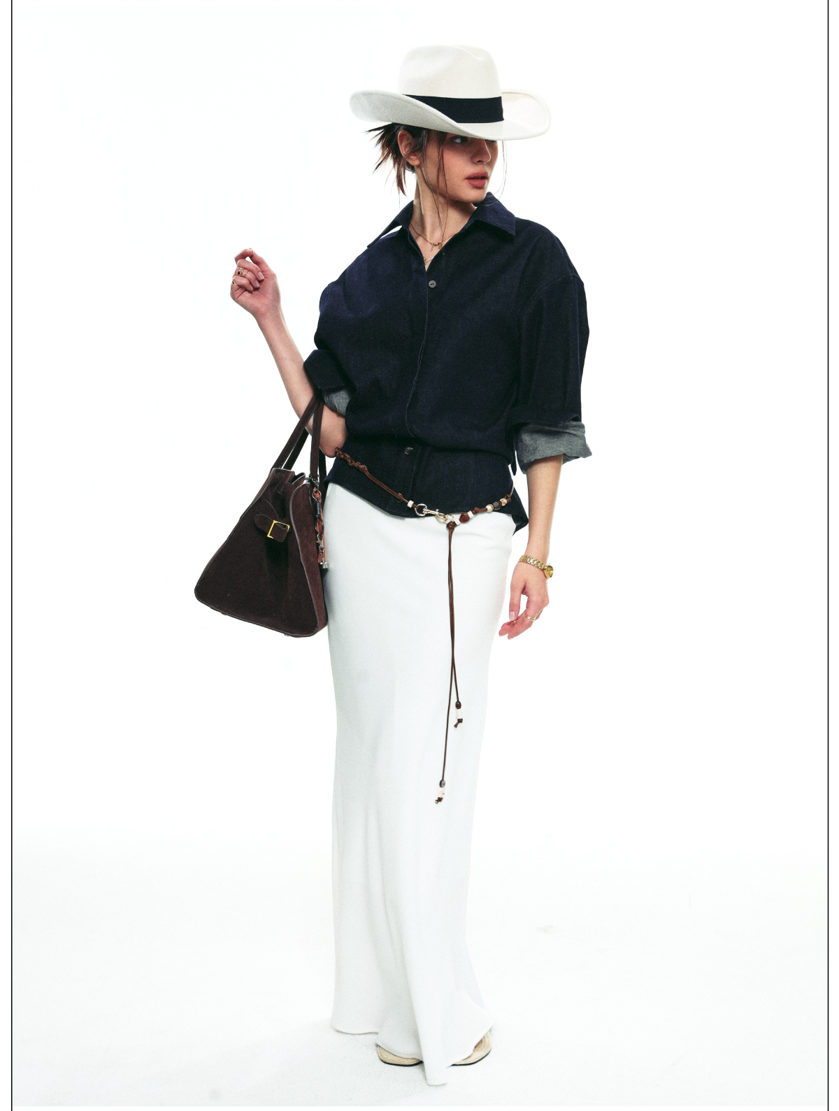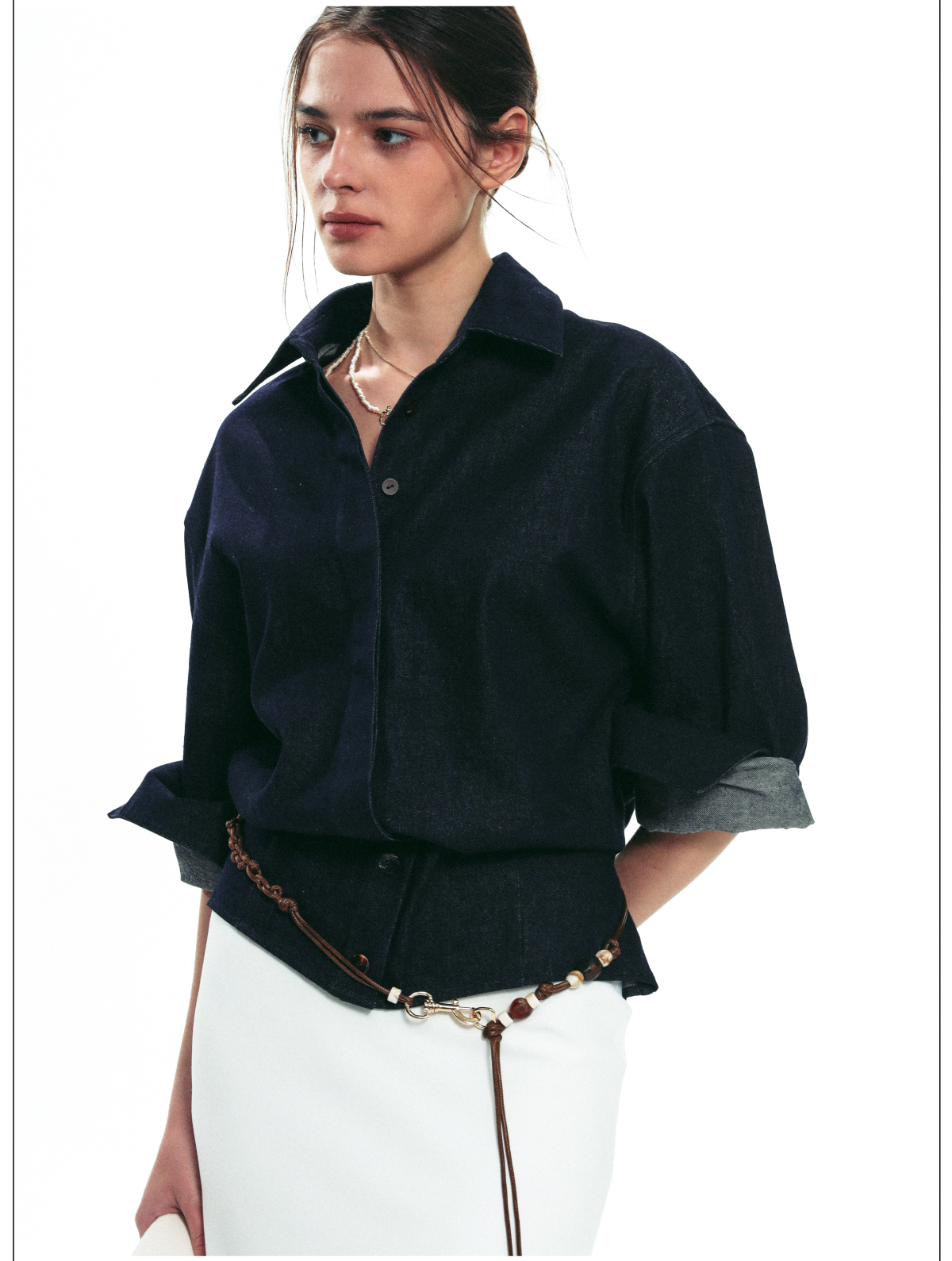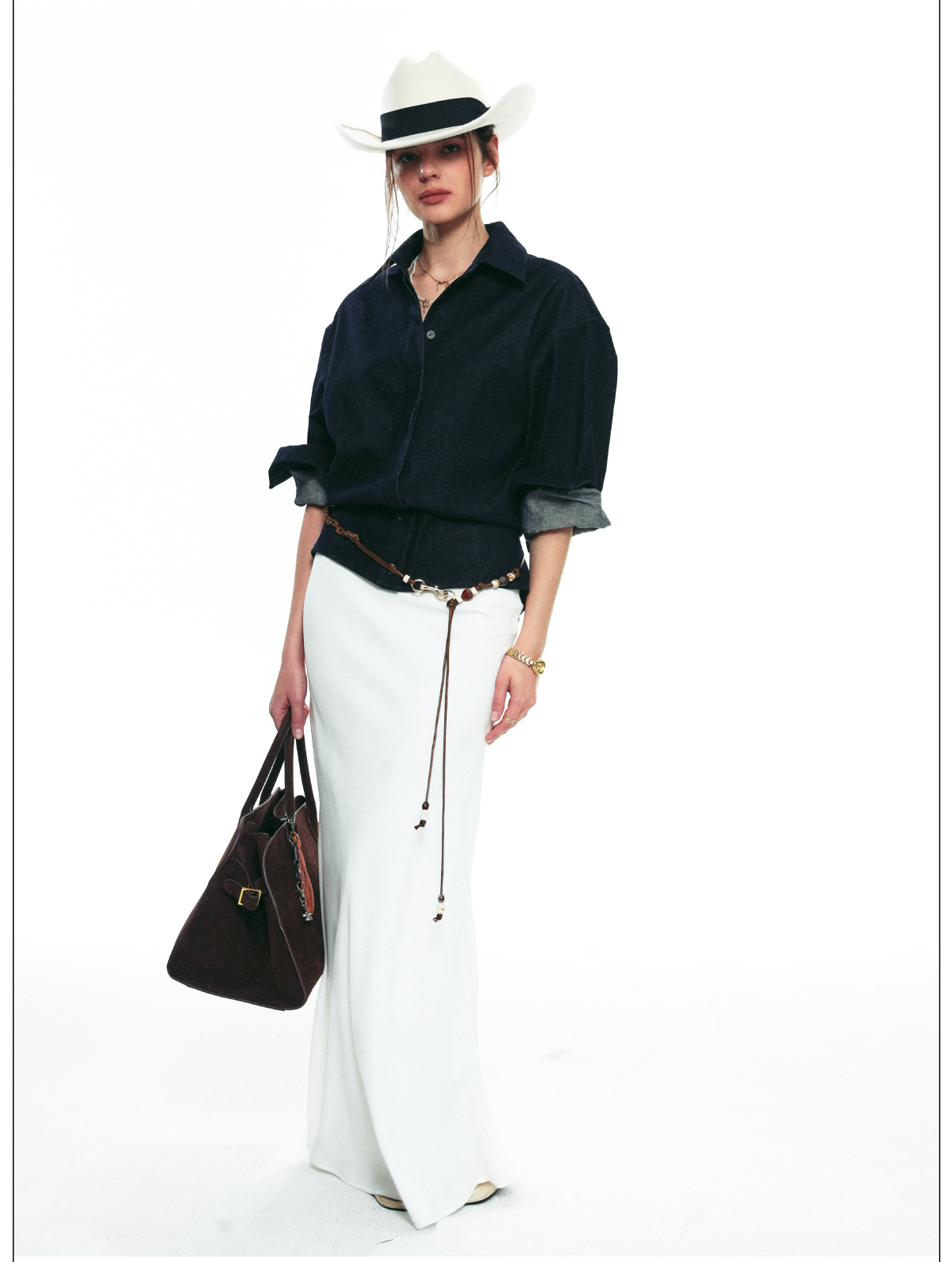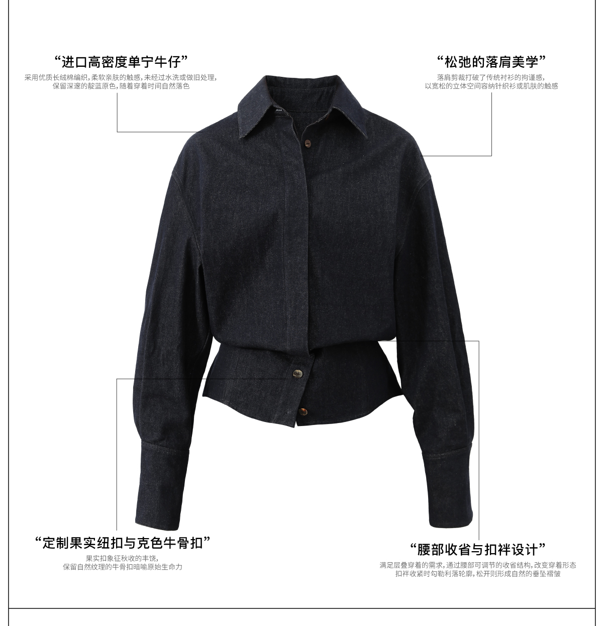 Single Moment25Aw Autumn New Style French Style Waist-Cinching Slim Short Denim Shirt Long-Sleeved Women's Top