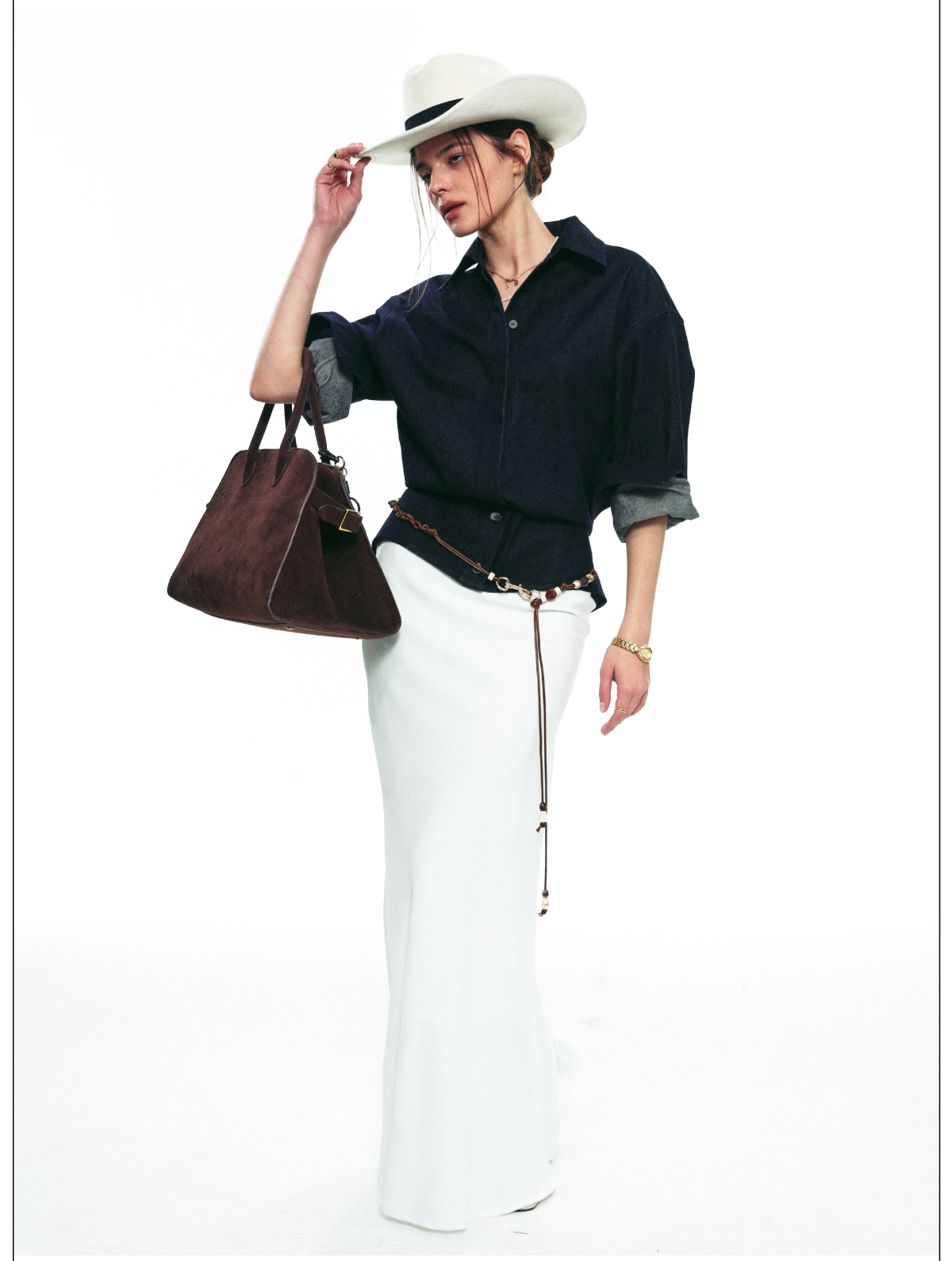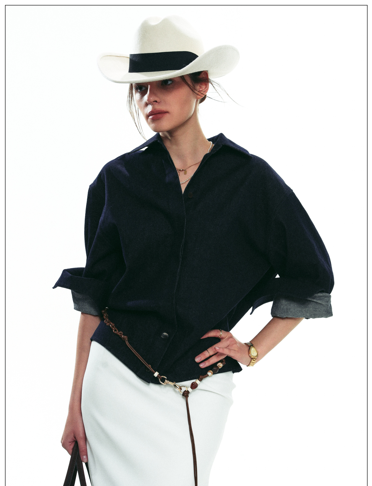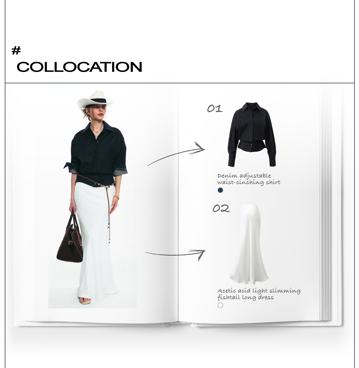Single Moment25Aw Autumn New Style French Style Waist-Cinching Slim Short Denim Shirt Long-Sleeved Women's Top
