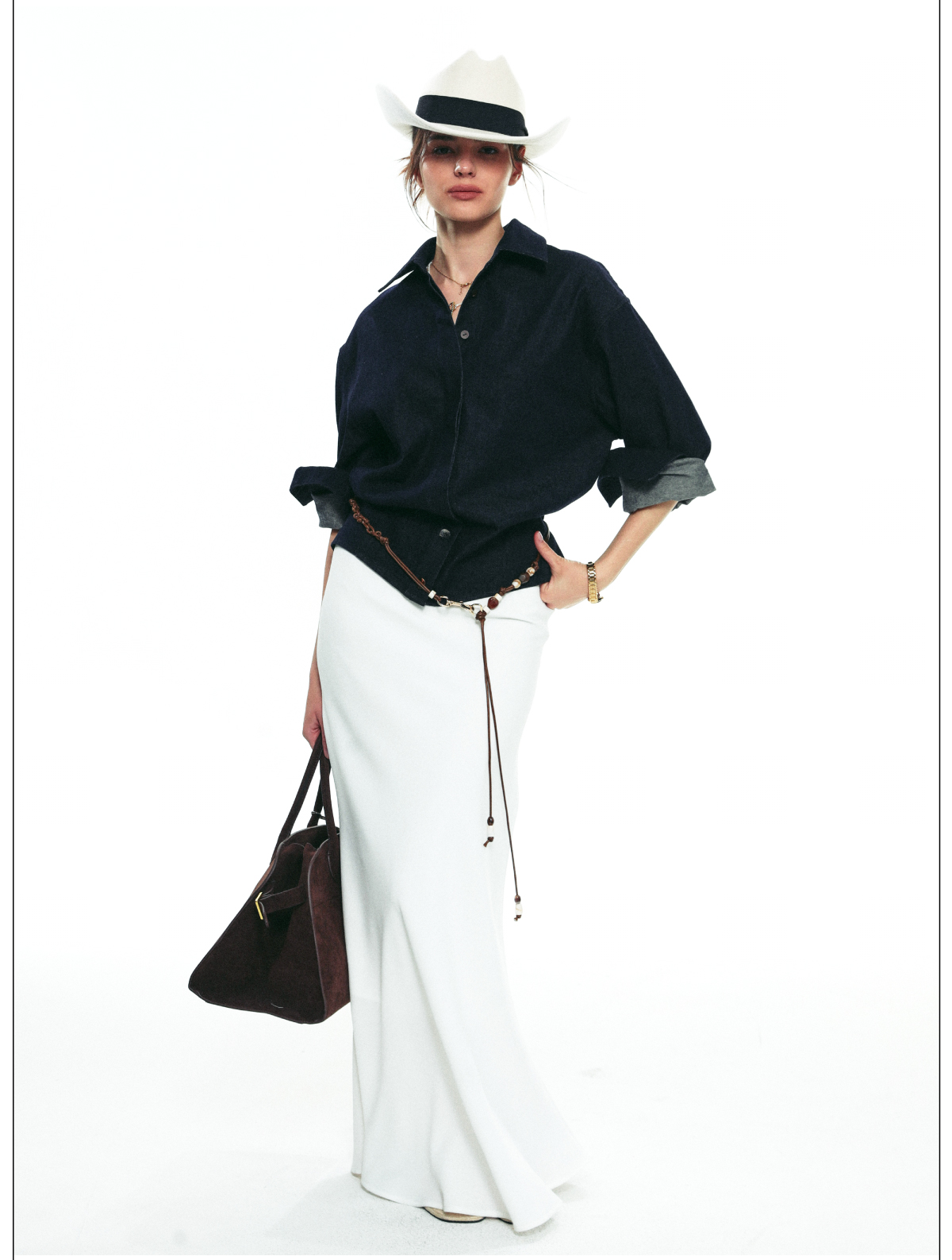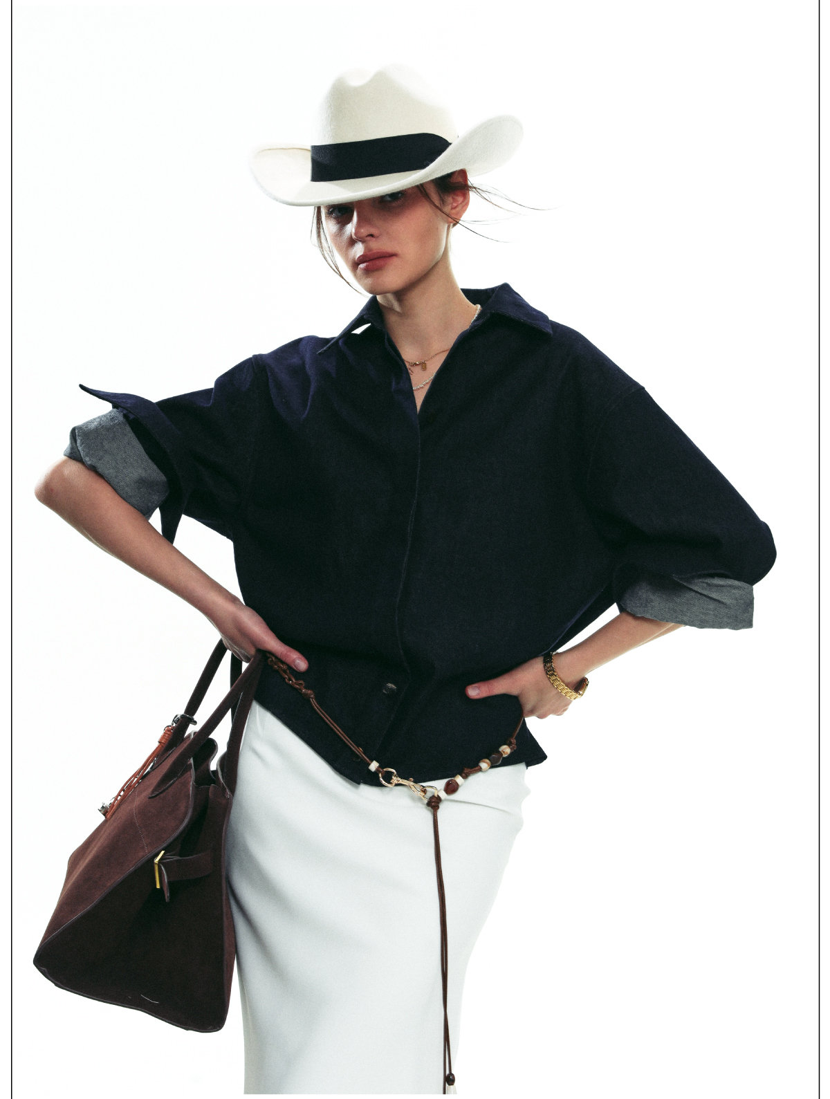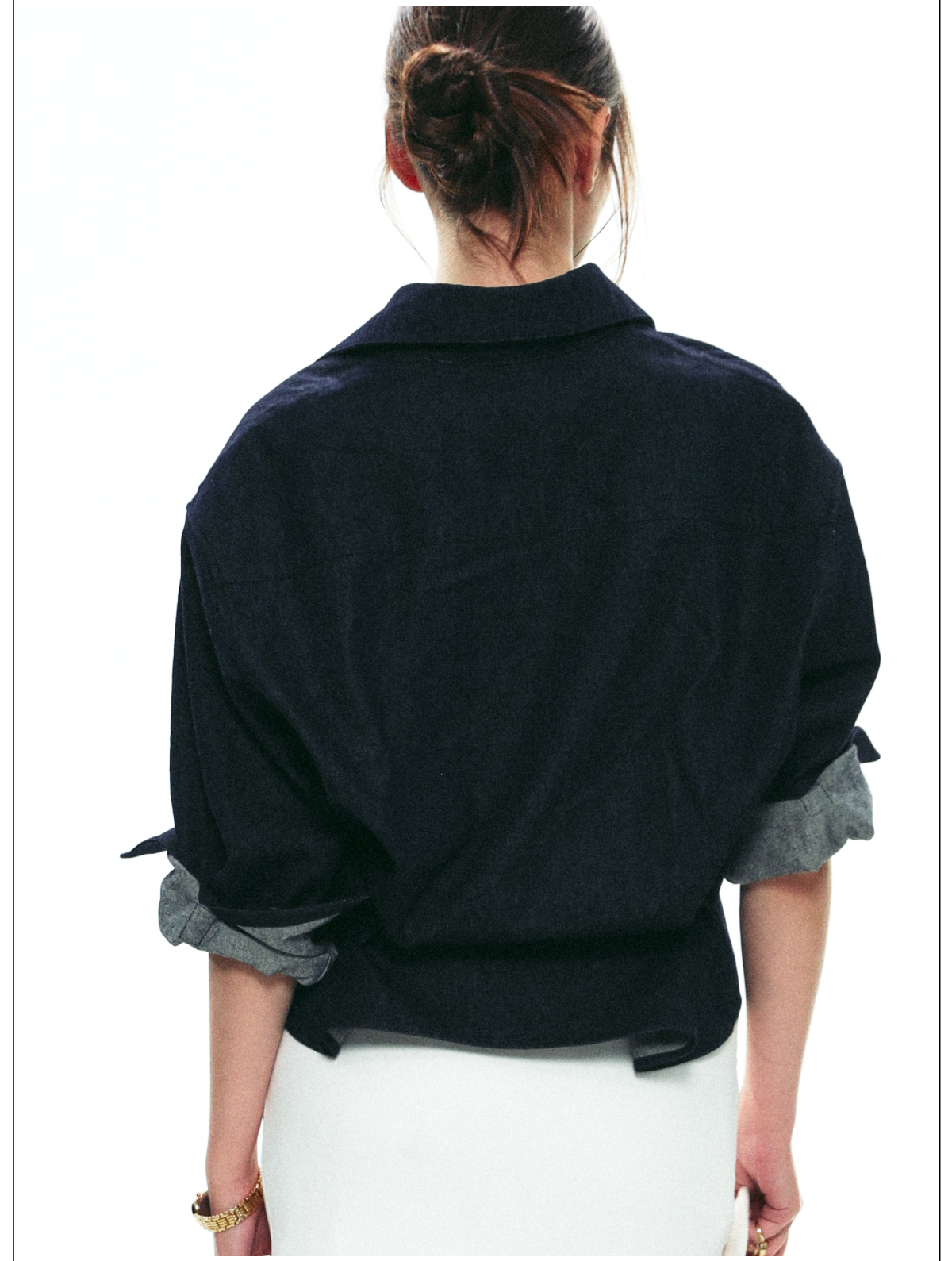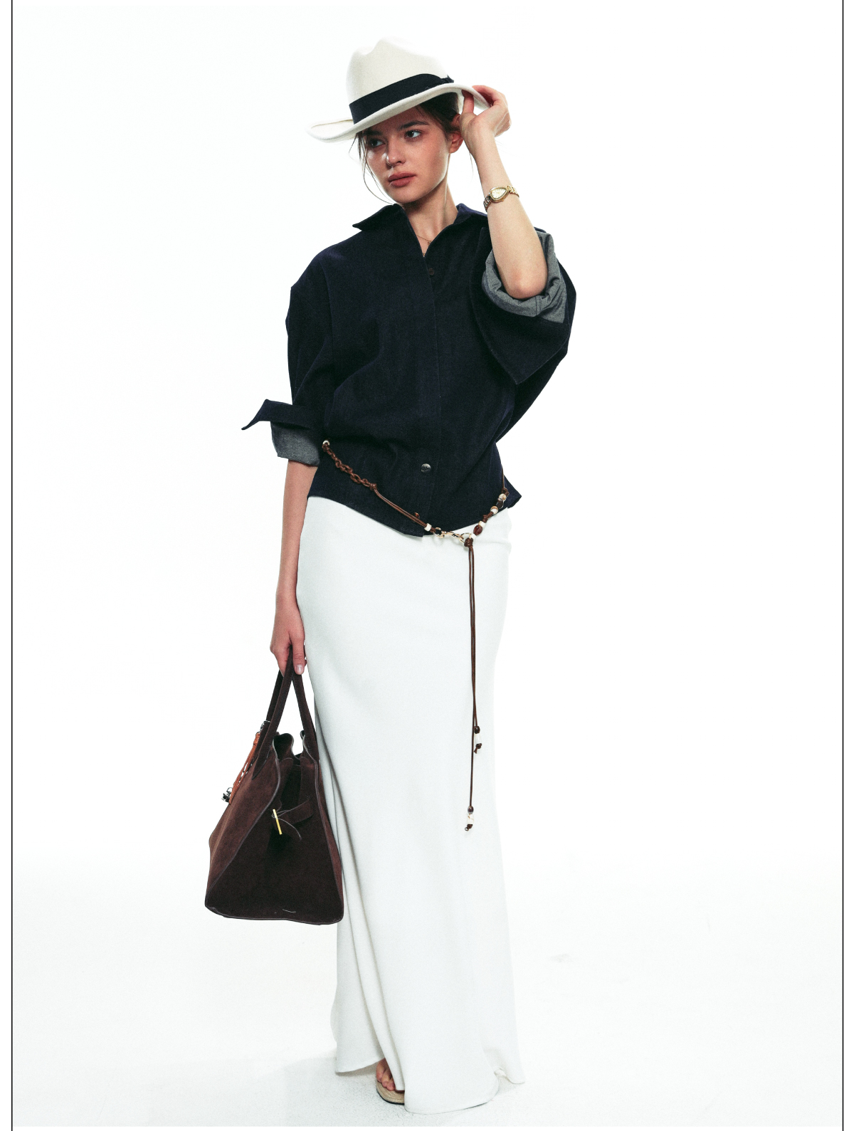 Single Moment25Aw Autumn New Style French Style Waist-Cinching Slim Short Denim Shirt Long-Sleeved Women's Top