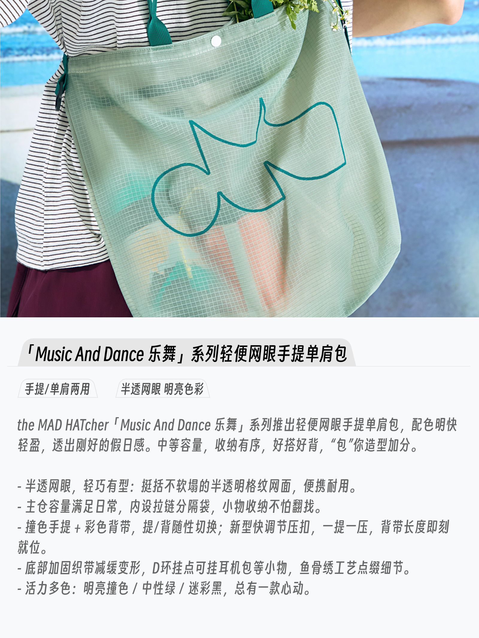 Themadhatcher「Music and Dance」Lightweight Mesh Handbag, Shoulder Bag, Crossbody Bag for Men and Women