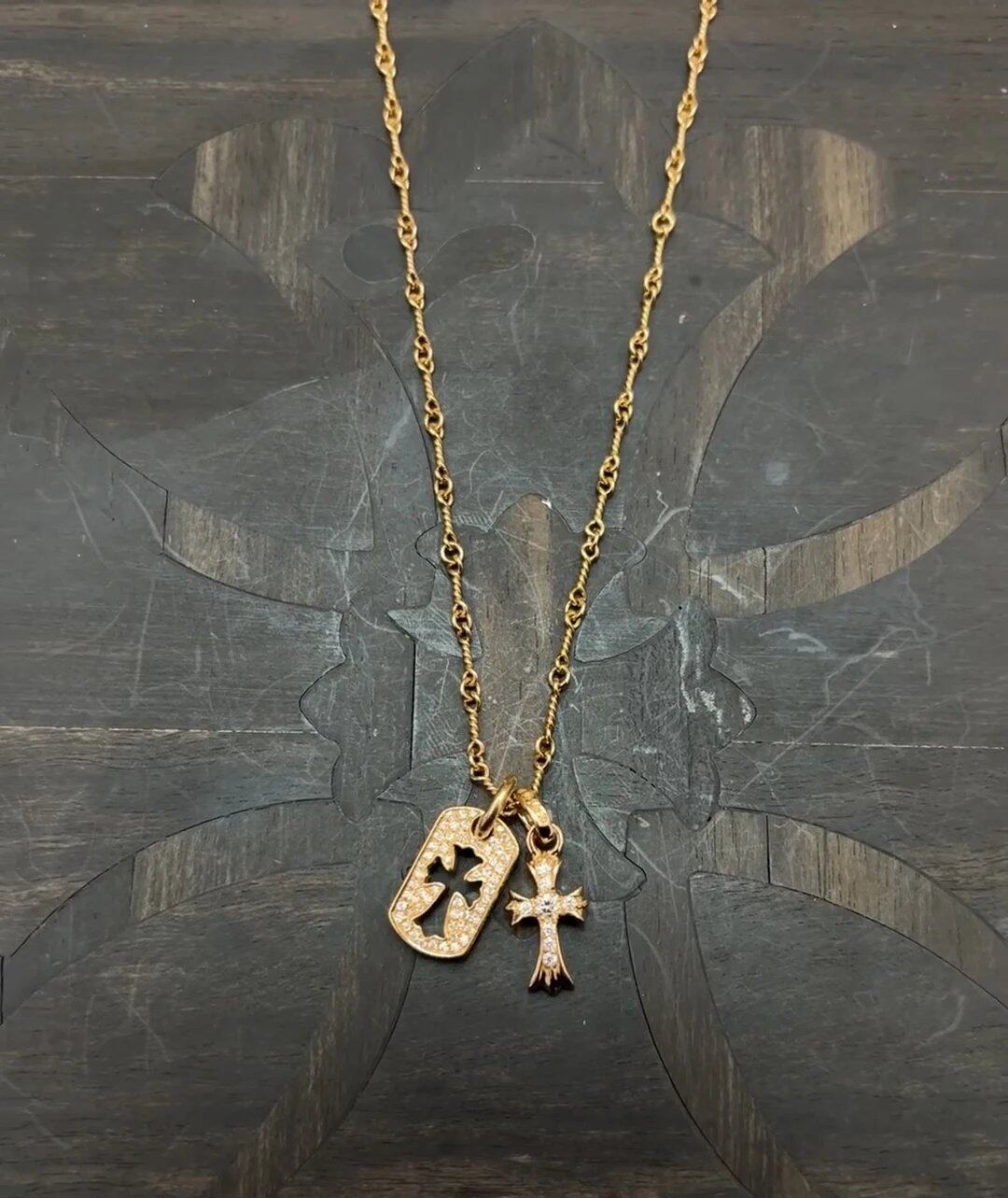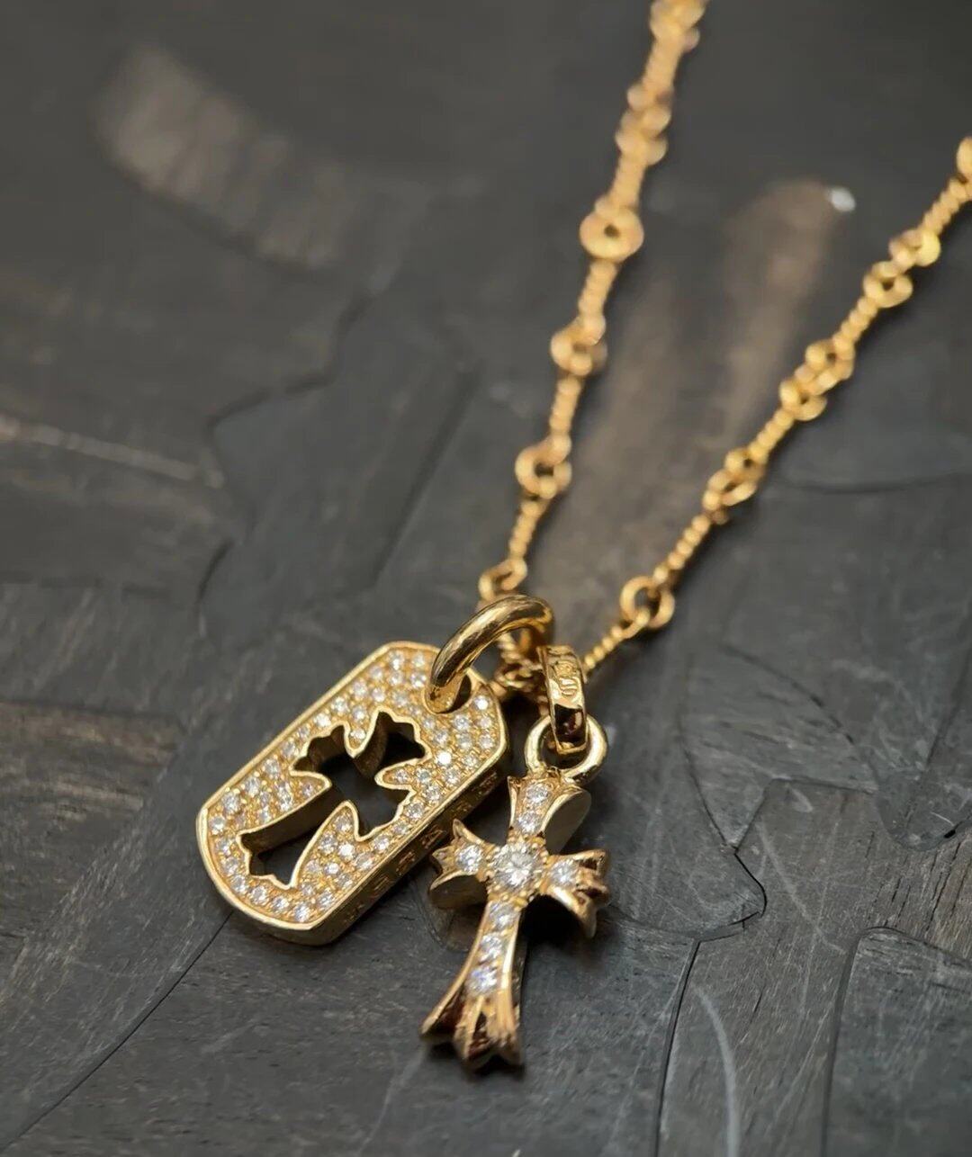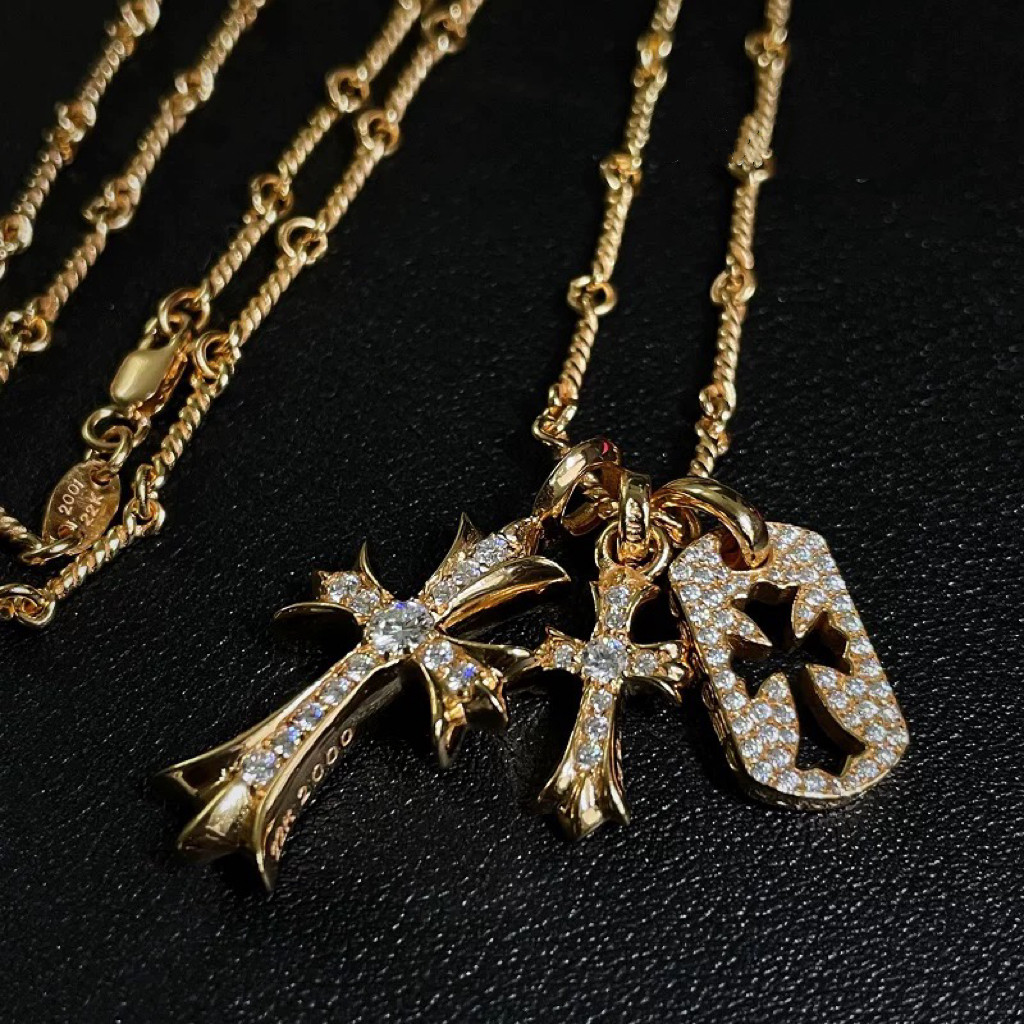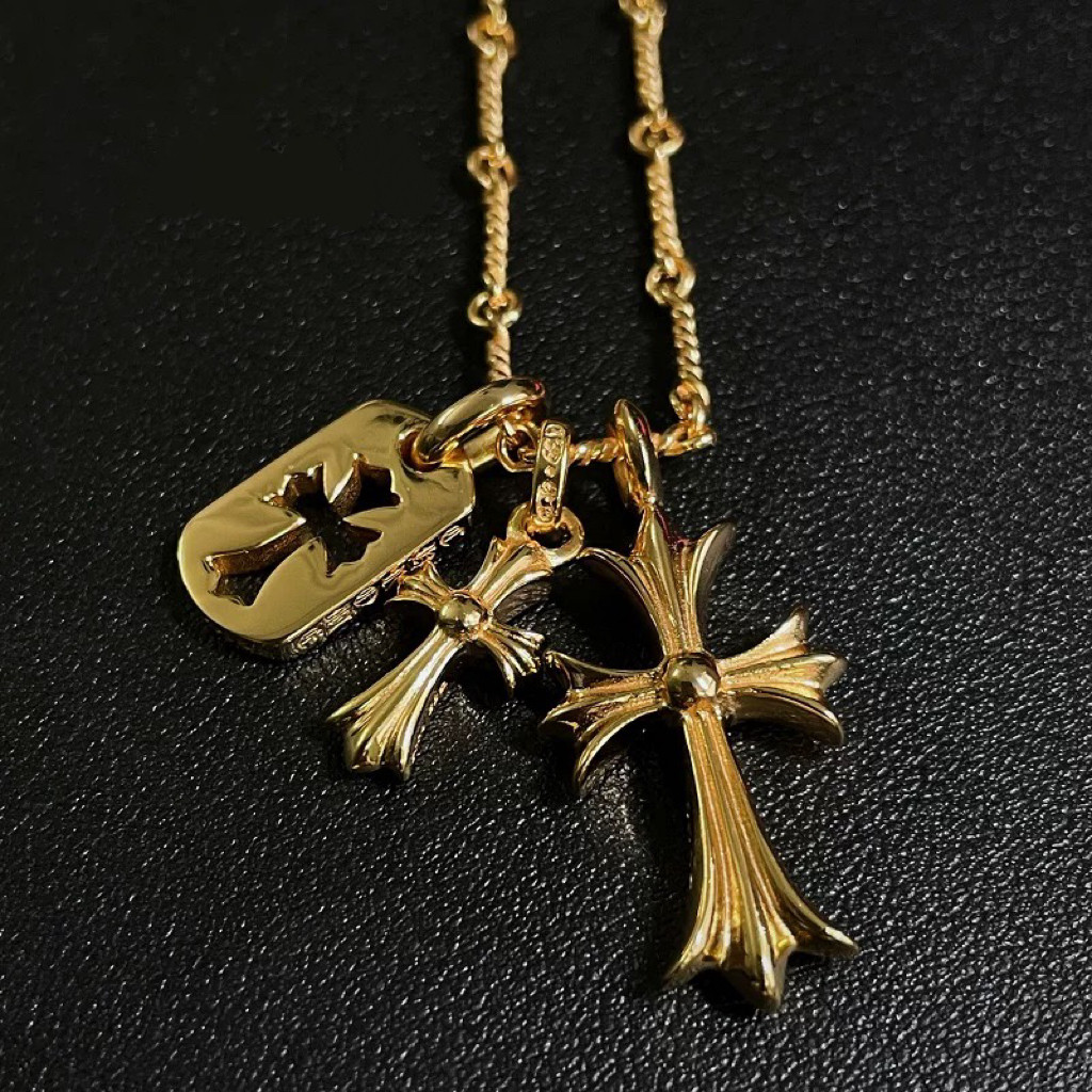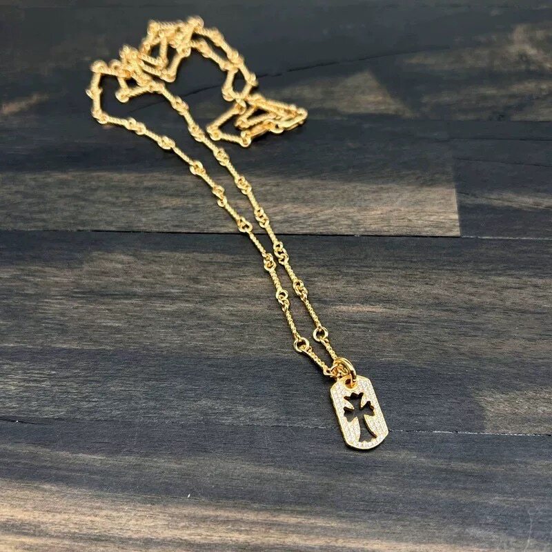 Double Cross Military Brand Necklace 925 Silver Gold-Plated Diamond Trendyy Stylish Punk Versatile Sweater Chain for Men and Women
