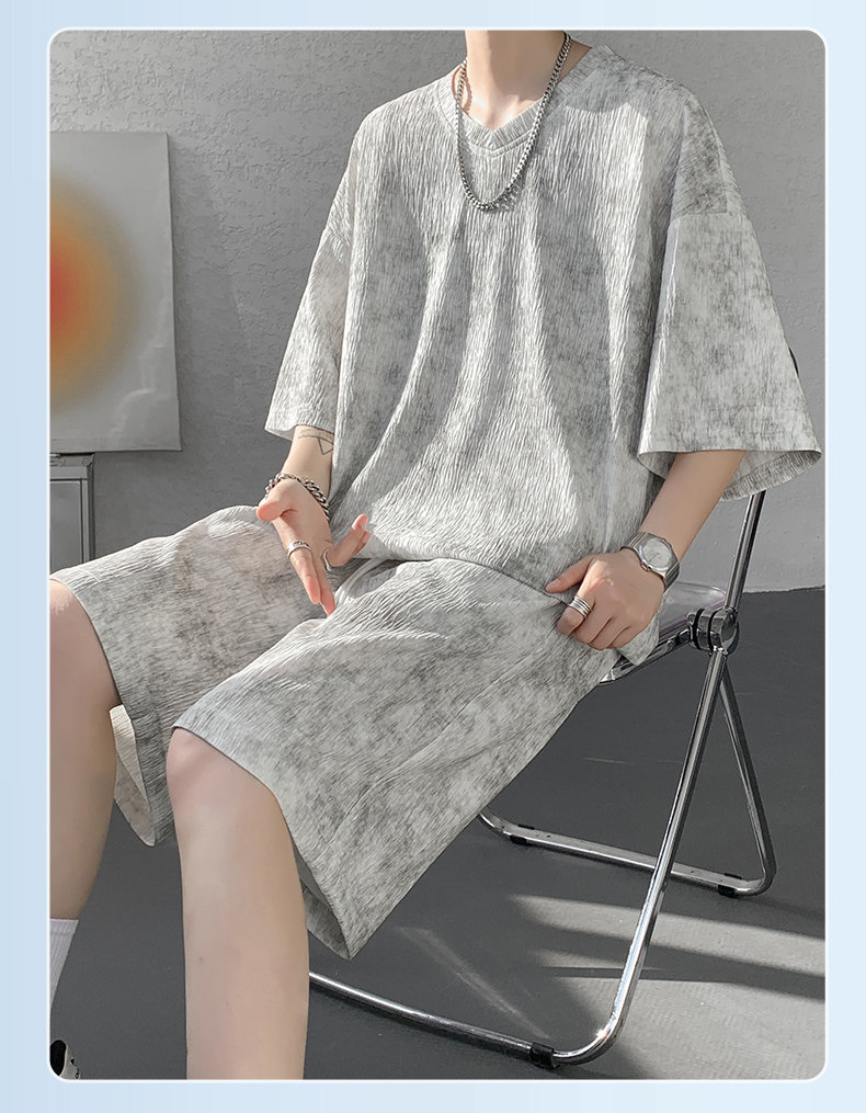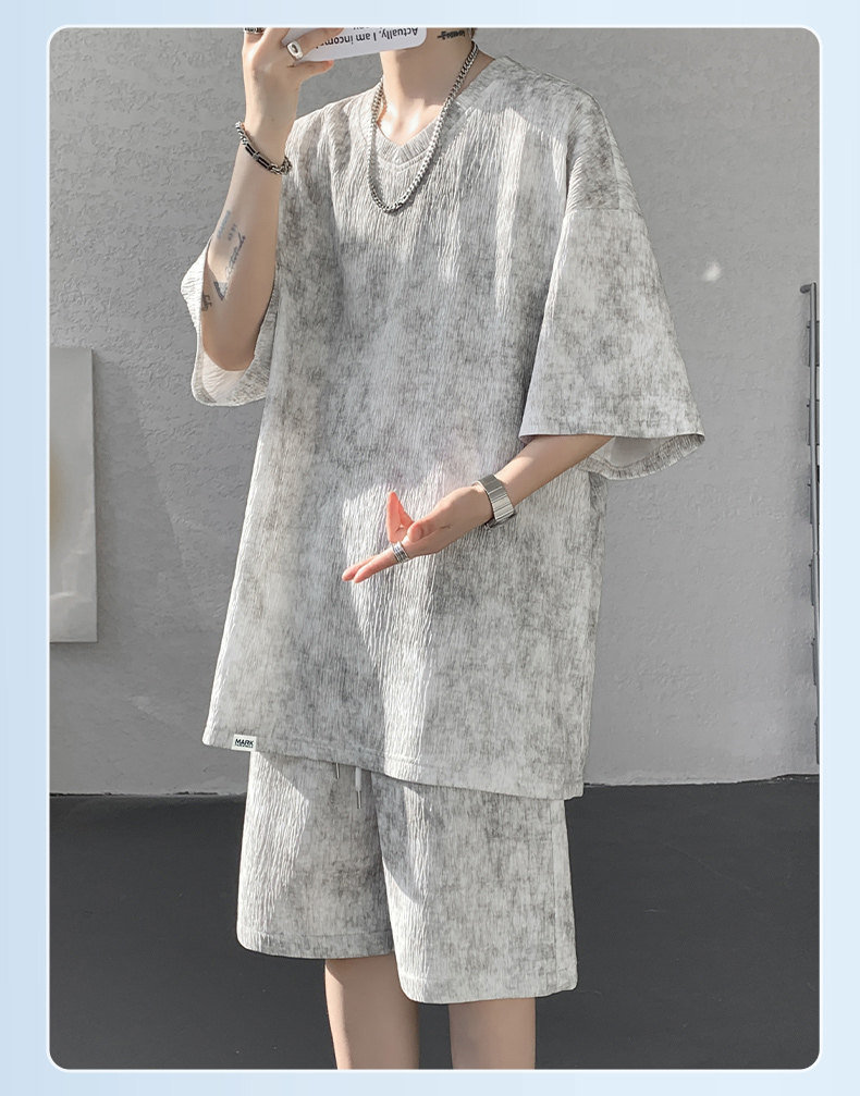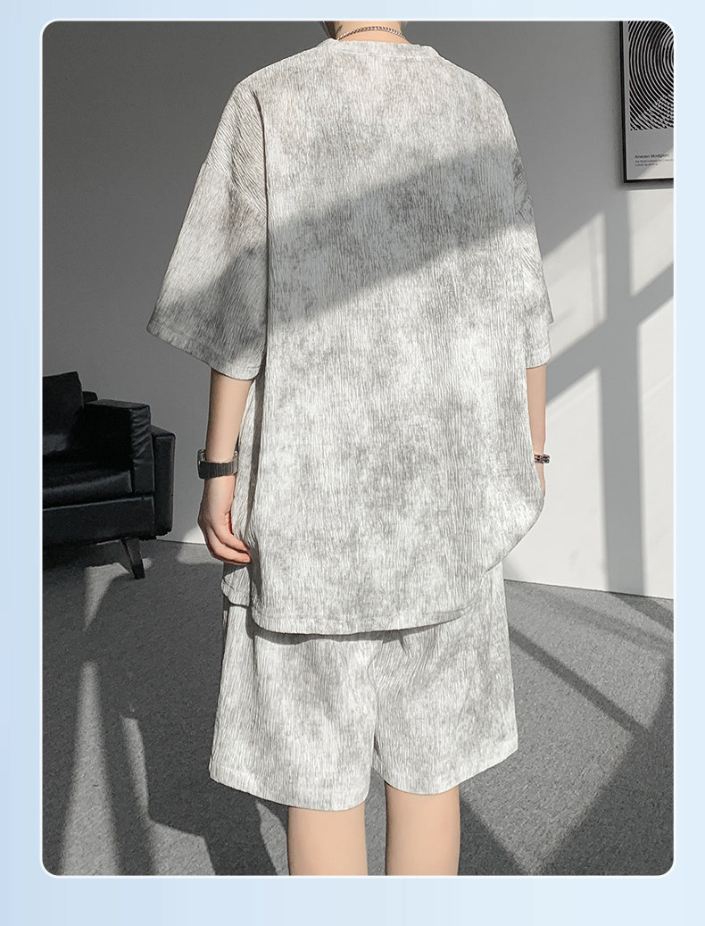 Mark Hua Fei Tie-Dye Ice Silk Casual Suit for Men, New Summer Trendy Loose Sports Short-Sleeve Shorts Two-Piece Set