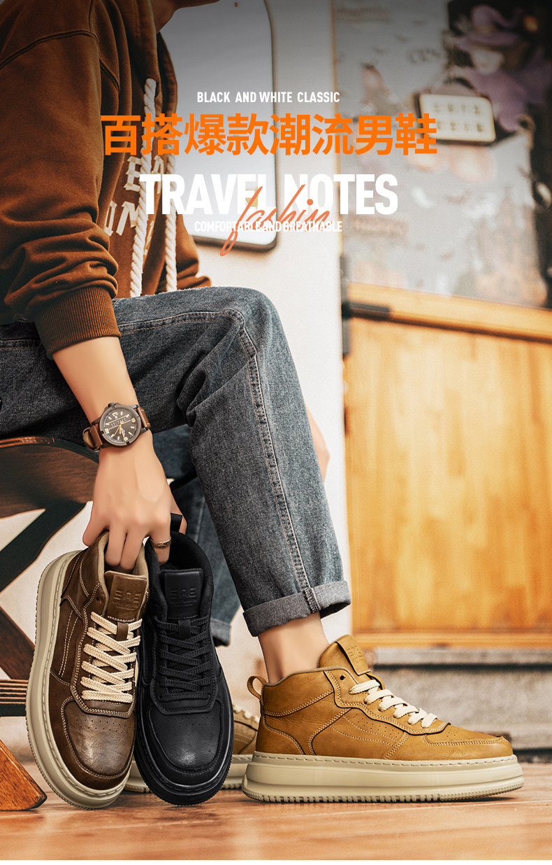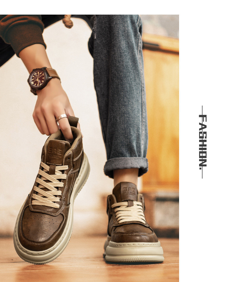 Louispro High-Top Men's Shoes 2026 Spring Season British Retro Thick-Soled Soft Casual Versatile Trendy Sneakers Martin Boots