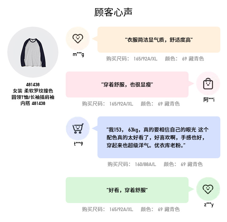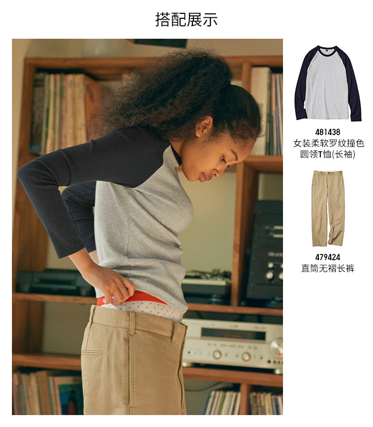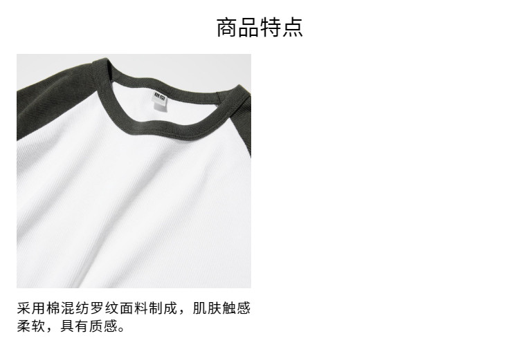 Uniqlo Women's Soft Ribbed Color-Blocked Round Neck T-Shirt/Long Sleeve Raglan Sleeve Inner Layer 25 Autumn and Winter New Style 481438