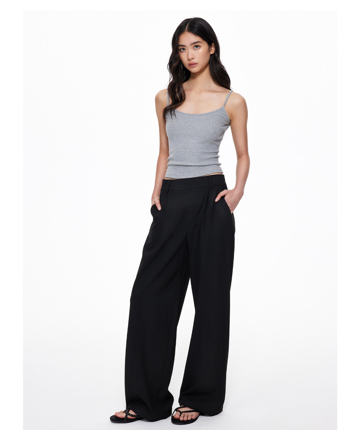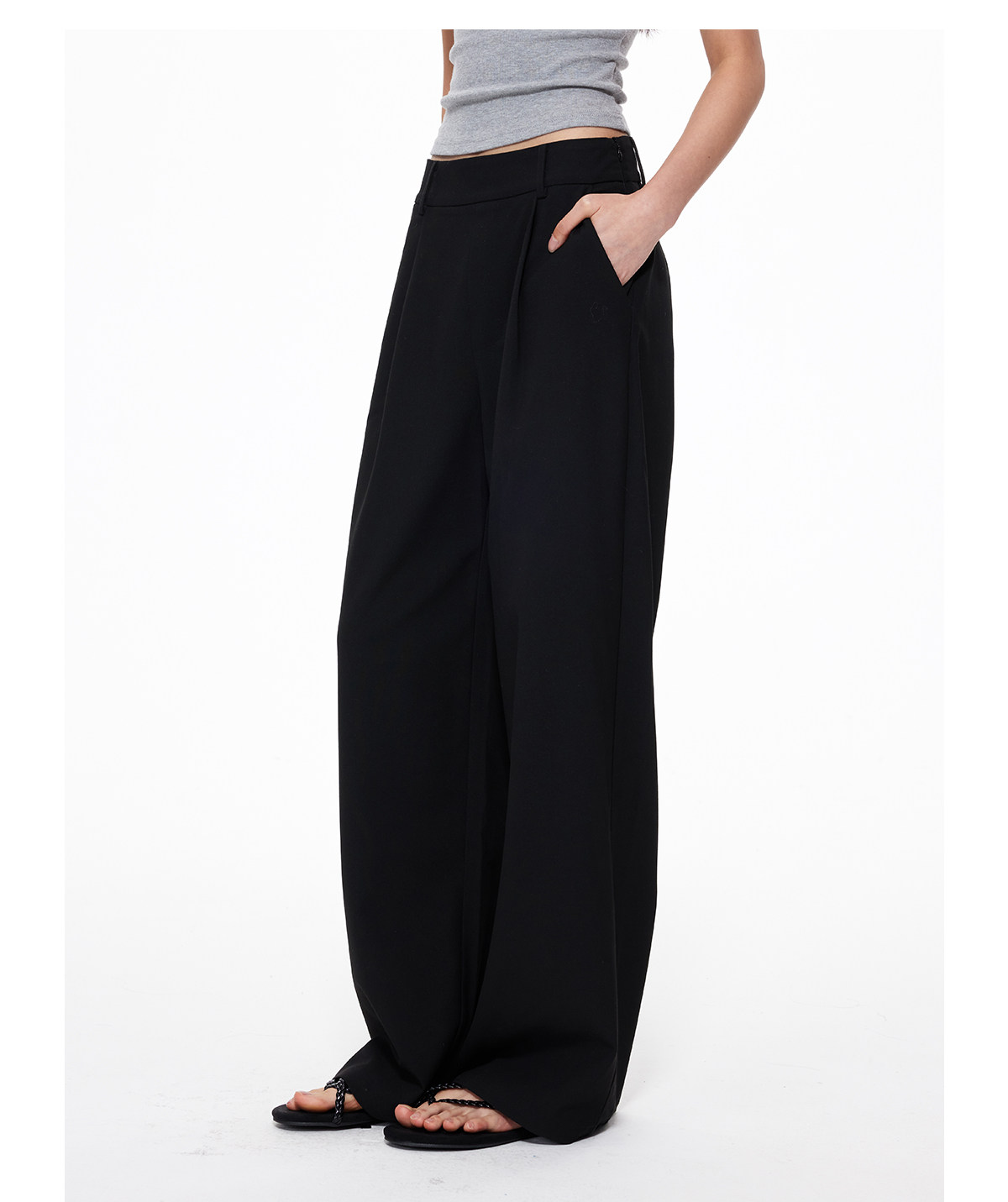 Understress Drapey Suit Pants, Wide-Leg Relaxed Straight-Cut Slimming High-Waisted Trendy Casual Pants