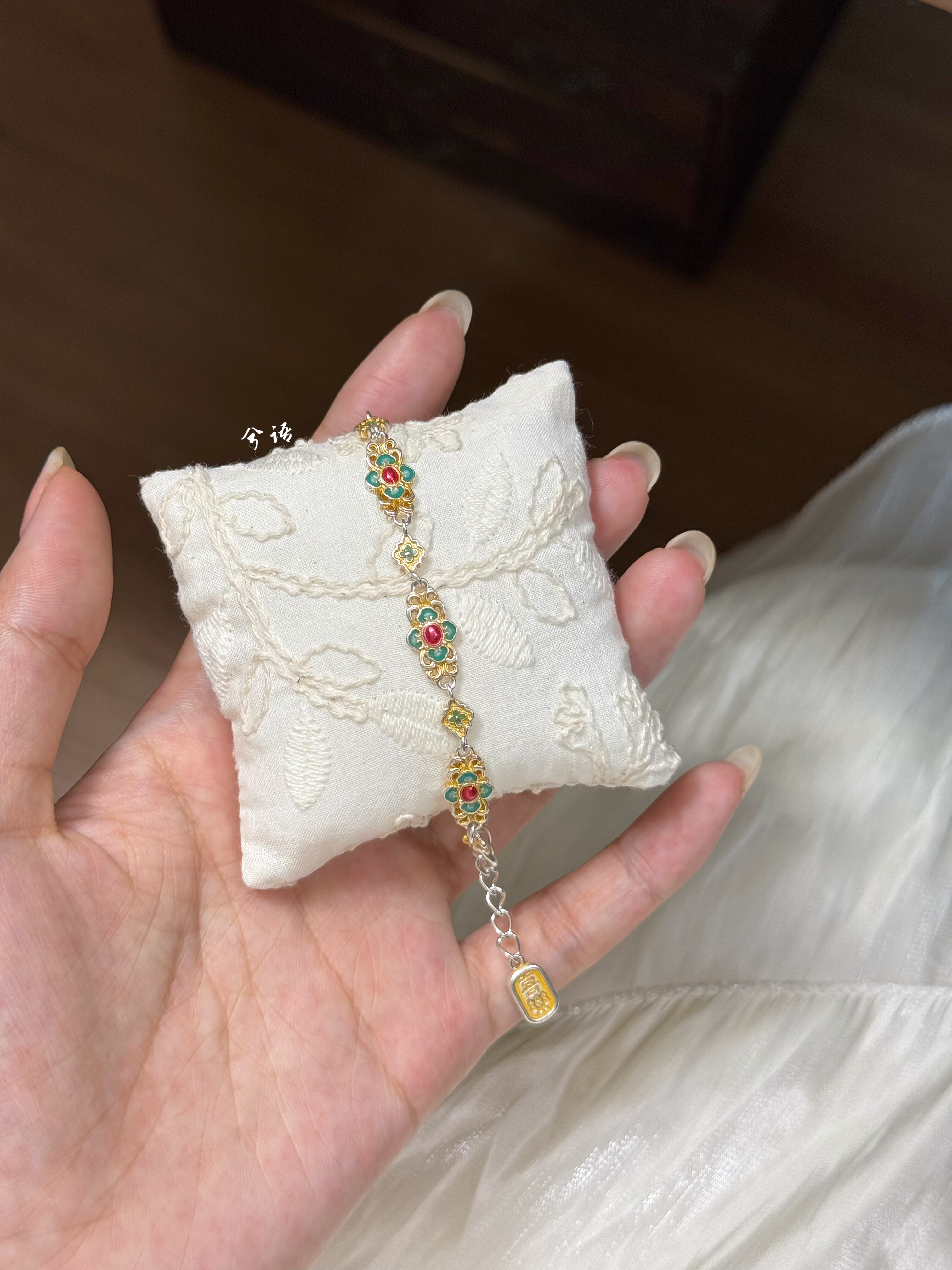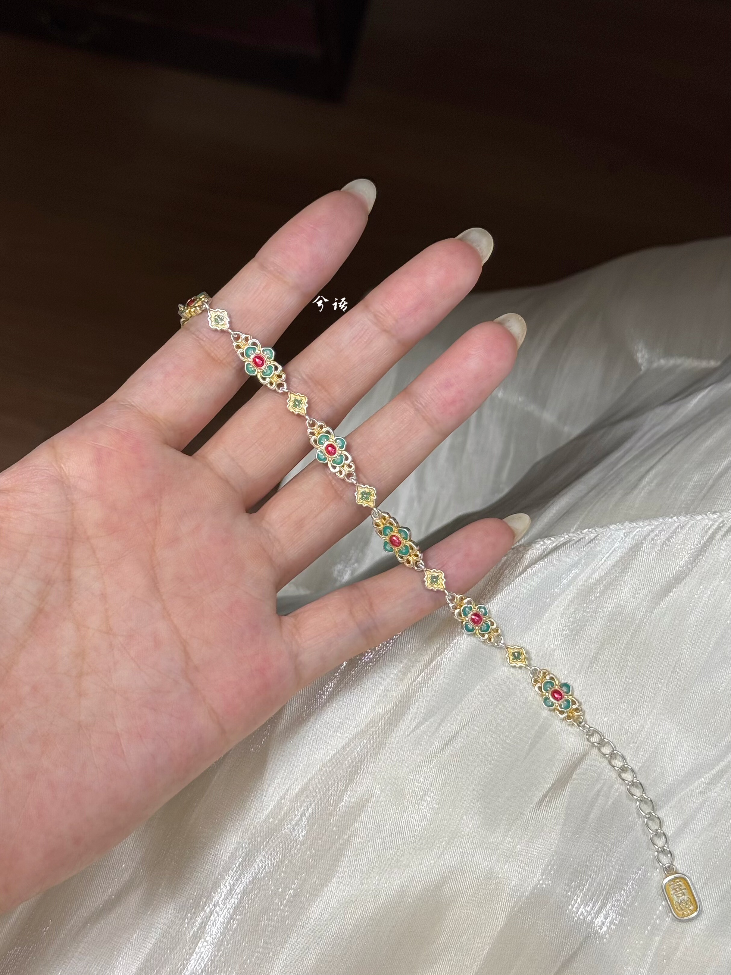 Xiyu'Xici' 999.9 Pure Silver Gold-Plated Enamel Bracelet for Women, Pure Silver, New Chinese Style, National Style Gift