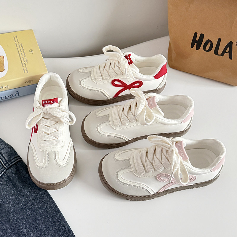Niche Design Sweet Korean-Style White Sneakers for Women 2025 Autumn and Summer New Versatile Lightweight Student Popular German Training Sneakers