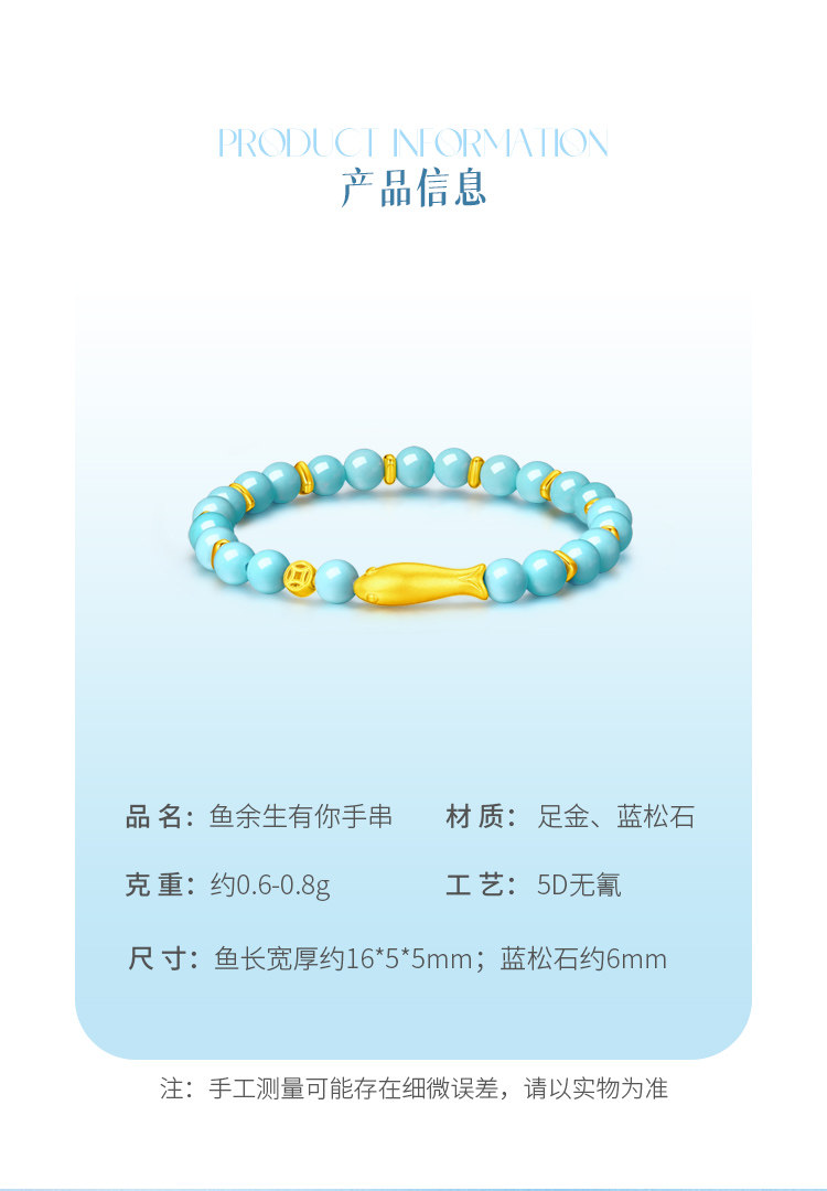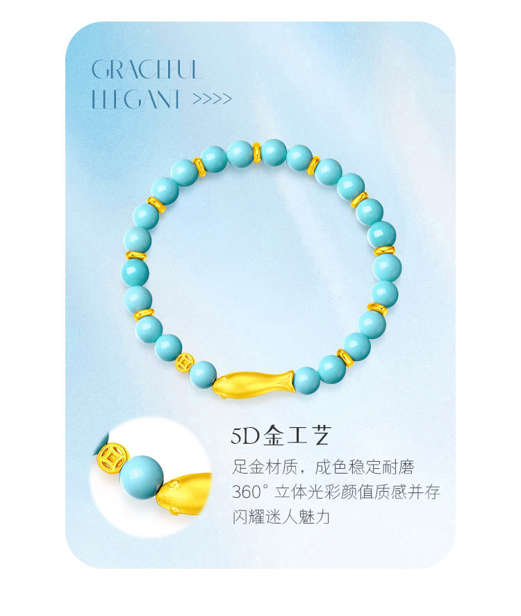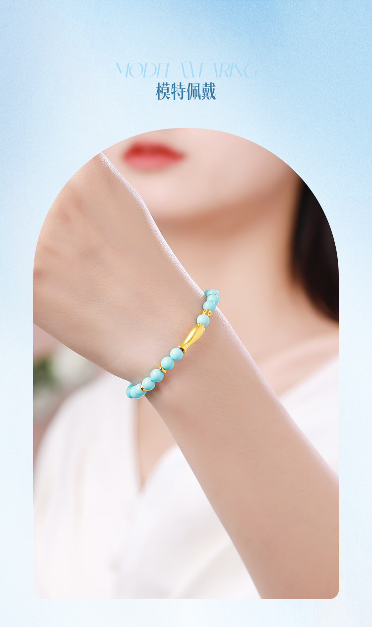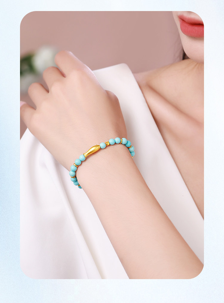 Loving You for Life Gold Bracelet for Women 999 Pure Gold 5D Hard Gold Blue Turquoise Copper Coin Fortune Bead Bracelet