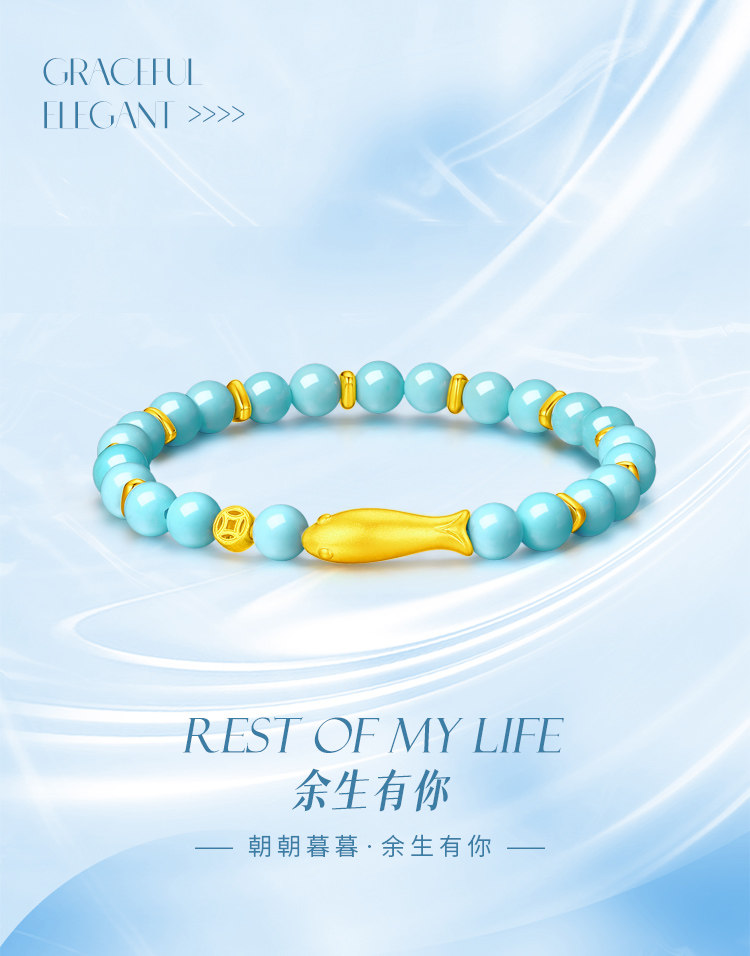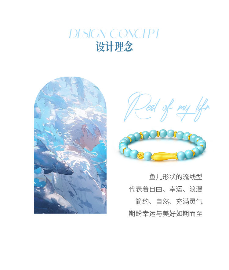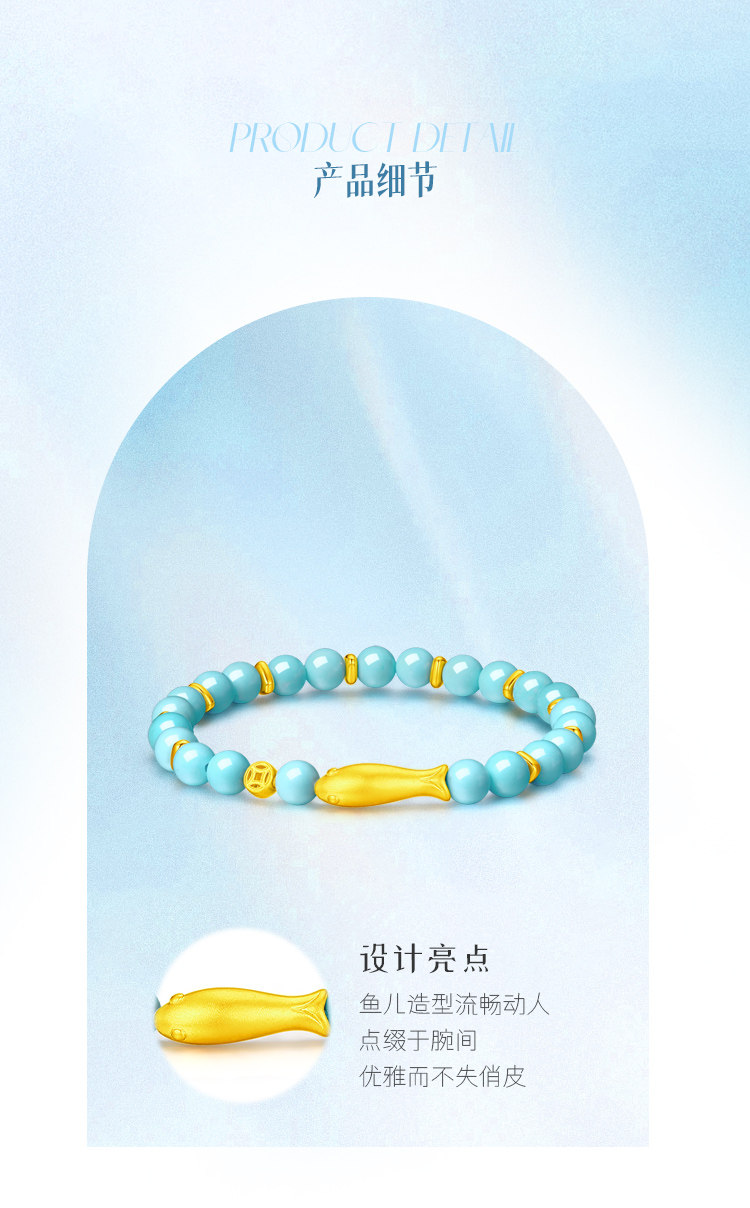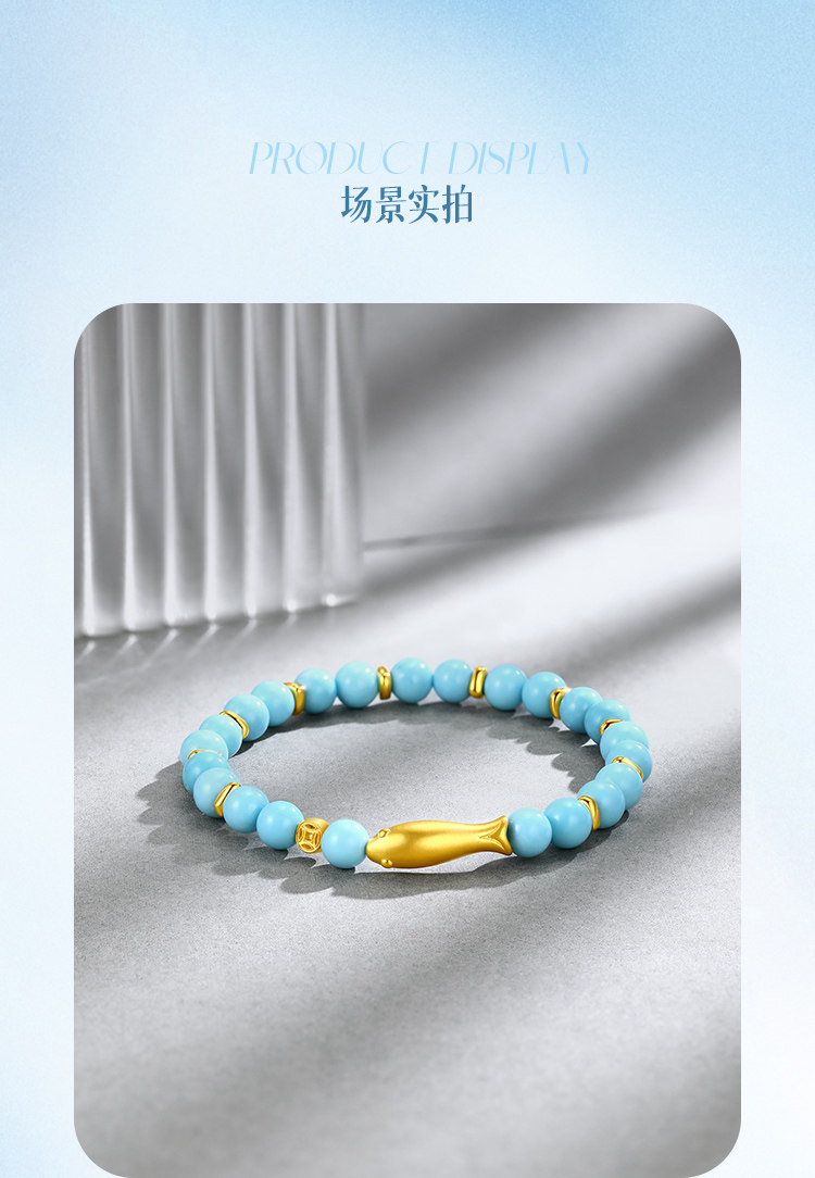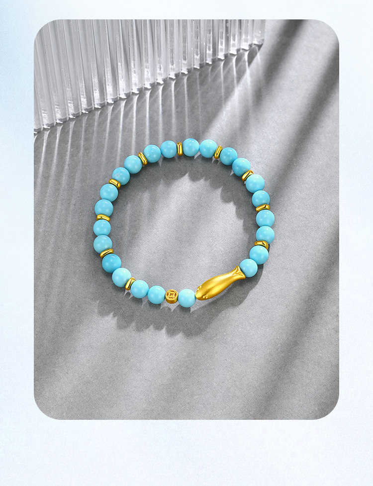 Loving You for Life Gold Bracelet for Women 999 Pure Gold 5D Hard Gold Blue Turquoise Copper Coin Fortune Bead Bracelet