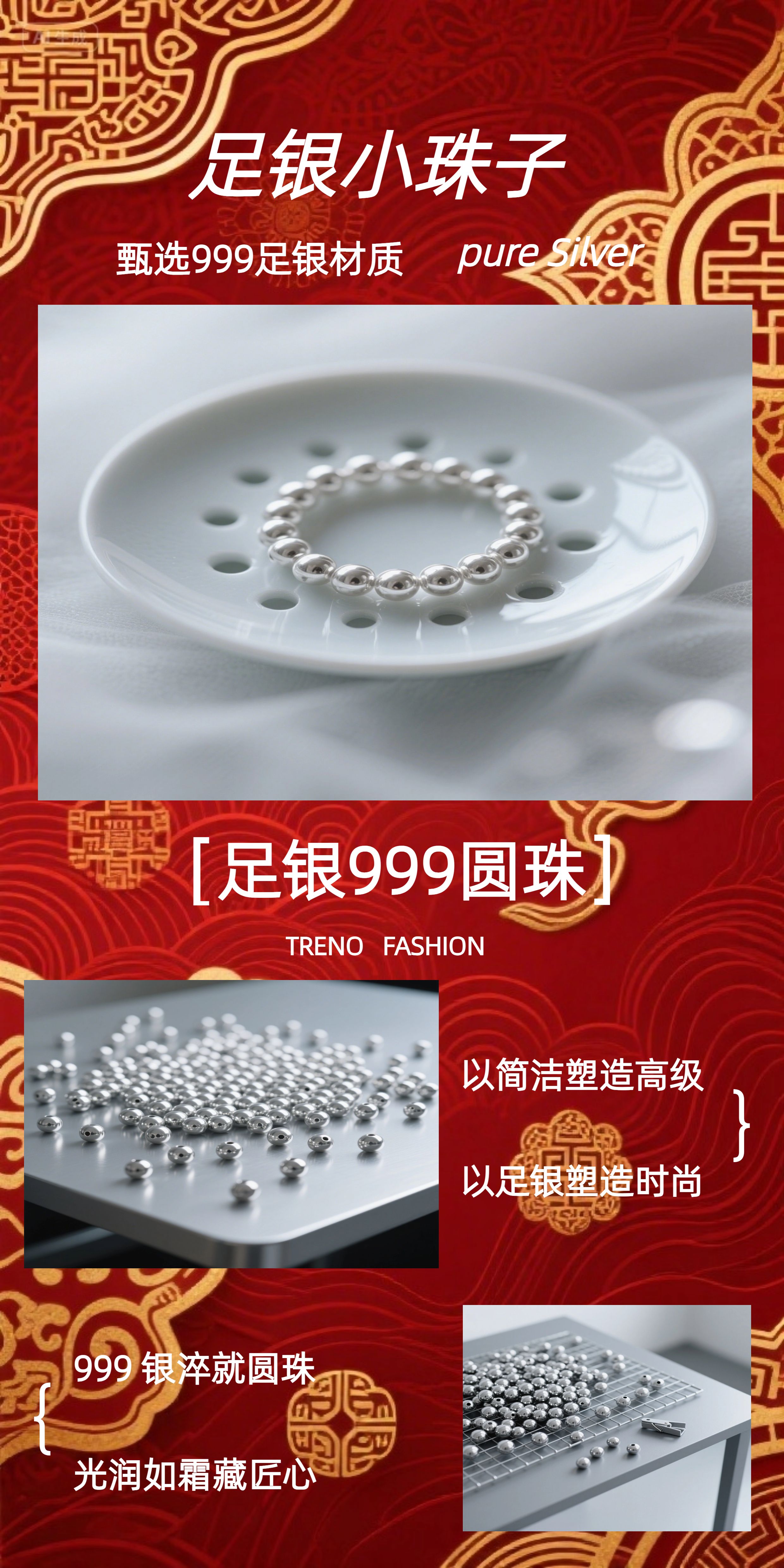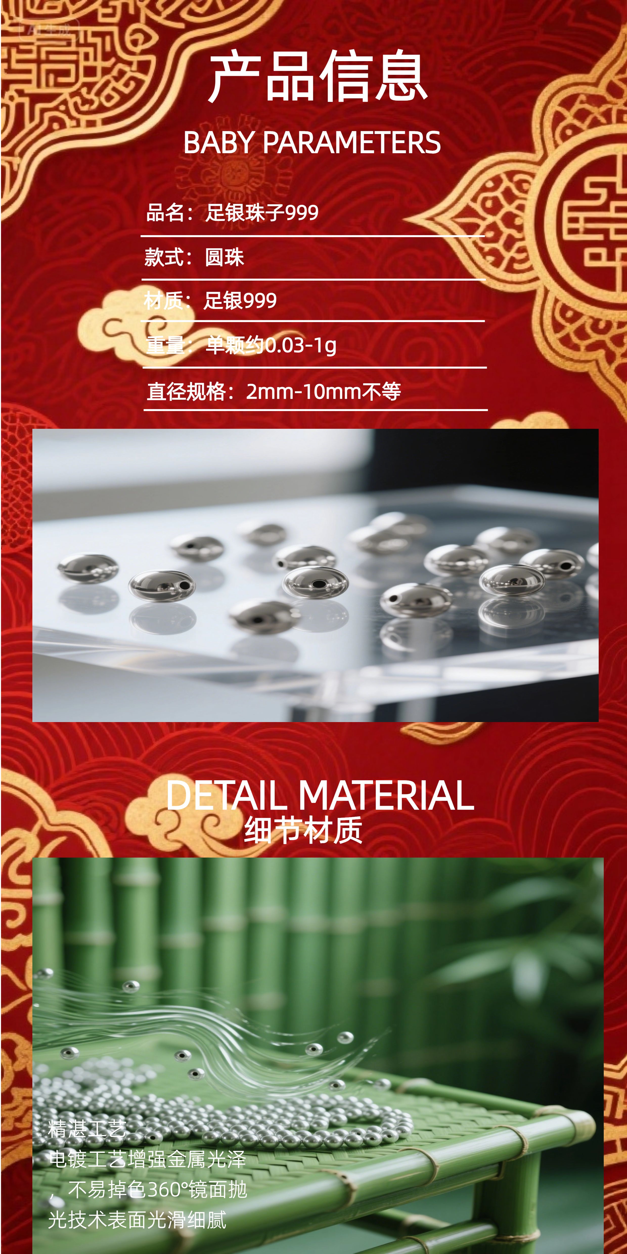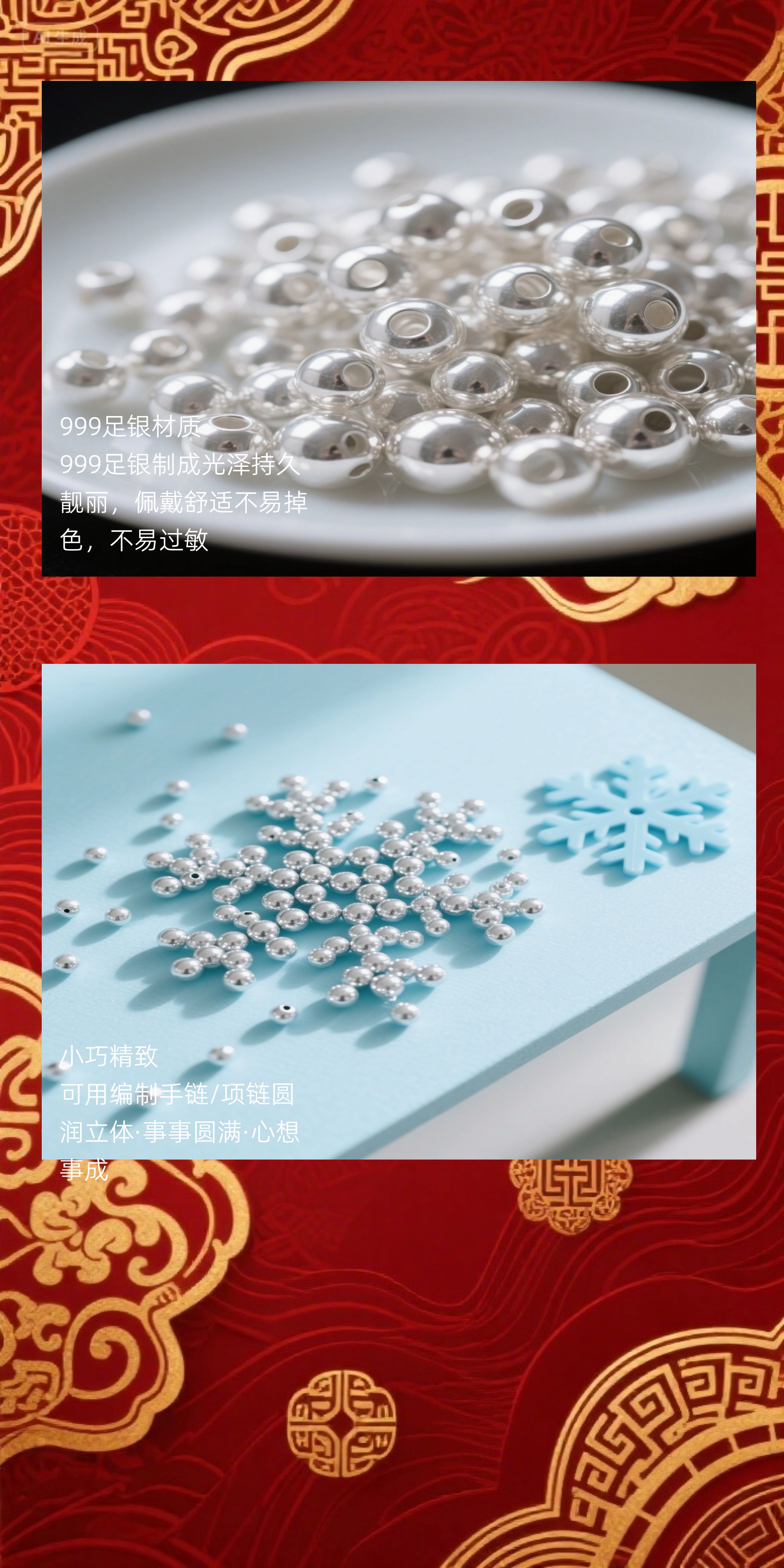 999 Pure Silver Hollow Silver Beads Loose Beads for Bracelets and Necklaces DIY Silver Jewelry Accessories Round Pure Silver Beads Round Beads