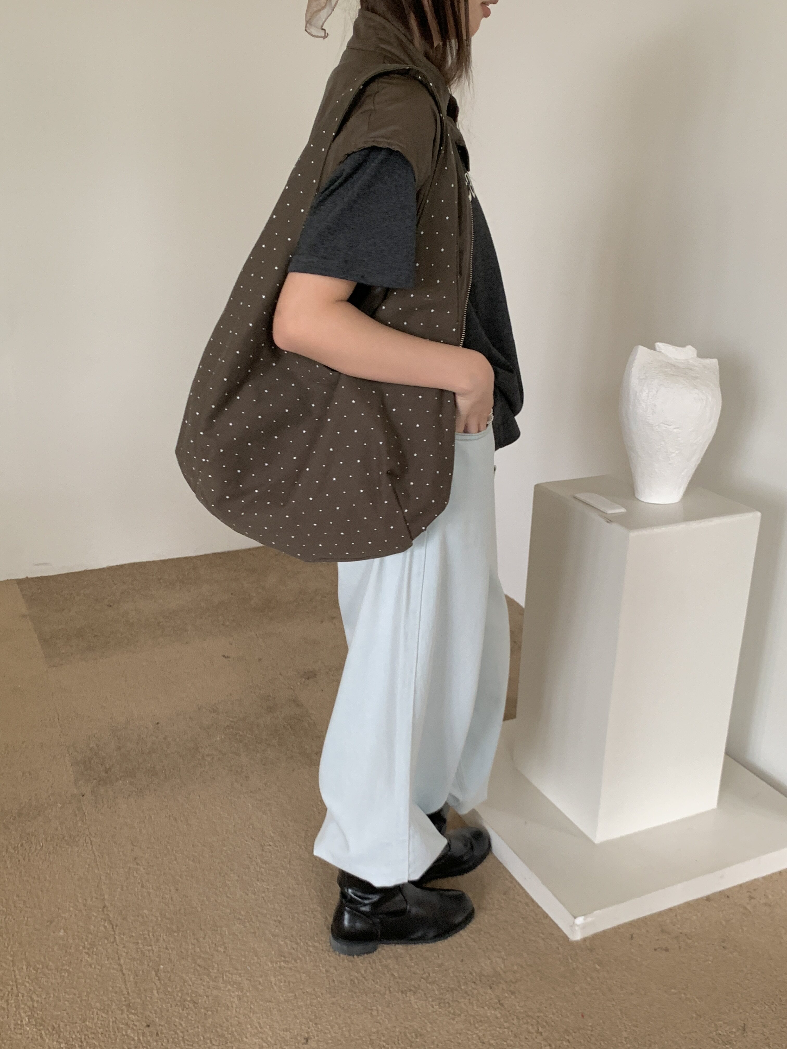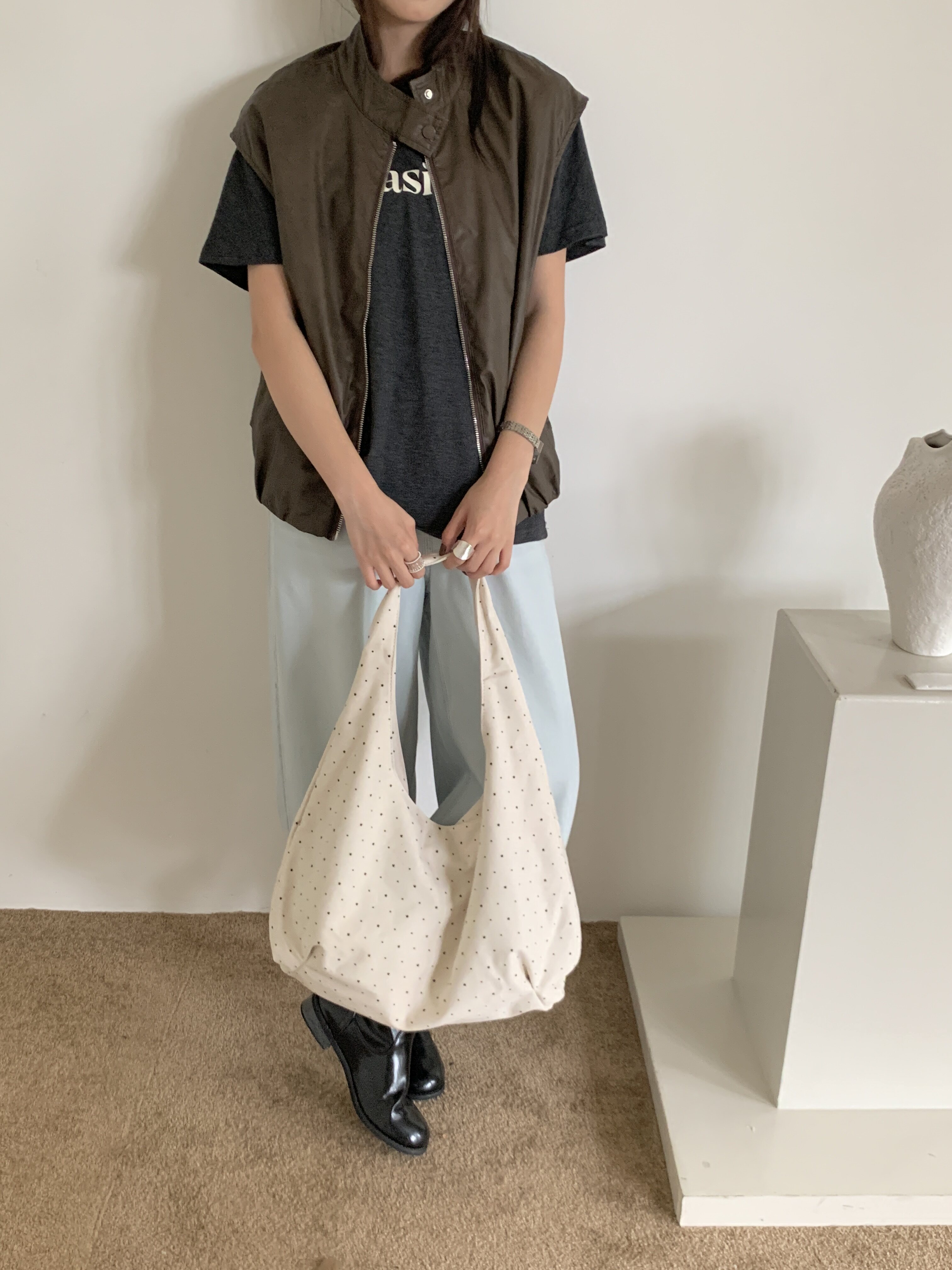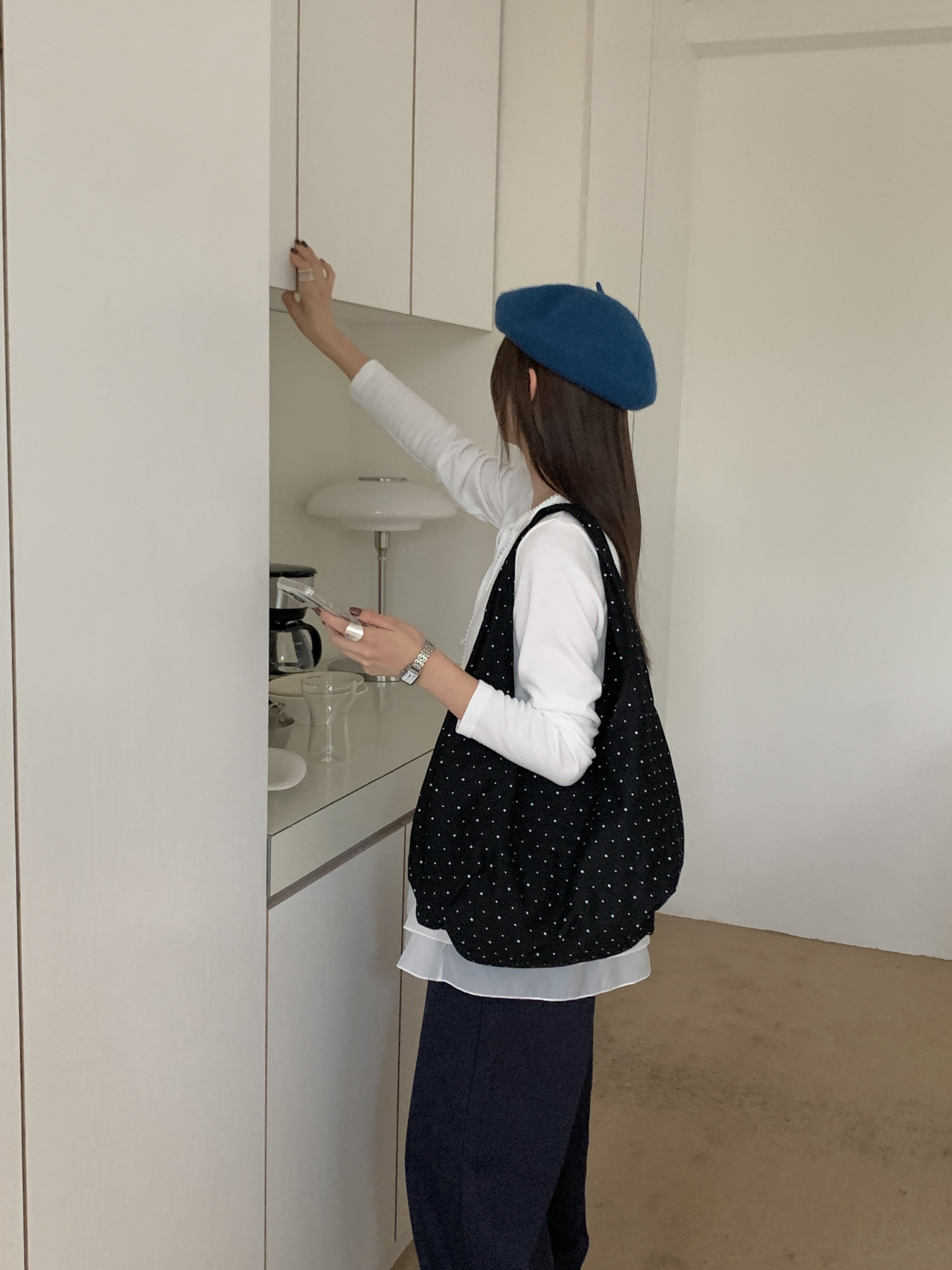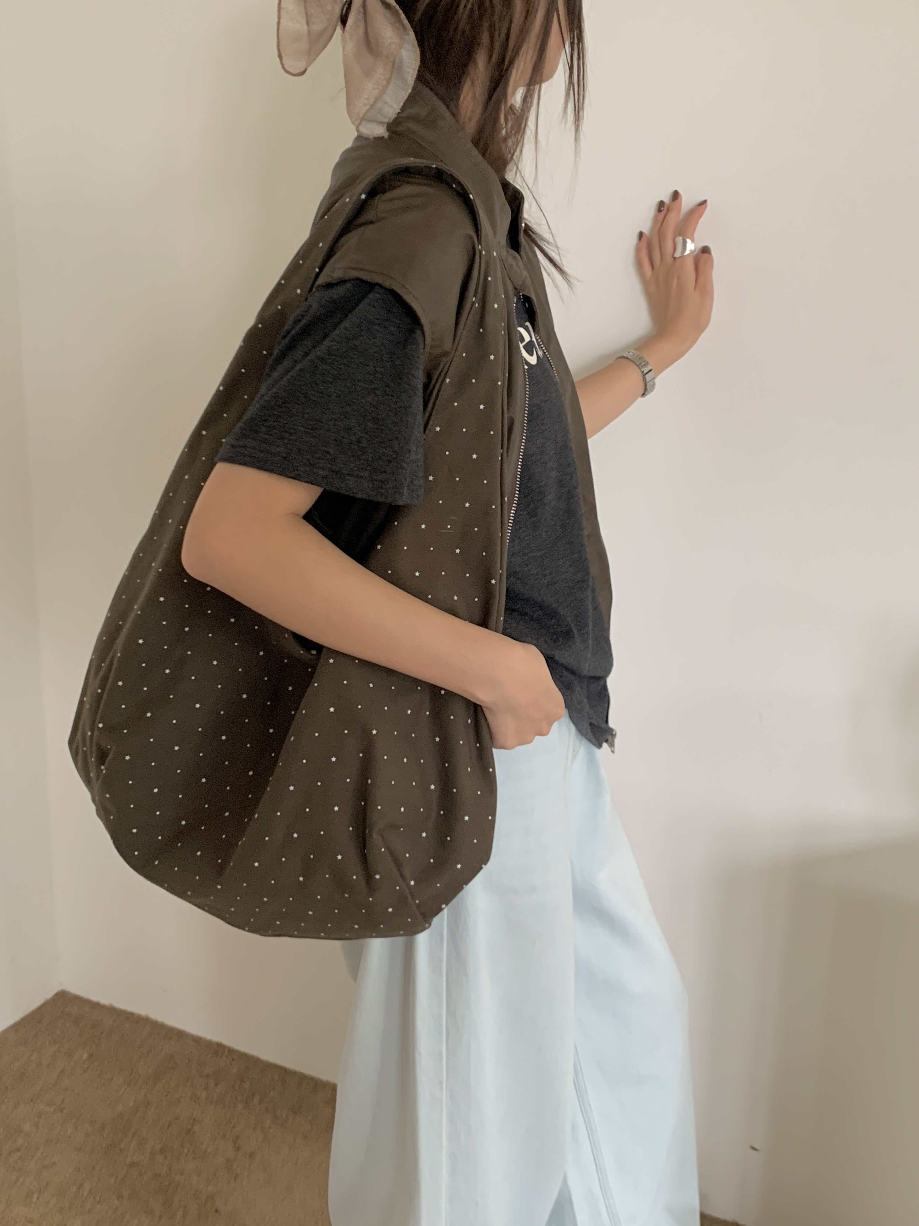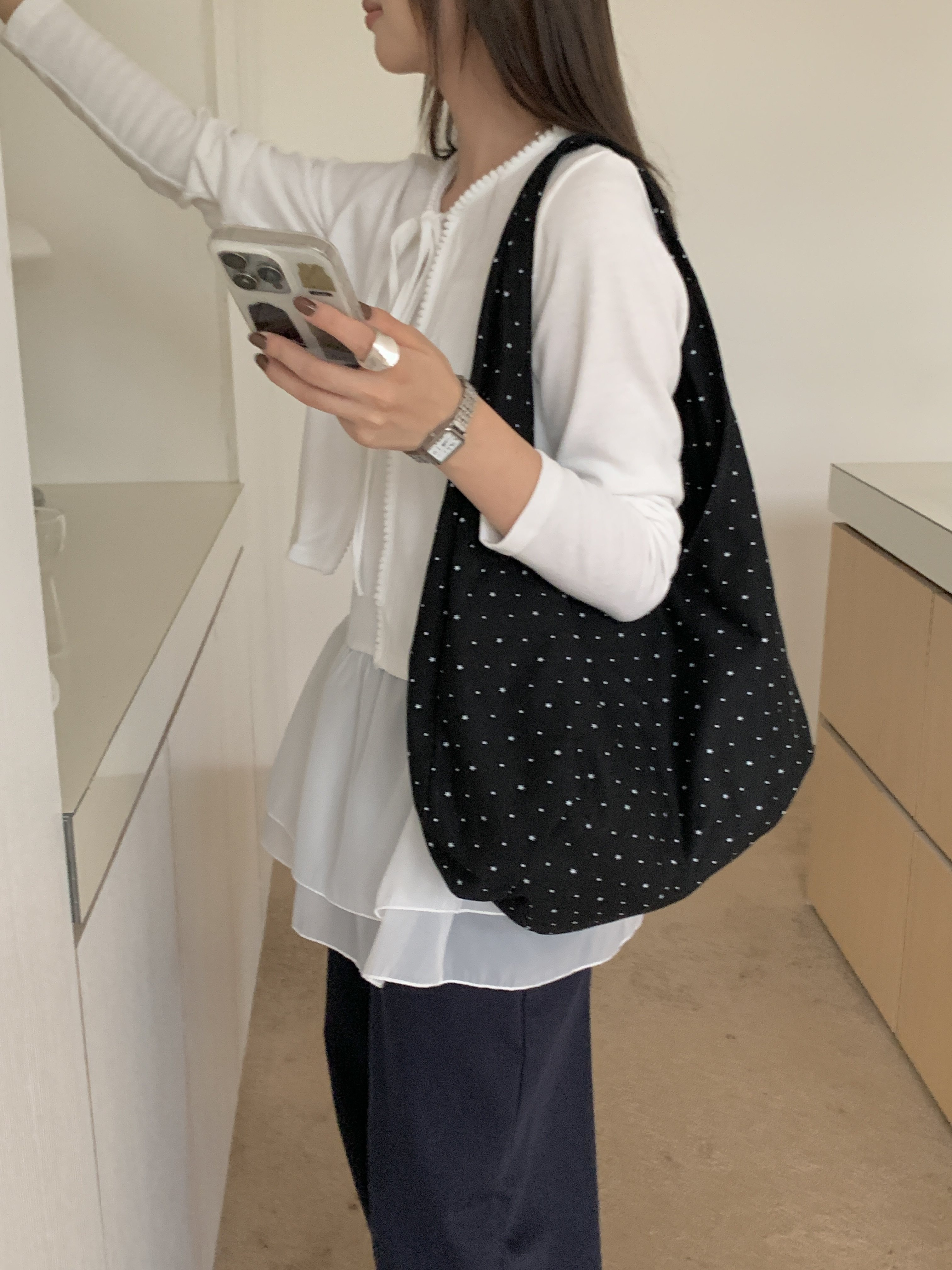 Tt Home Korean Niche Simple Polka Dot Shoulder Bag for Women 2025 Casual Fabric Bag Versatile Daily Commute Underarm Bag