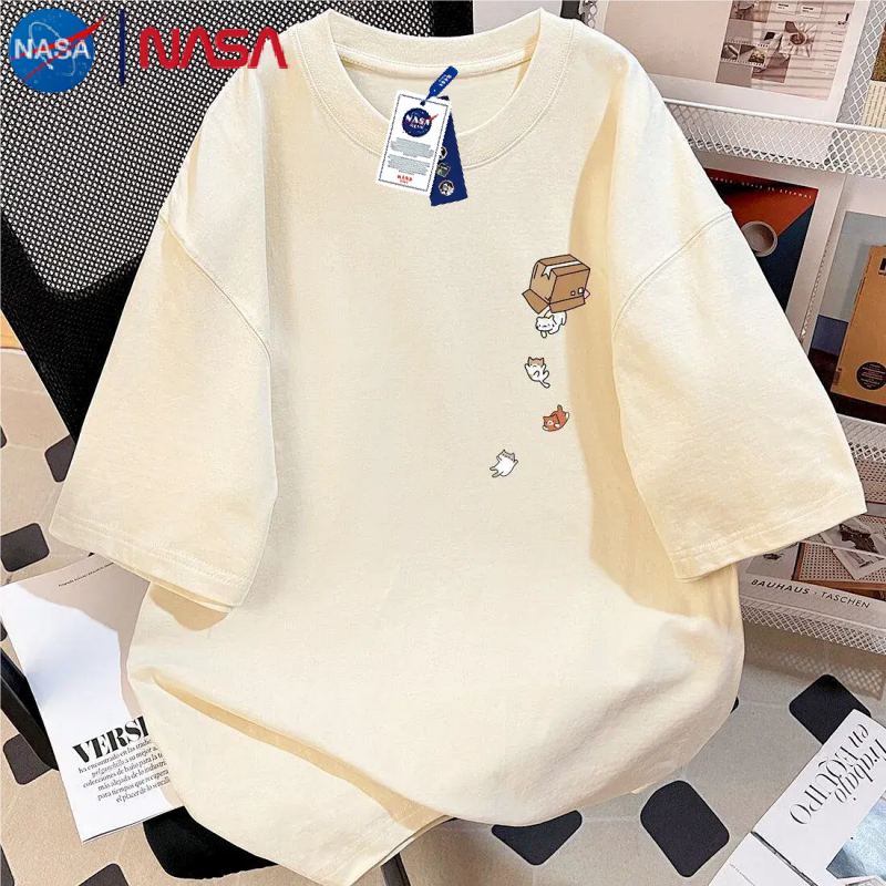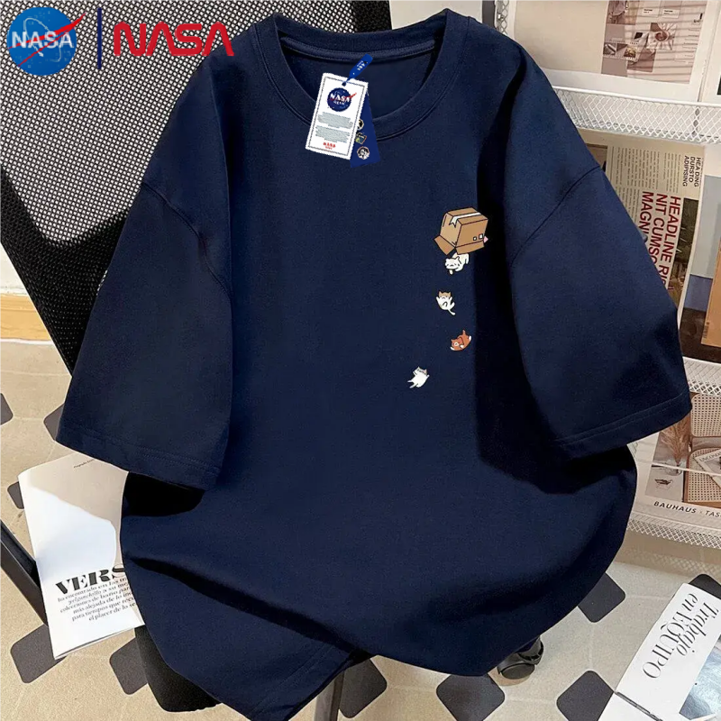 Nasa Collaboration Heavy-Weight Pure Cotton Korean Design Cat-Themed Short-Sleeve T-Shirt Unisex Versatile ins Summer Top
