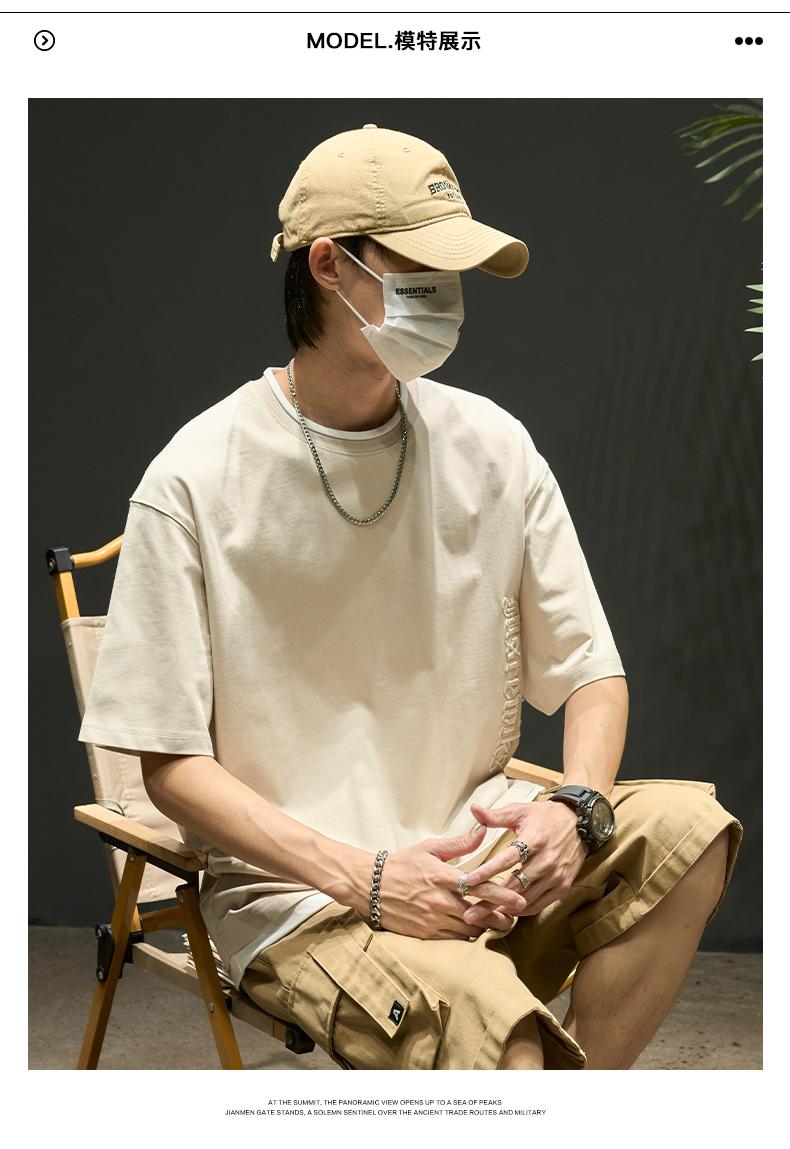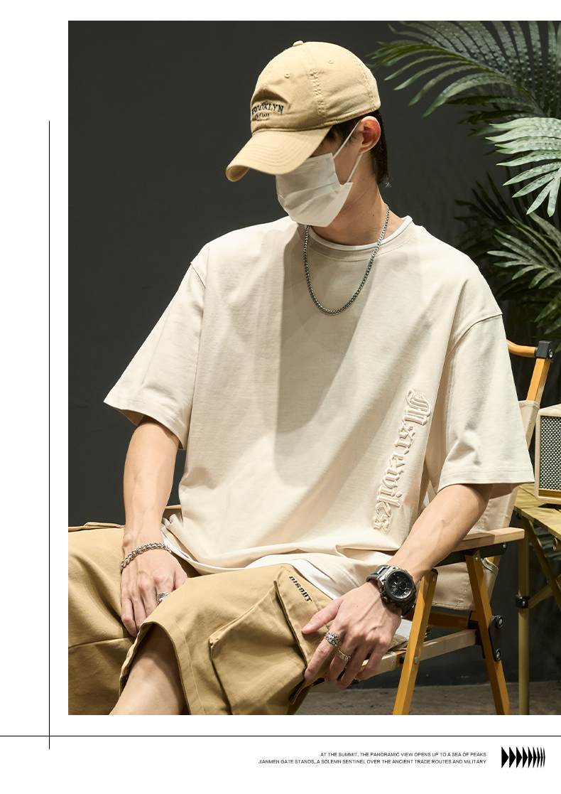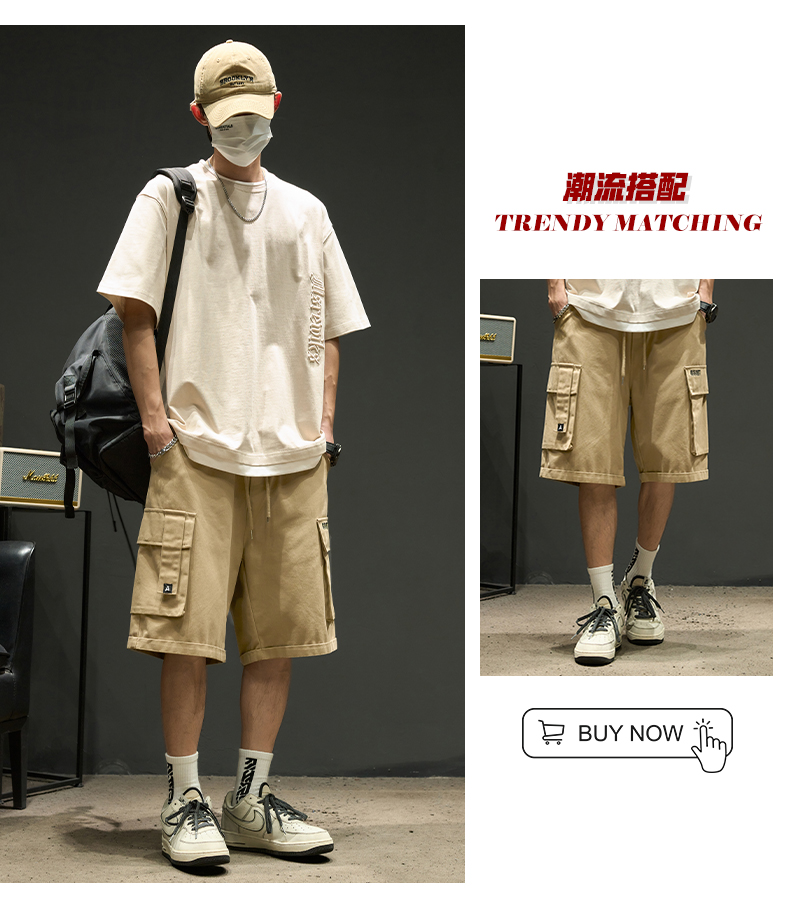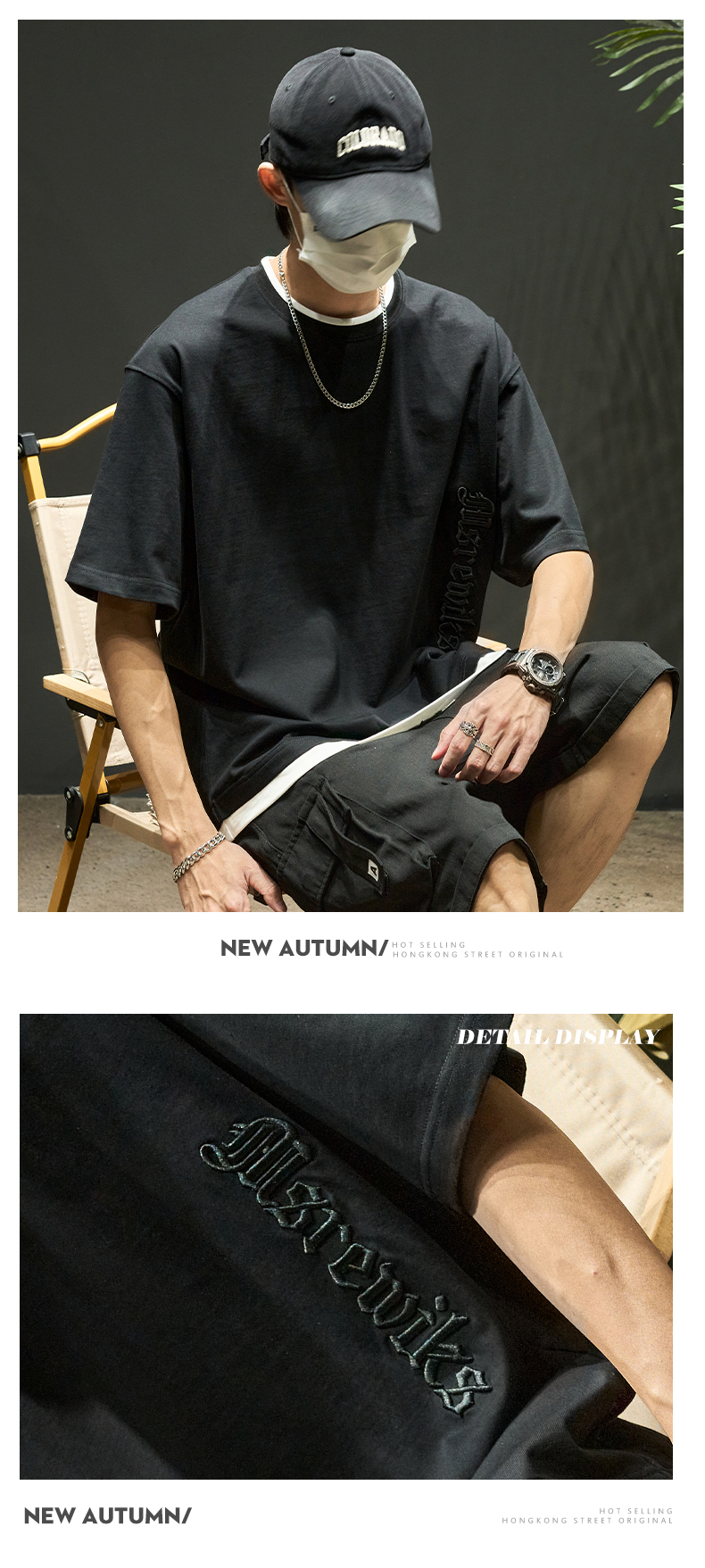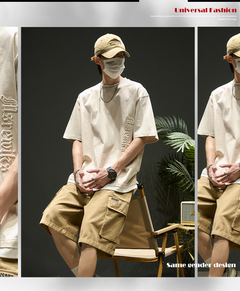 Men's Summer Japanese Style Trendy Brand Pure Cotton Versatile Set 2025 New Embroidered Short-Sleeve American Workwear Shorts