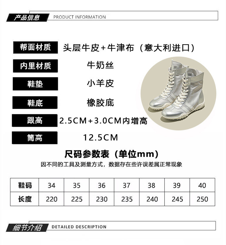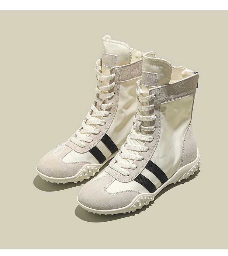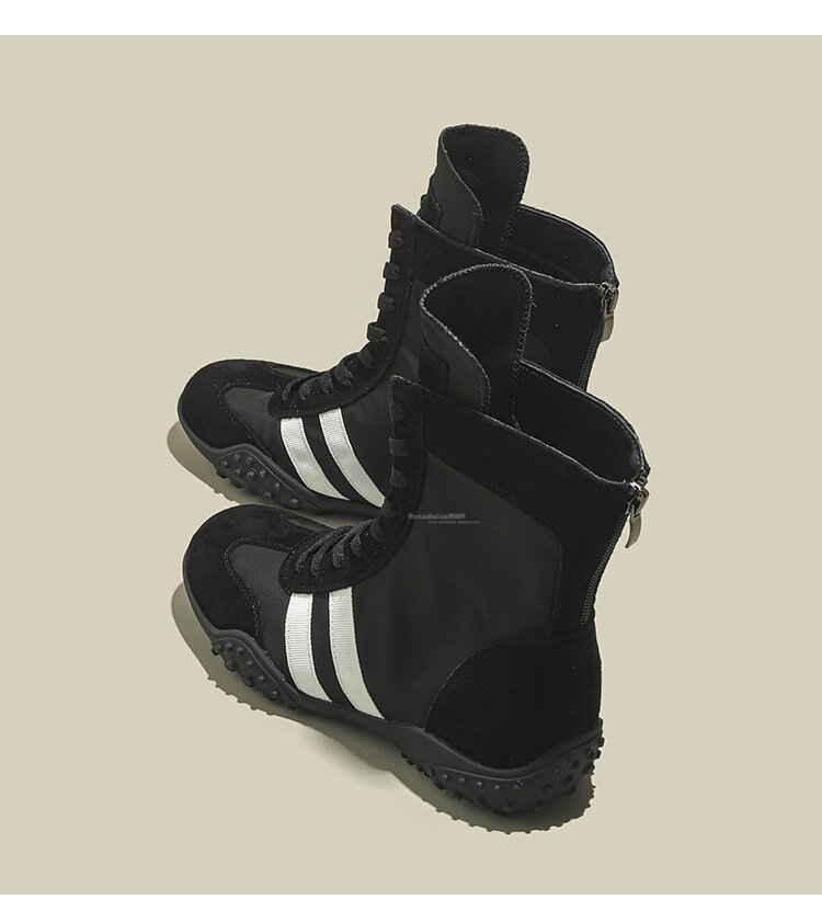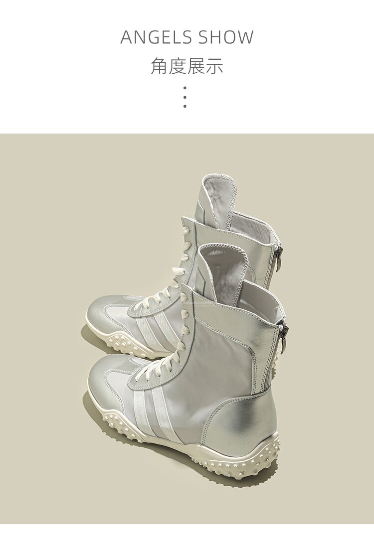 Hong Kong Retro Genuine Leather High-Top German Training Shoes for Women, 2025 Autumn New Style, Height-Increasing, Comfortable, Versatile Boxing Boots for Petite Individuals