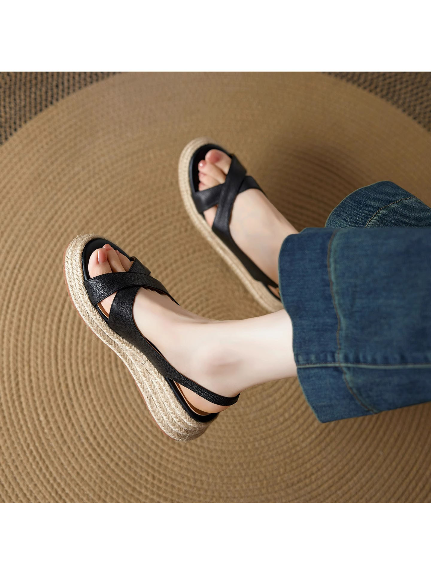 Sheepskin Version ~ French-Style Stunning Wedge Sandals for Women, 2025 Summer New Model, Versatile with Skirts, Thick-Soled Sandals