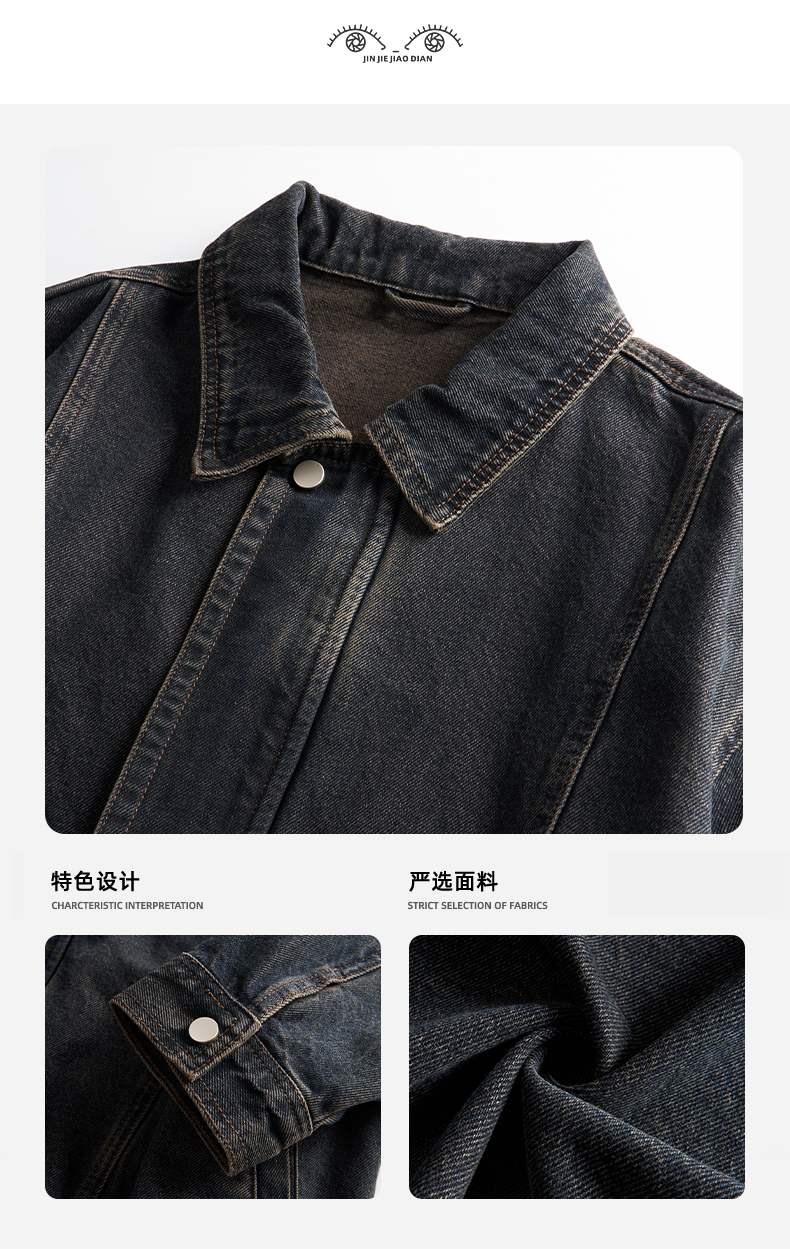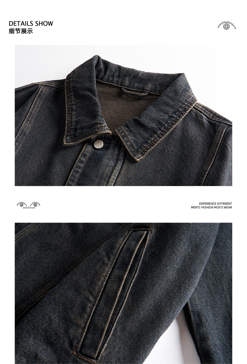 High Street Vintage Distressed Washed Workwear Denim Jacket for Men 2025 Autumn Loose American Biker Jacket