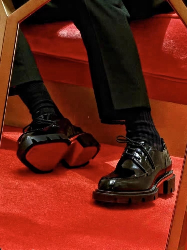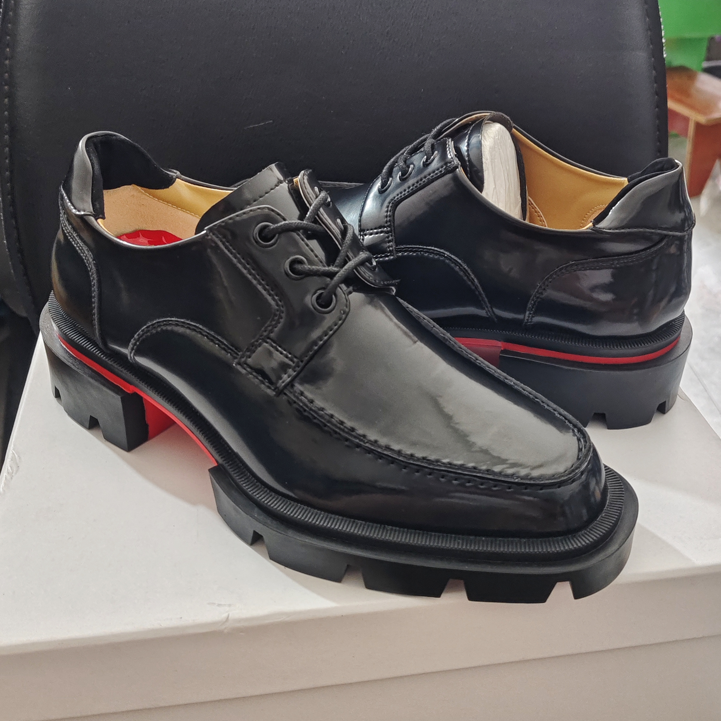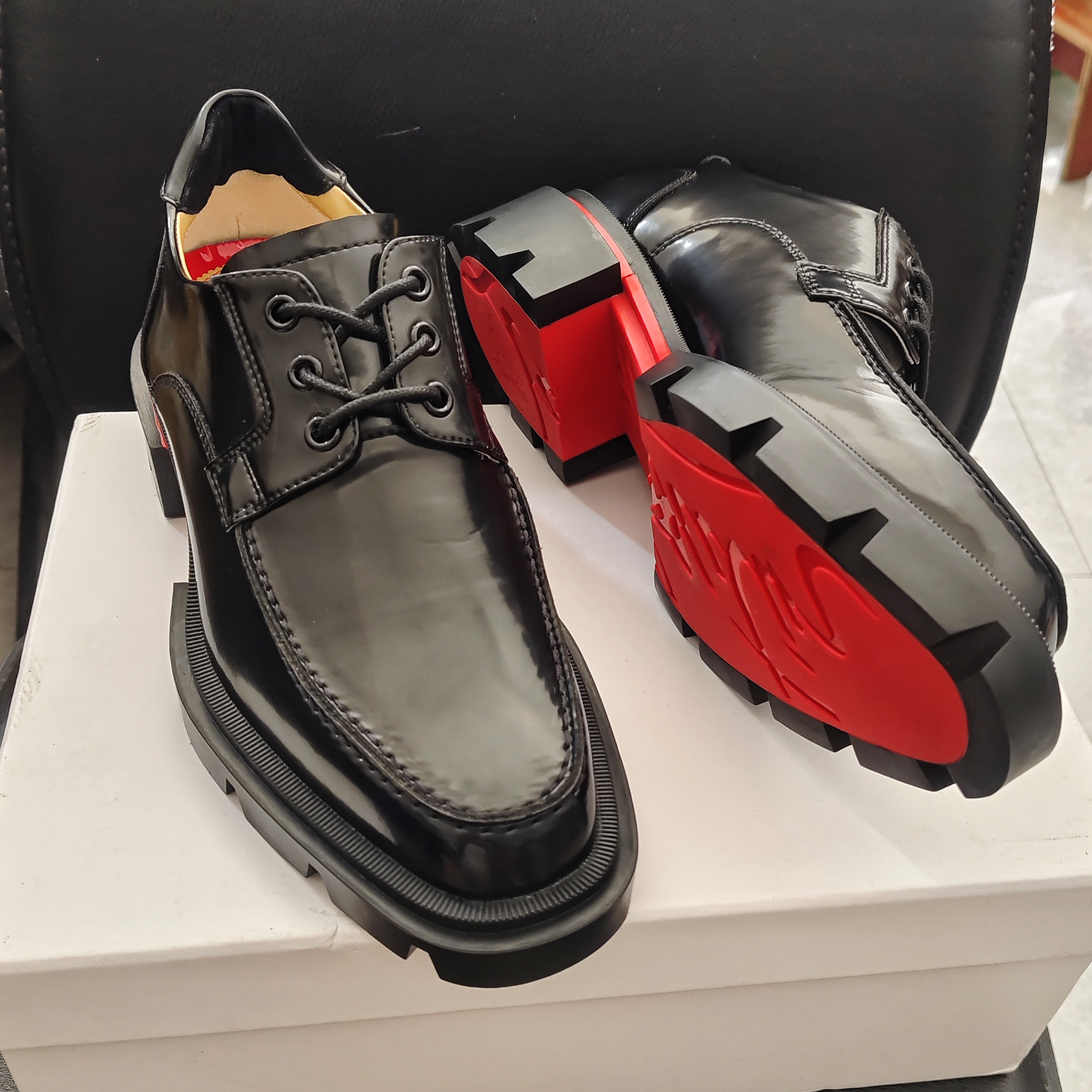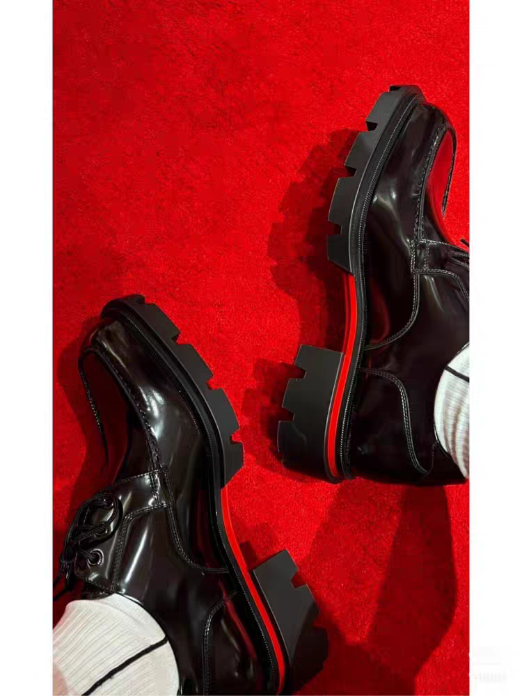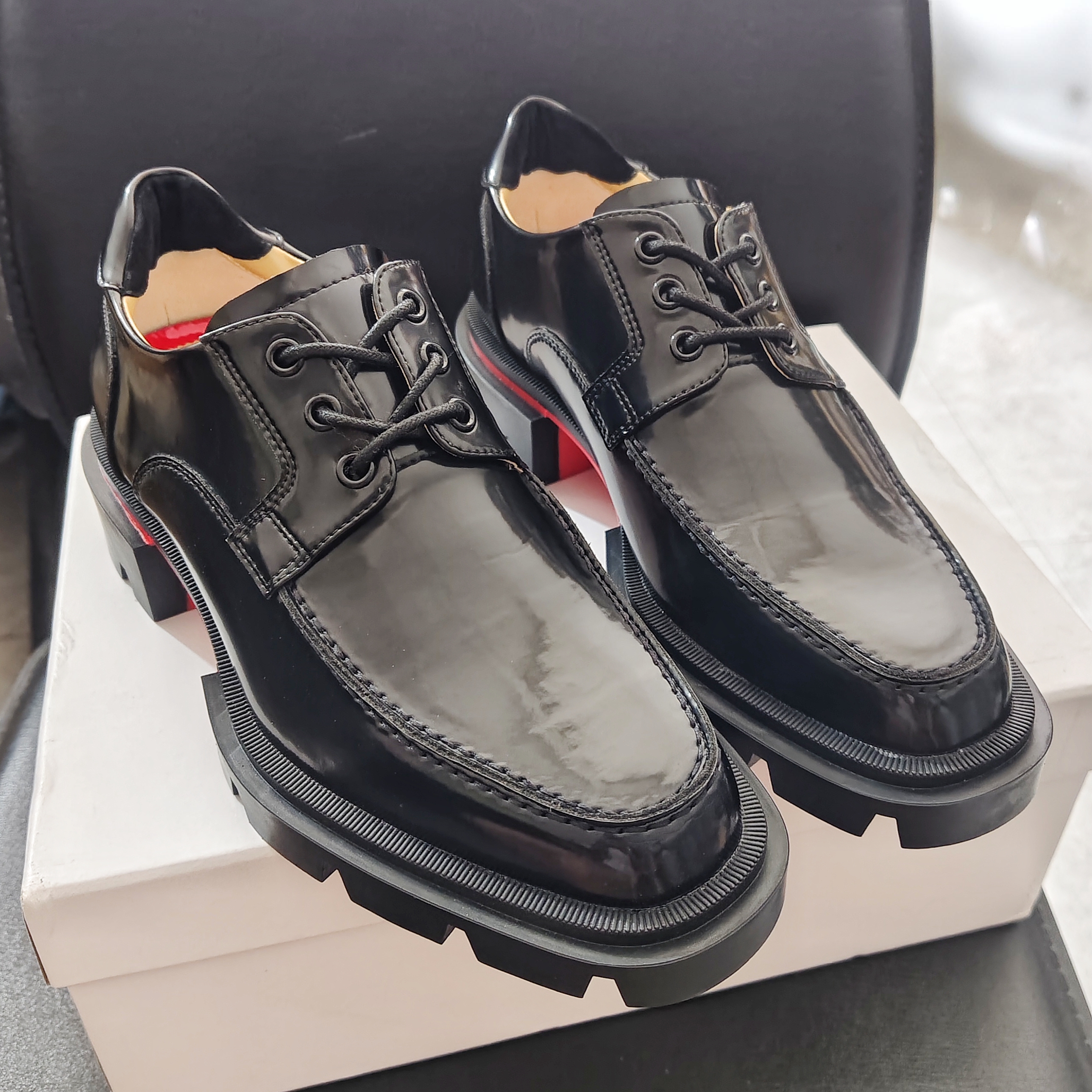 Top Version of Jackson Wang's Same Style Thick-Soled Height-Increasing Red-Soled Leather Shoes, Glossy Derby Shoes, Formal British Wedding Leather Shoes for Men