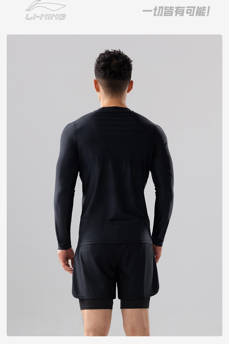 Li Ning Men's Swimsuit and Swim Trunks Set, Long-Sleeved Swimsuit, Professional Sun Protection, Quick-Drying, Hot Spring Men's Beach Surfing Suit
