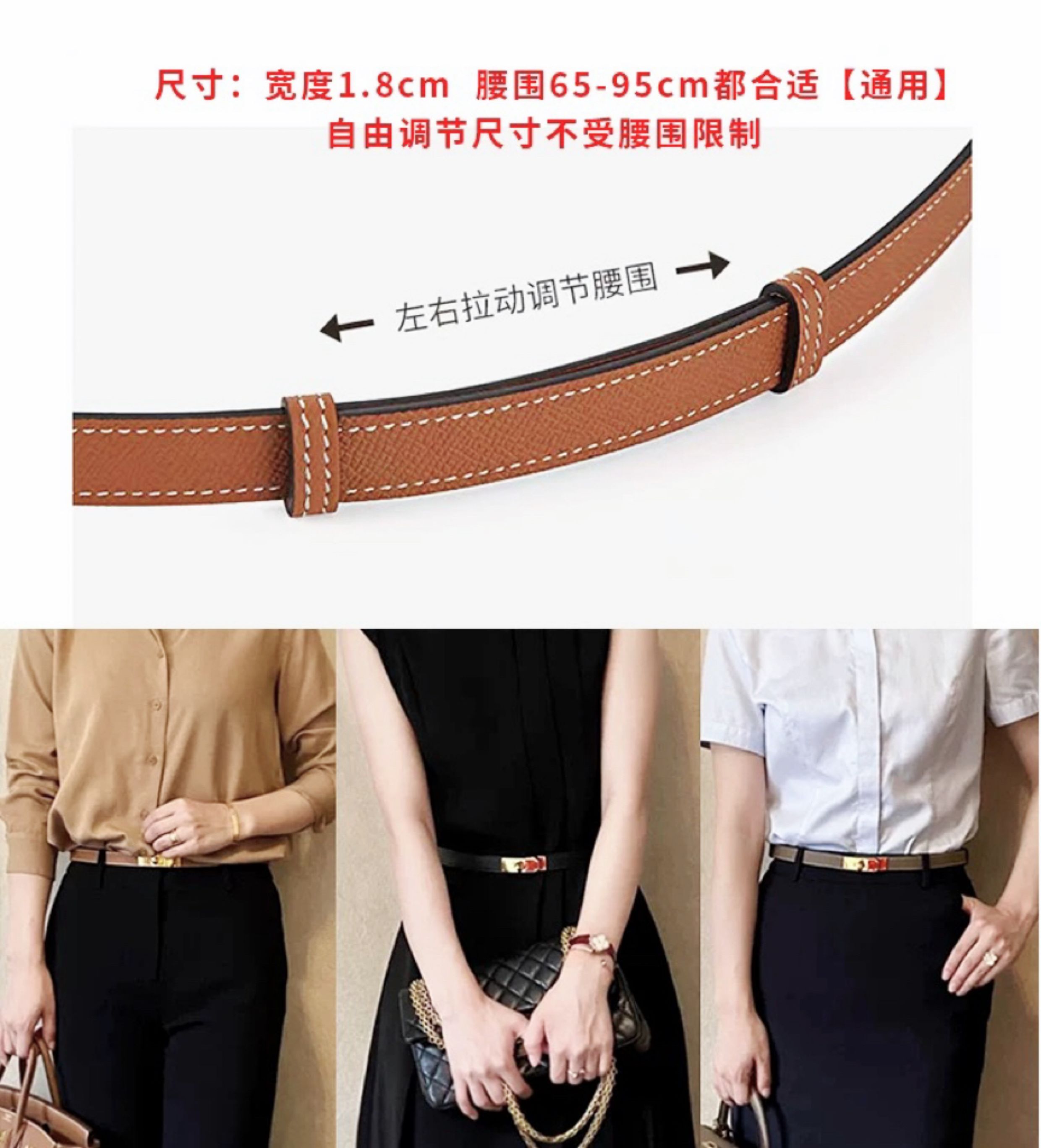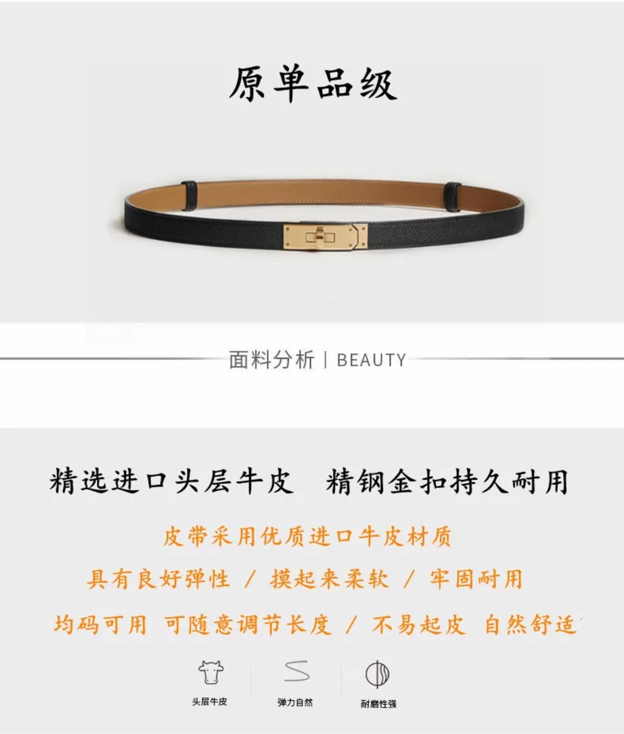 H Kelly Kelly Belt for Women, Genuine Leather Belt, Versatile Decorative Belt, Waist-Cinching, Slimming, Thin Style, Light Luxury, High-End Feel