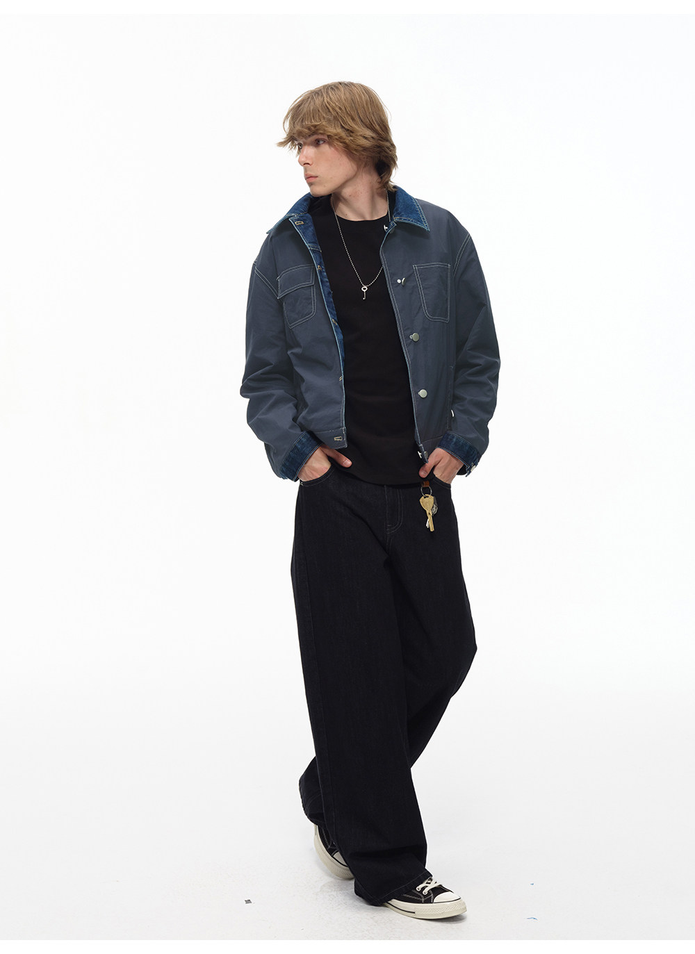 Countrymoment【Unisex】Reversible Raw Denim Jacket American Retro Workwear Jacket