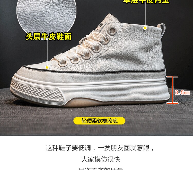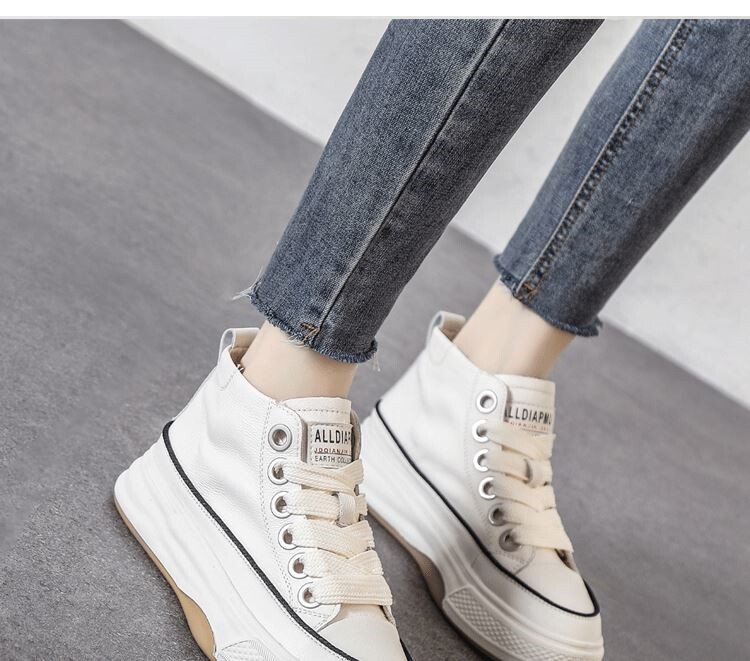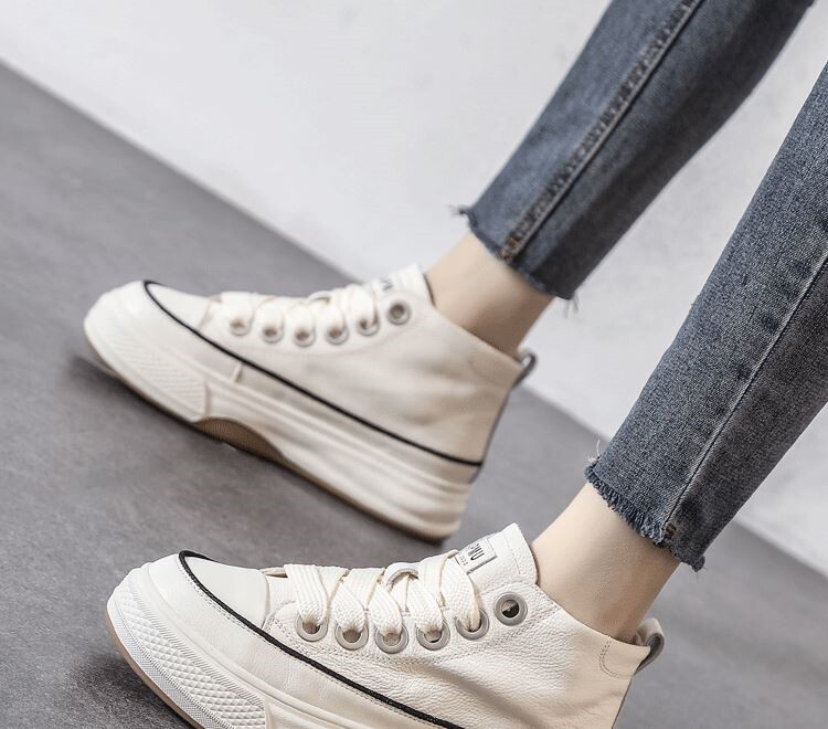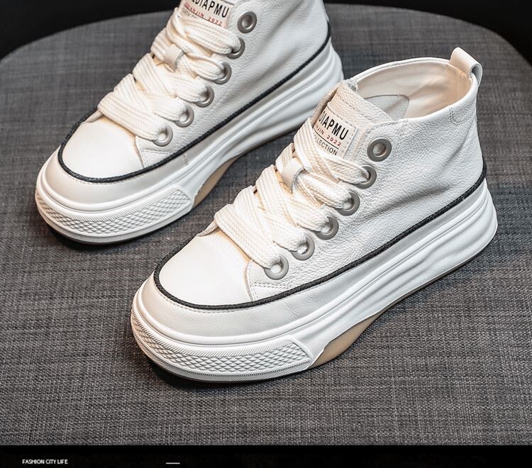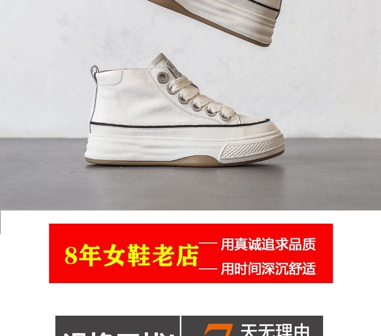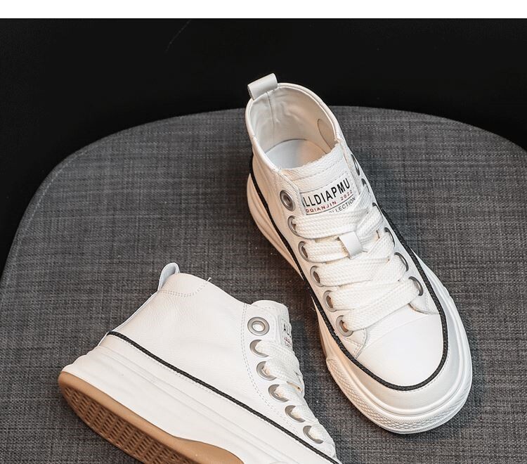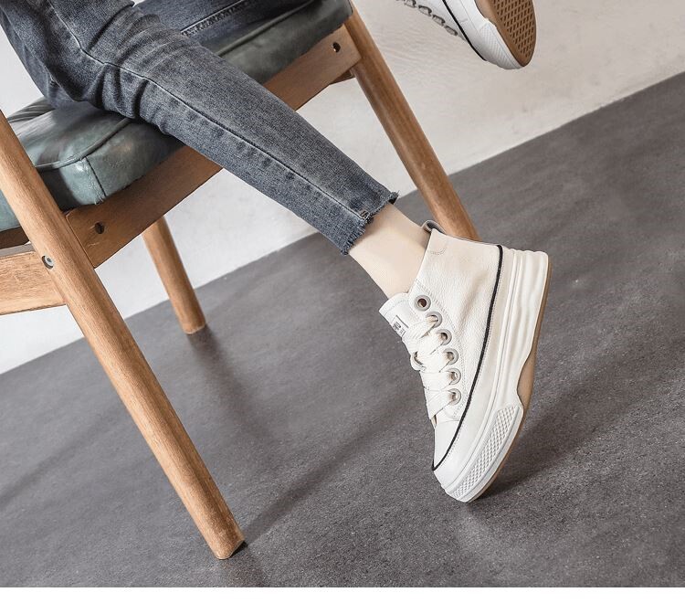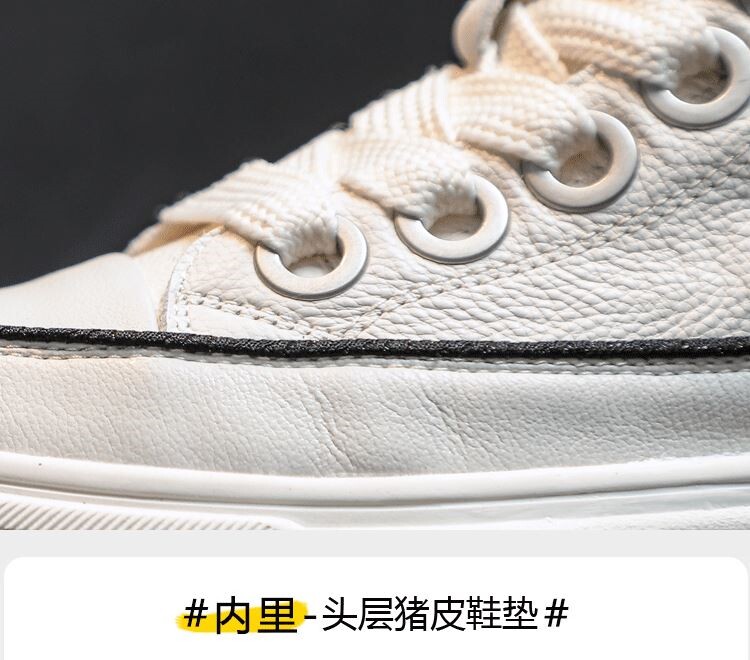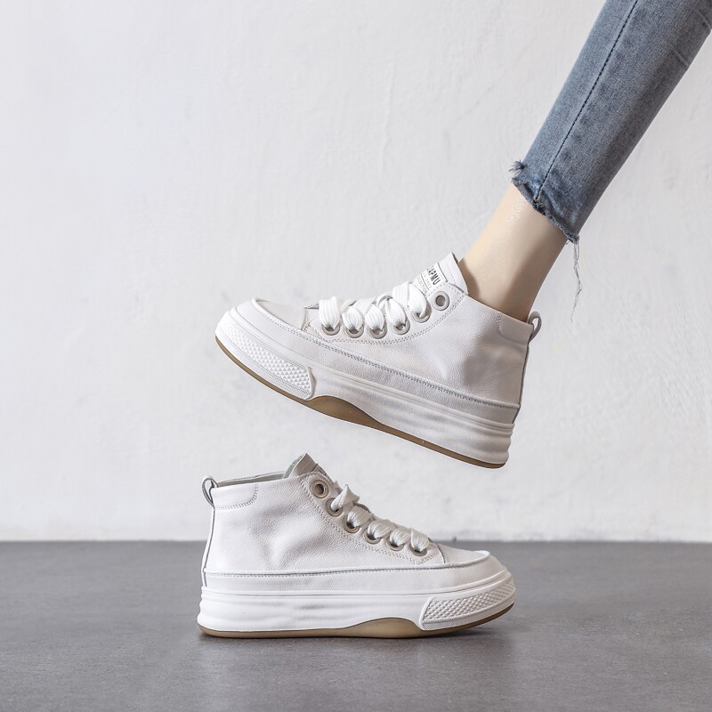 French Niche Brand [Lw-Changer] First-Layer Cowhide White Sneakers Genuine Leather High-Top Casual Shoes for Women