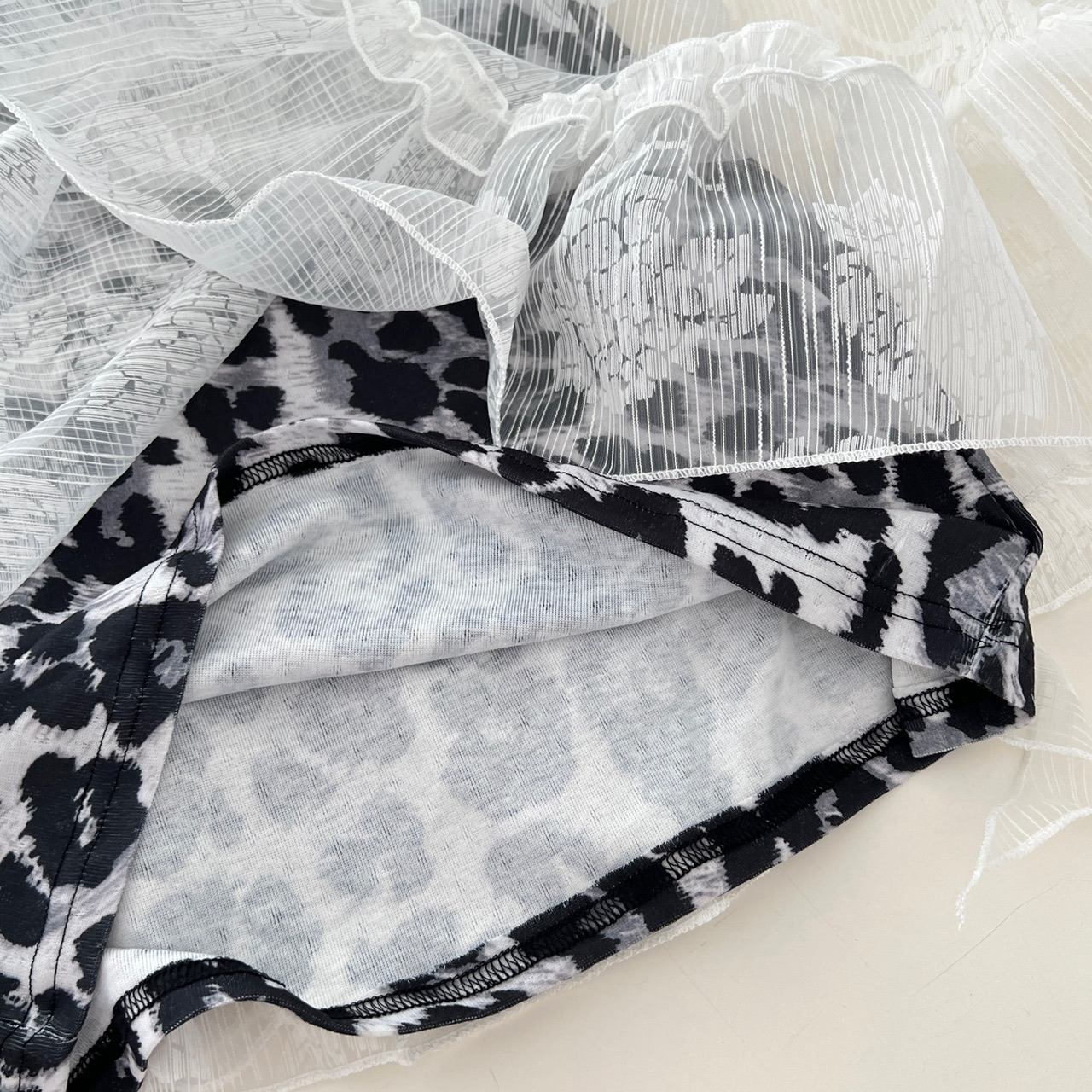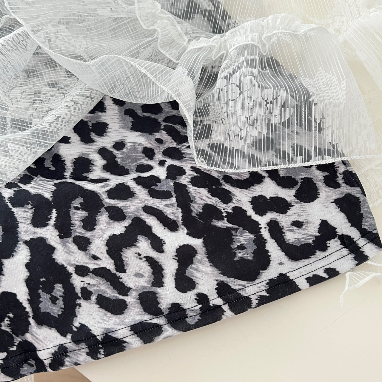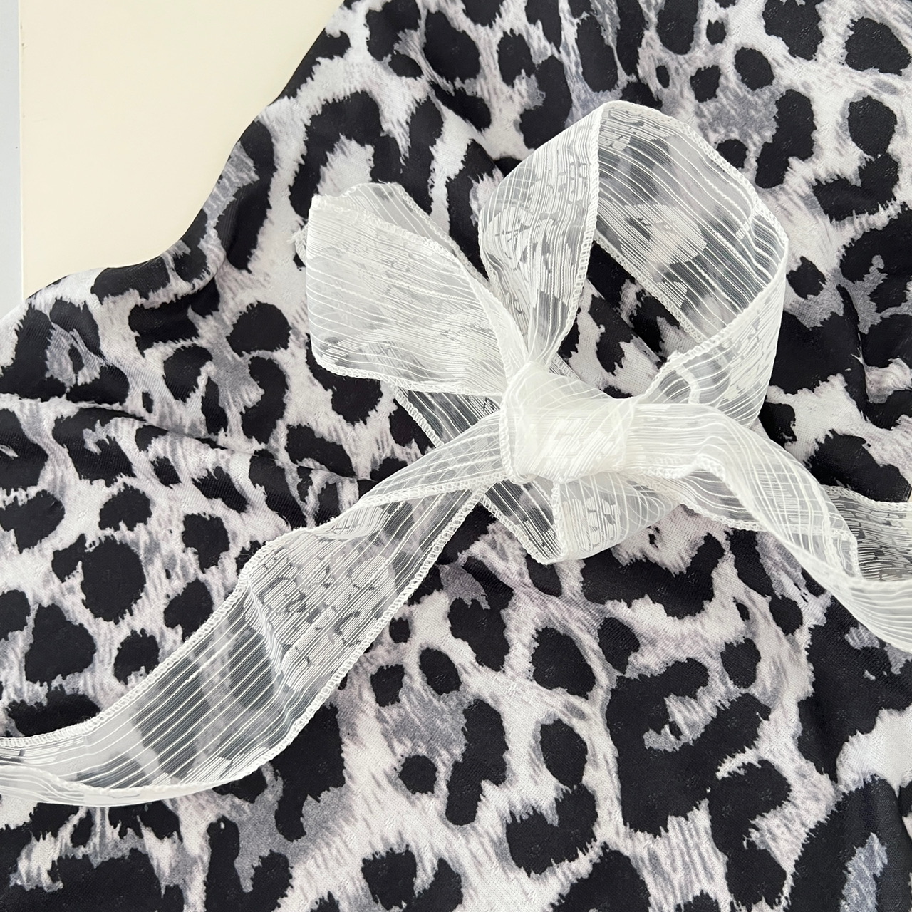 Peach LAOSHU Private Collection Mailbox Pure Desire Hot Girl Design Lace Ribbon Cover-Up Leopard Print Dress Two-Piece Set