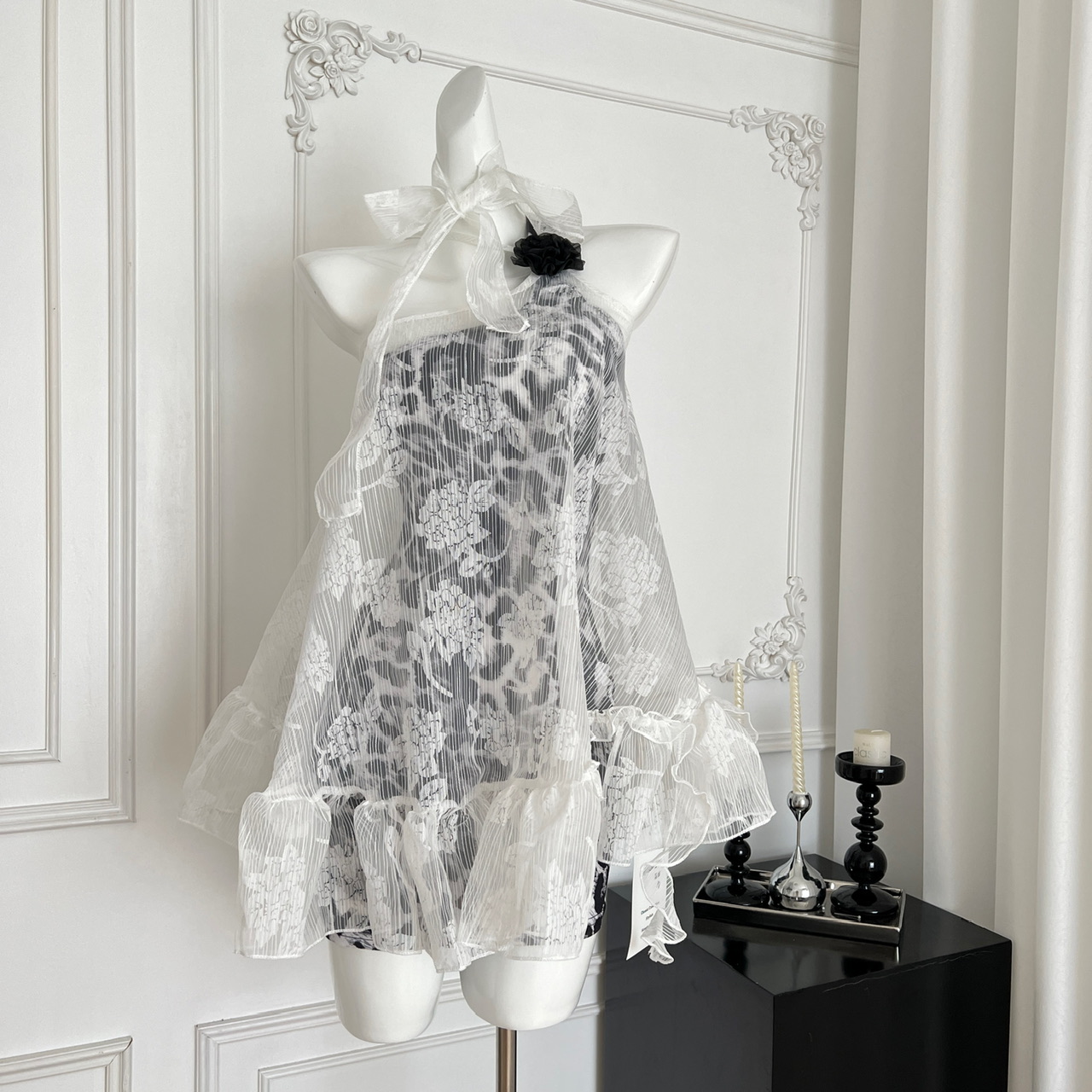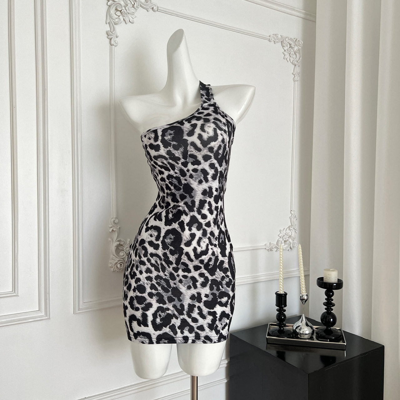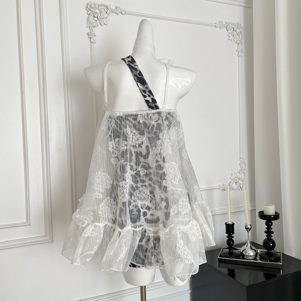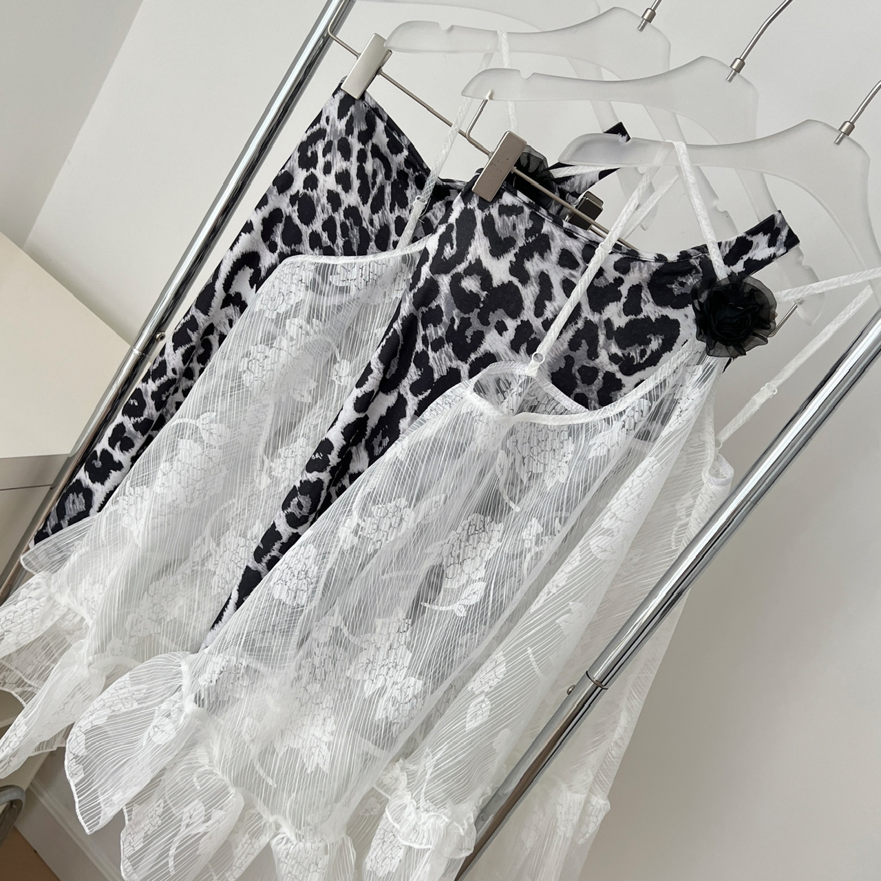 Peach LAOSHU Private Collection Mailbox Pure Desire Hot Girl Design Lace Ribbon Cover-Up Leopard Print Dress Two-Piece Set